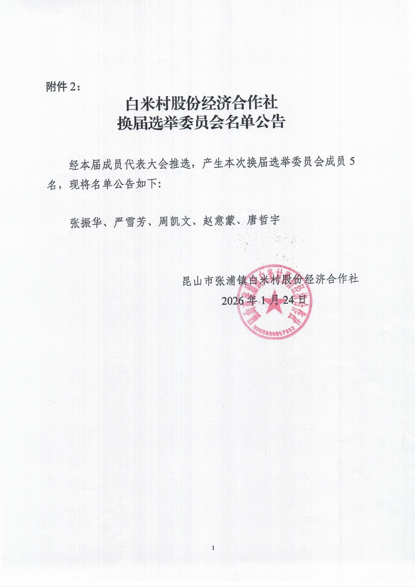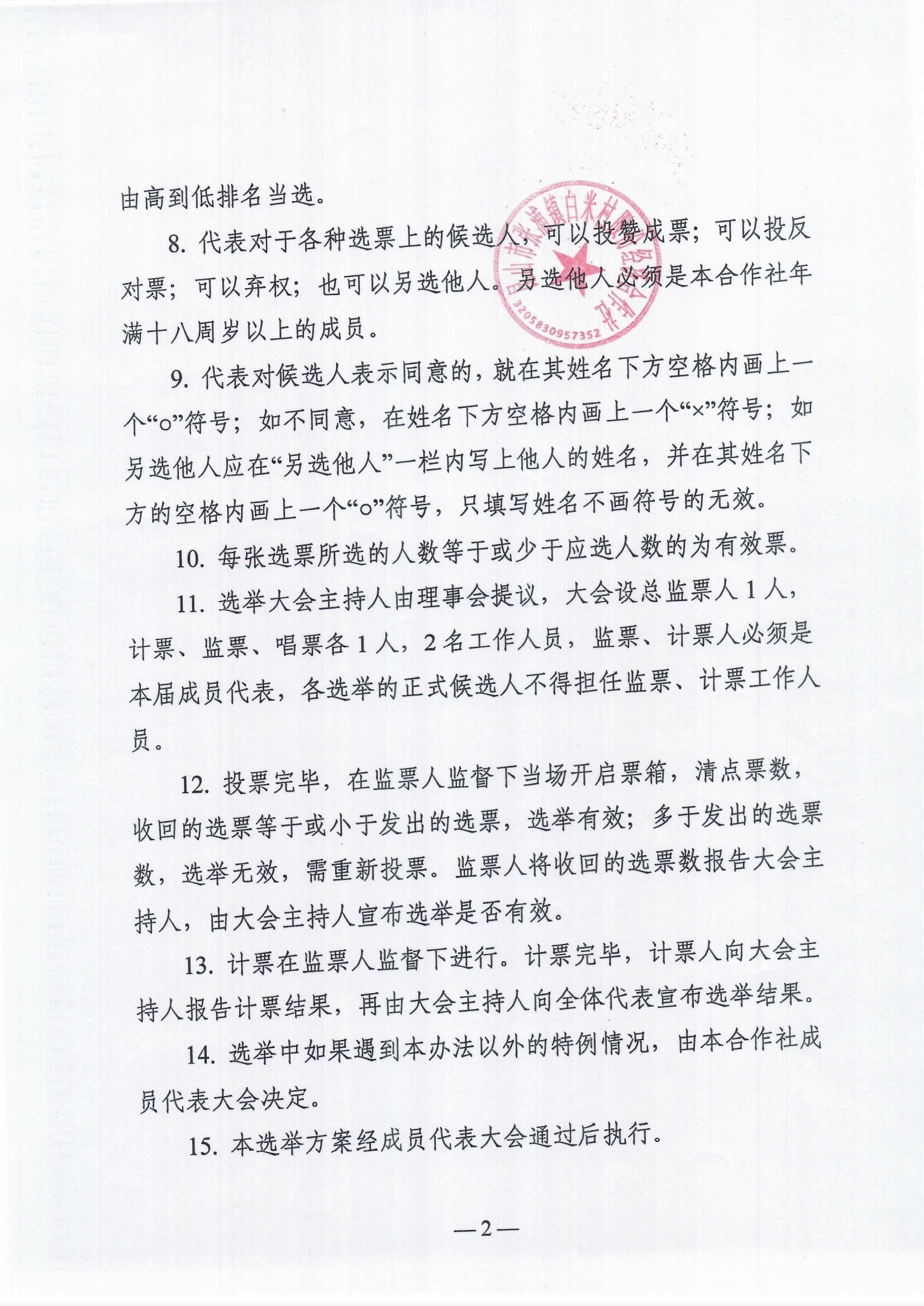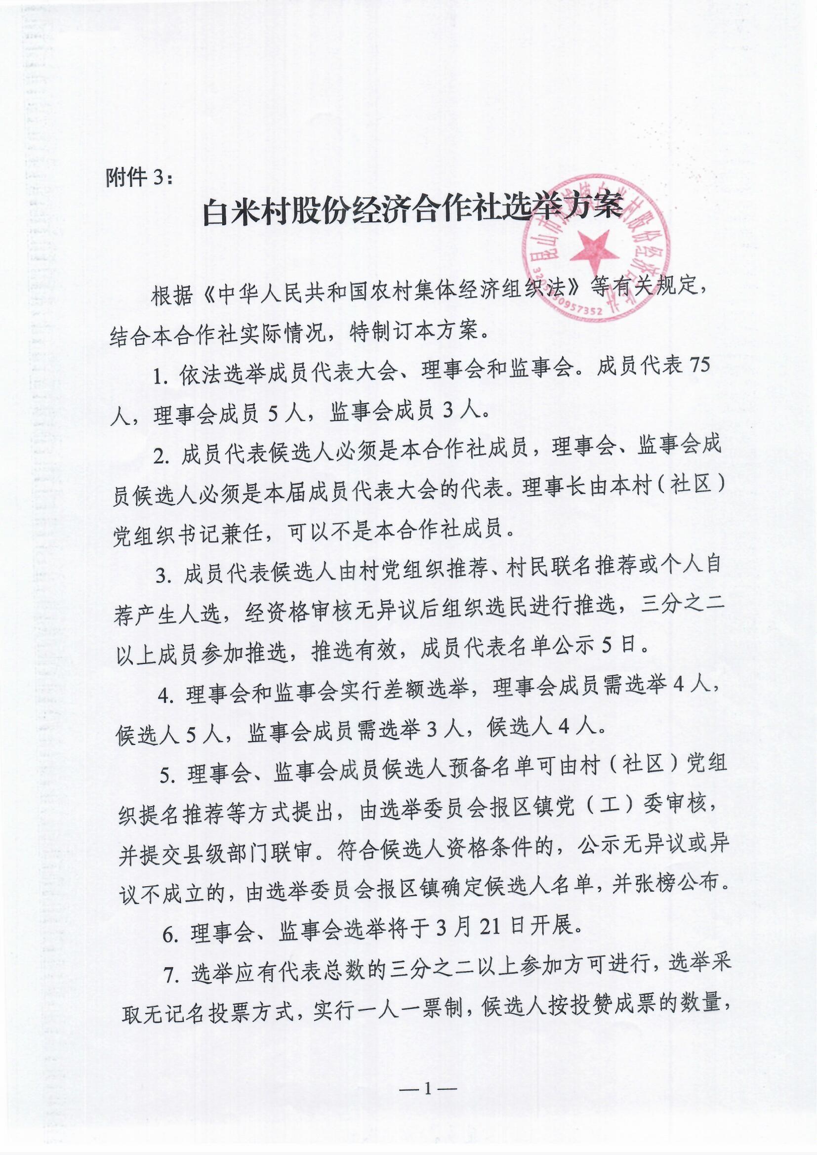 白米村股份合作社换届选举委员会名单和选举方案公示