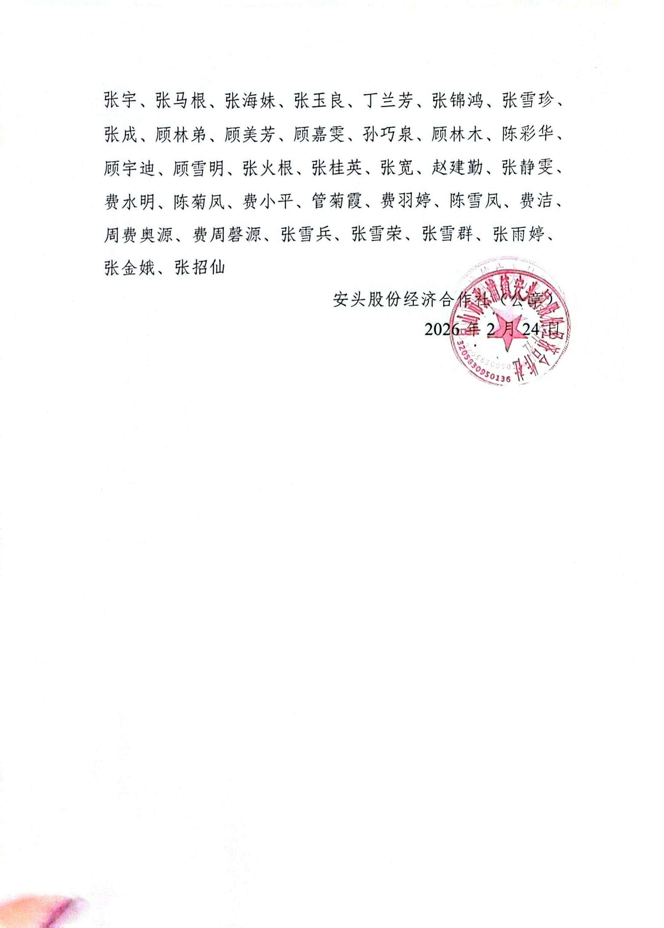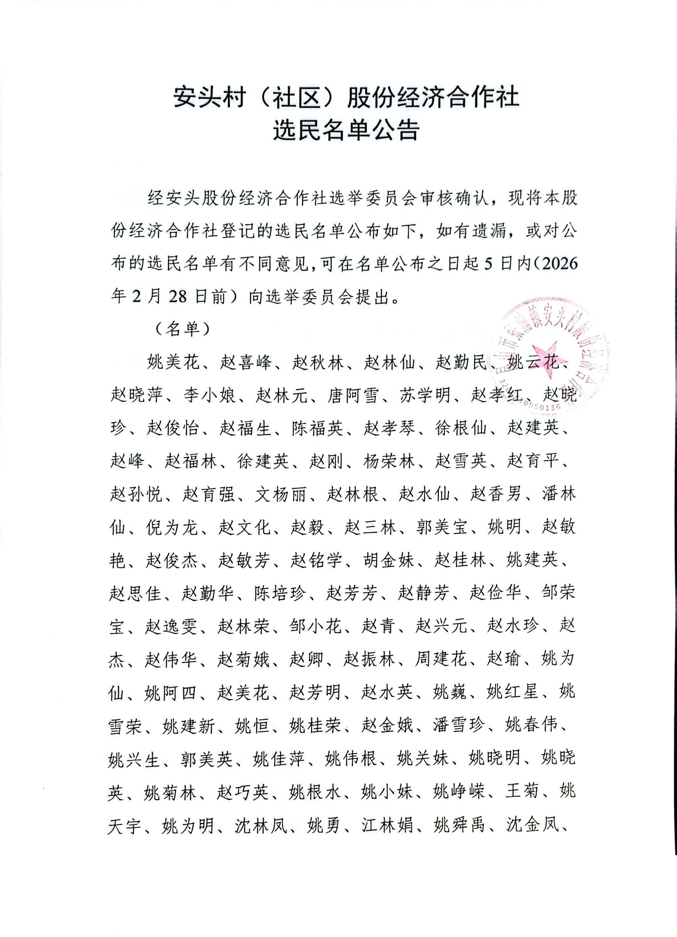 安头村股份经济组织选民名单公示