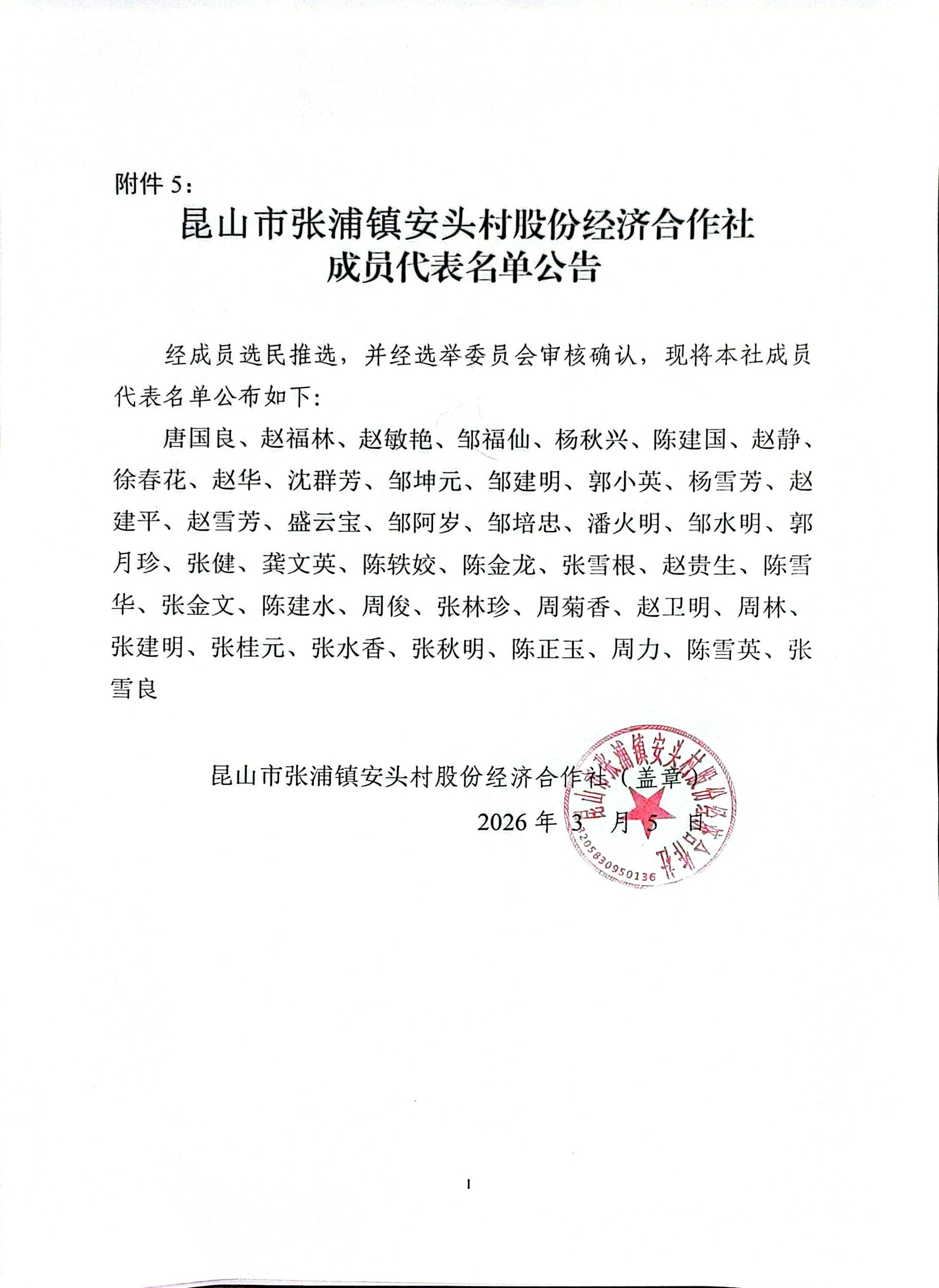 安头村股份经济合作社成员代表名单公示