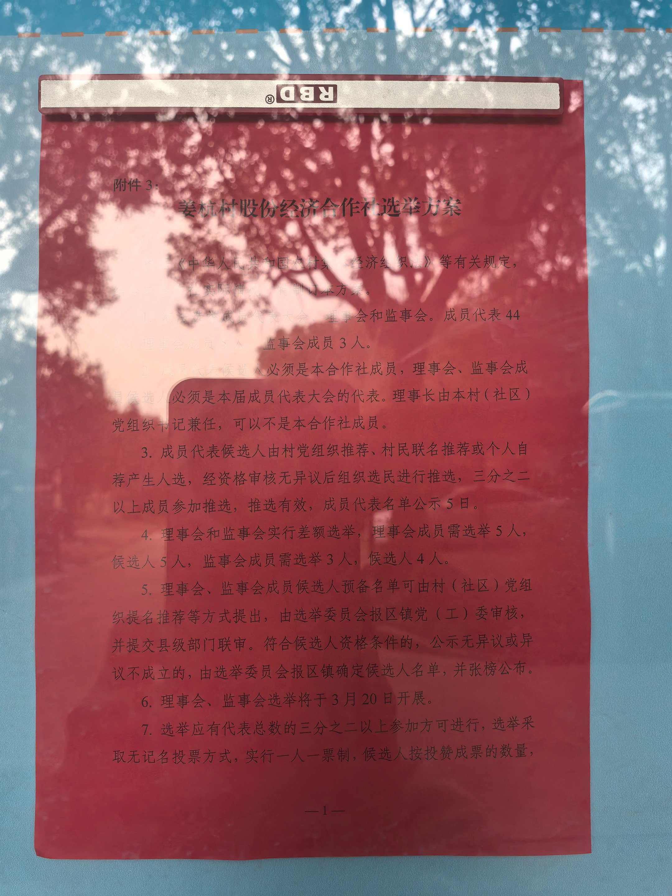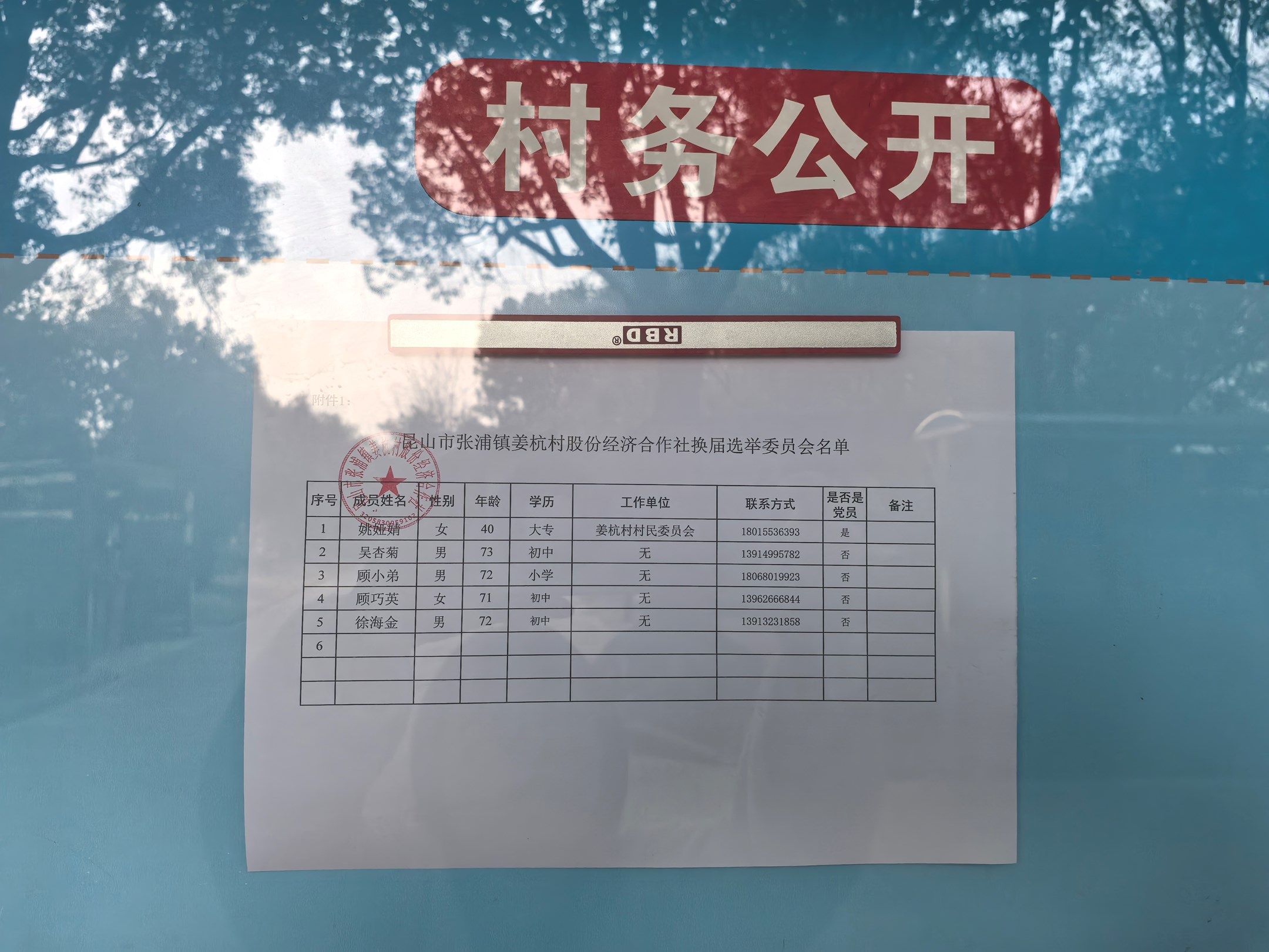 姜杭村股份经济合作社选举方案、换届选举委员会成员公示