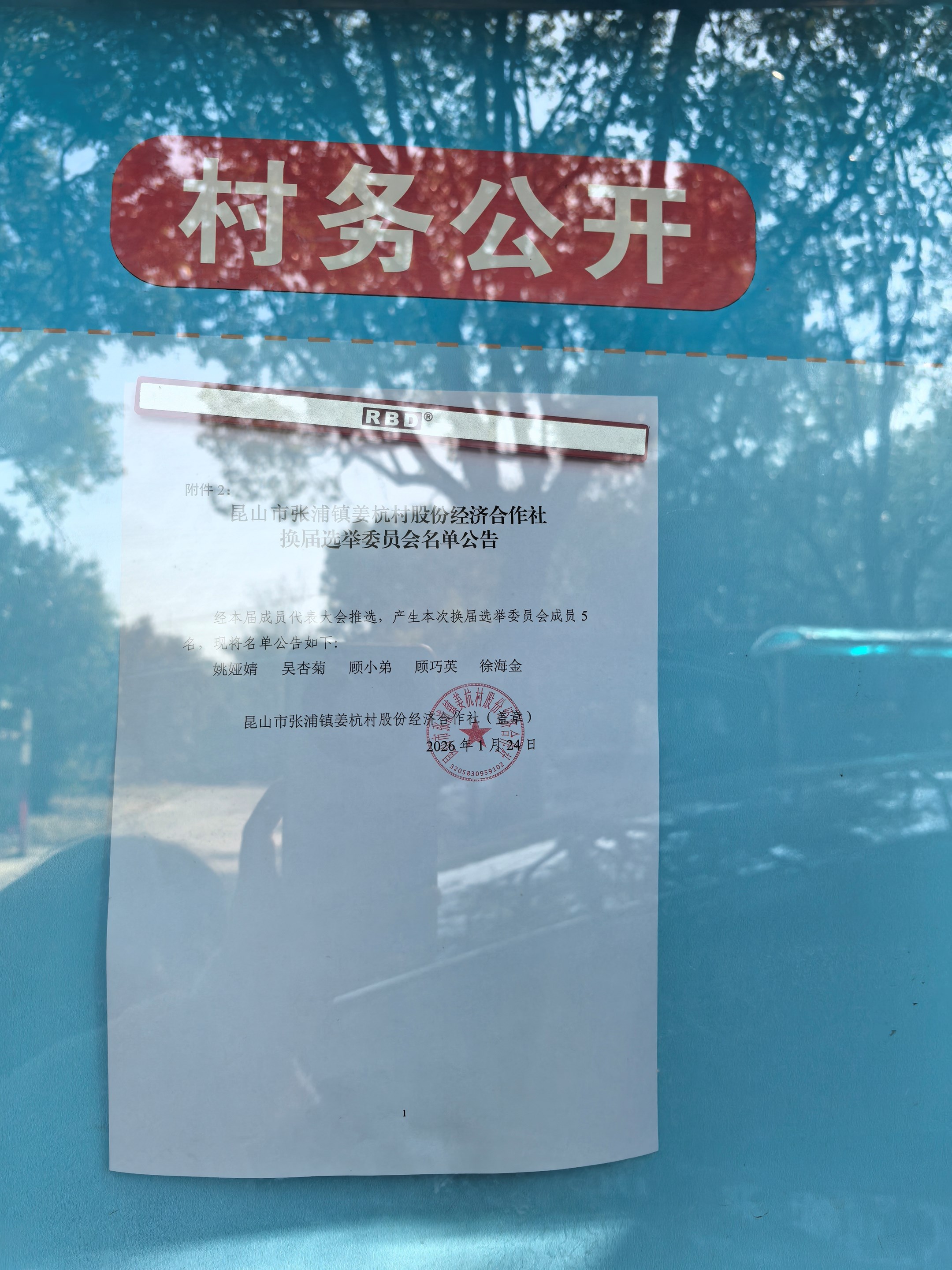 姜杭村股份经济合作社选举委员会名单
