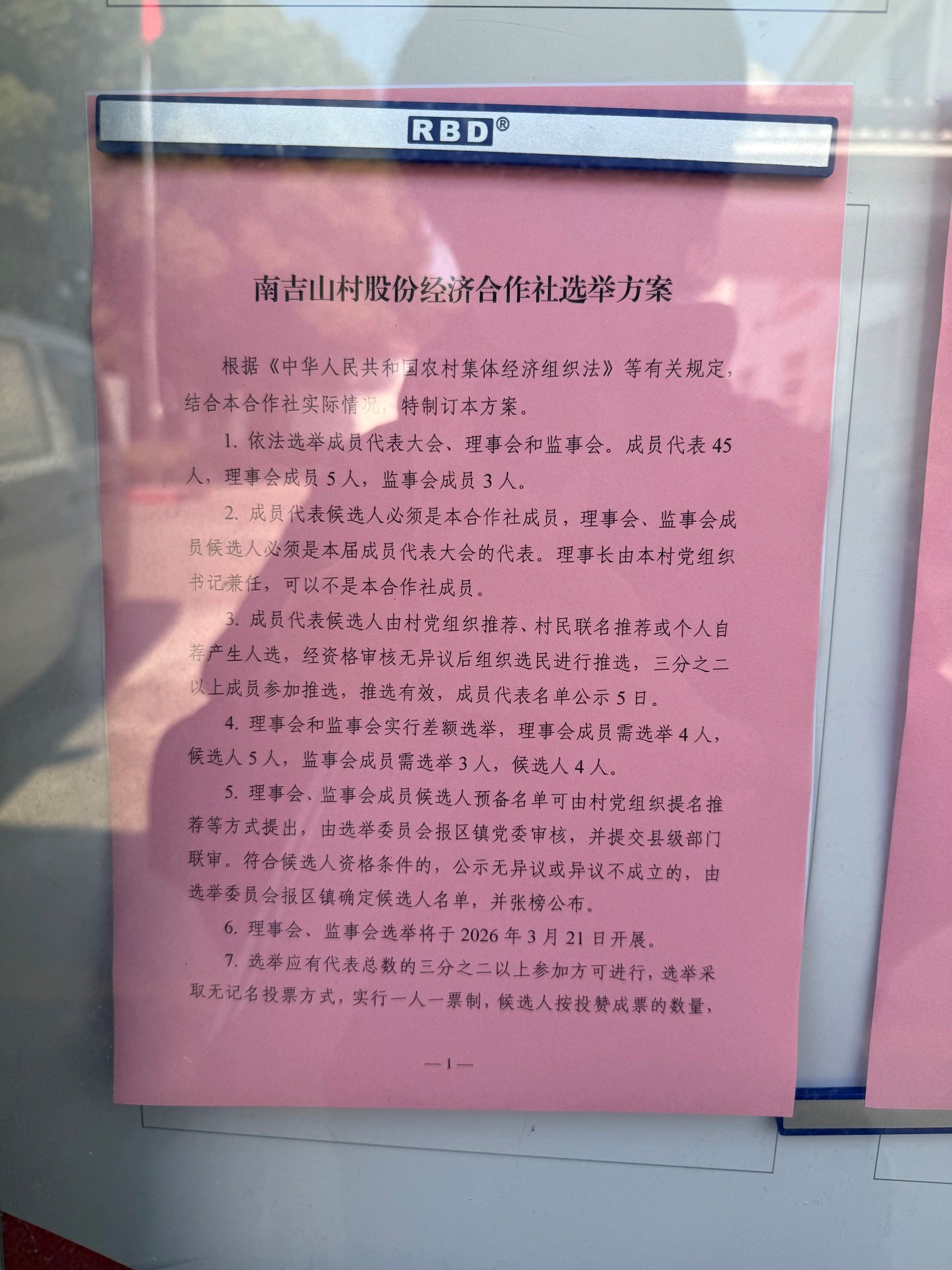 南吉山村股份经济合作社选举方案公示