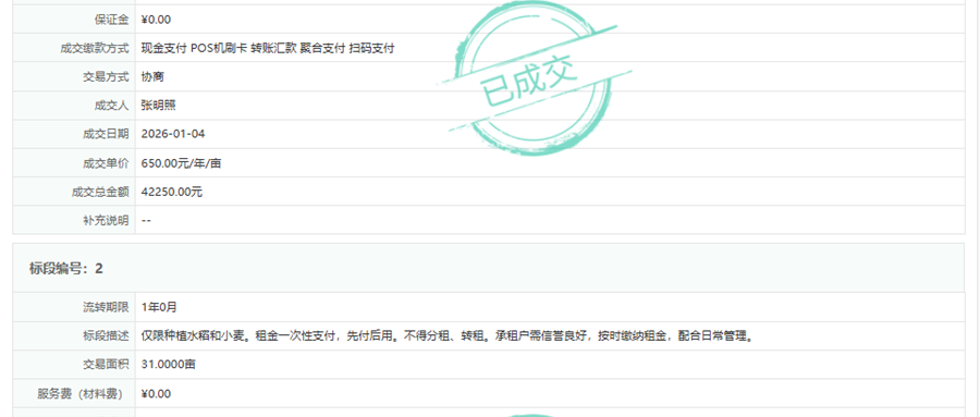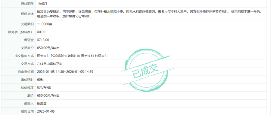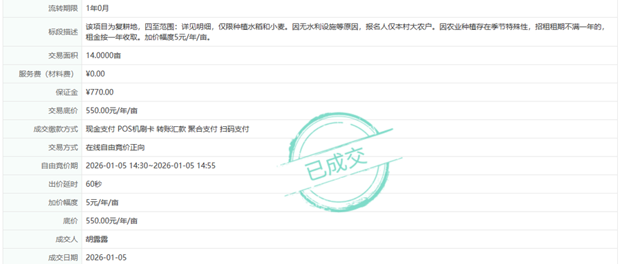 2026年复耕农用地成交信息