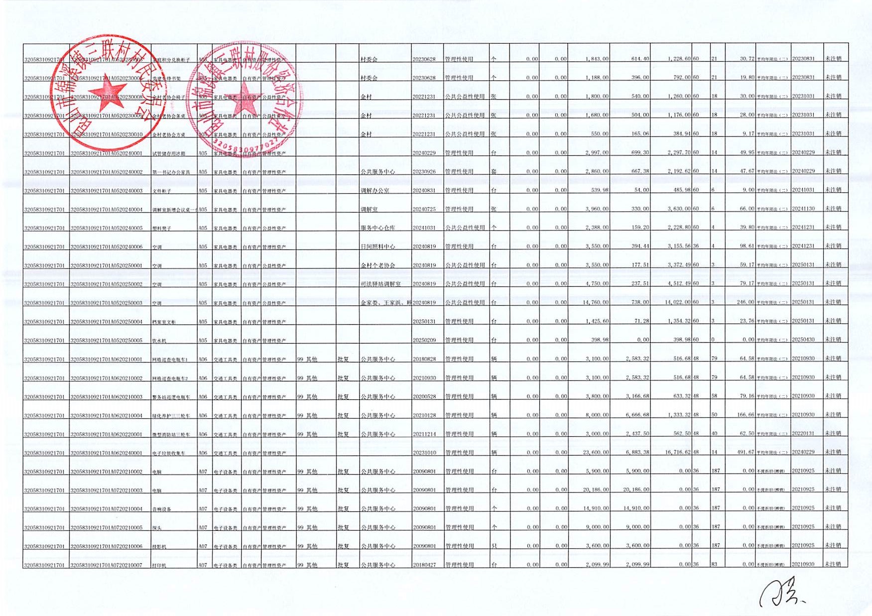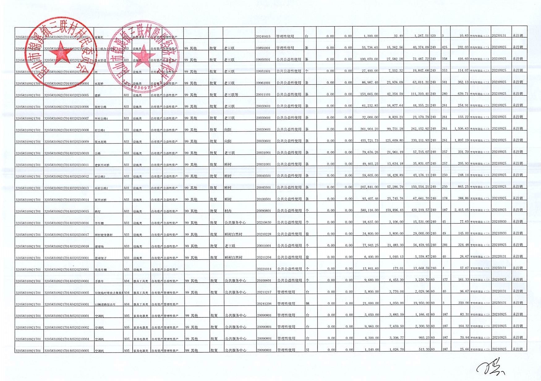 村盖章事项名录