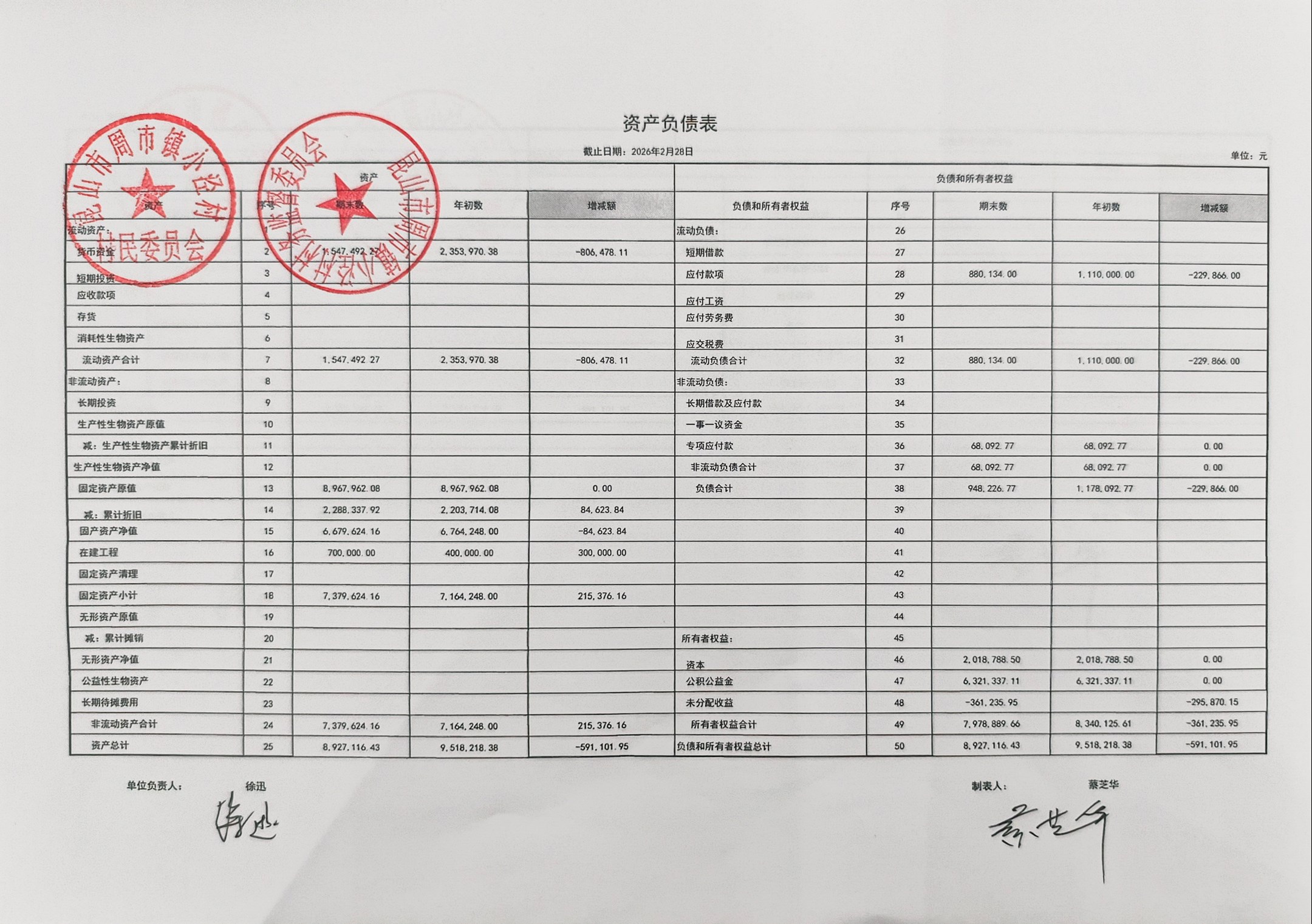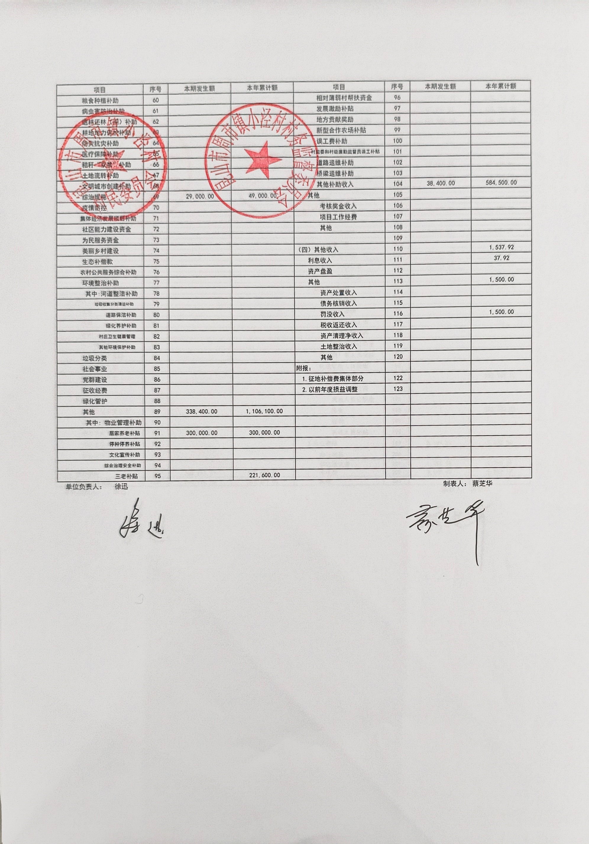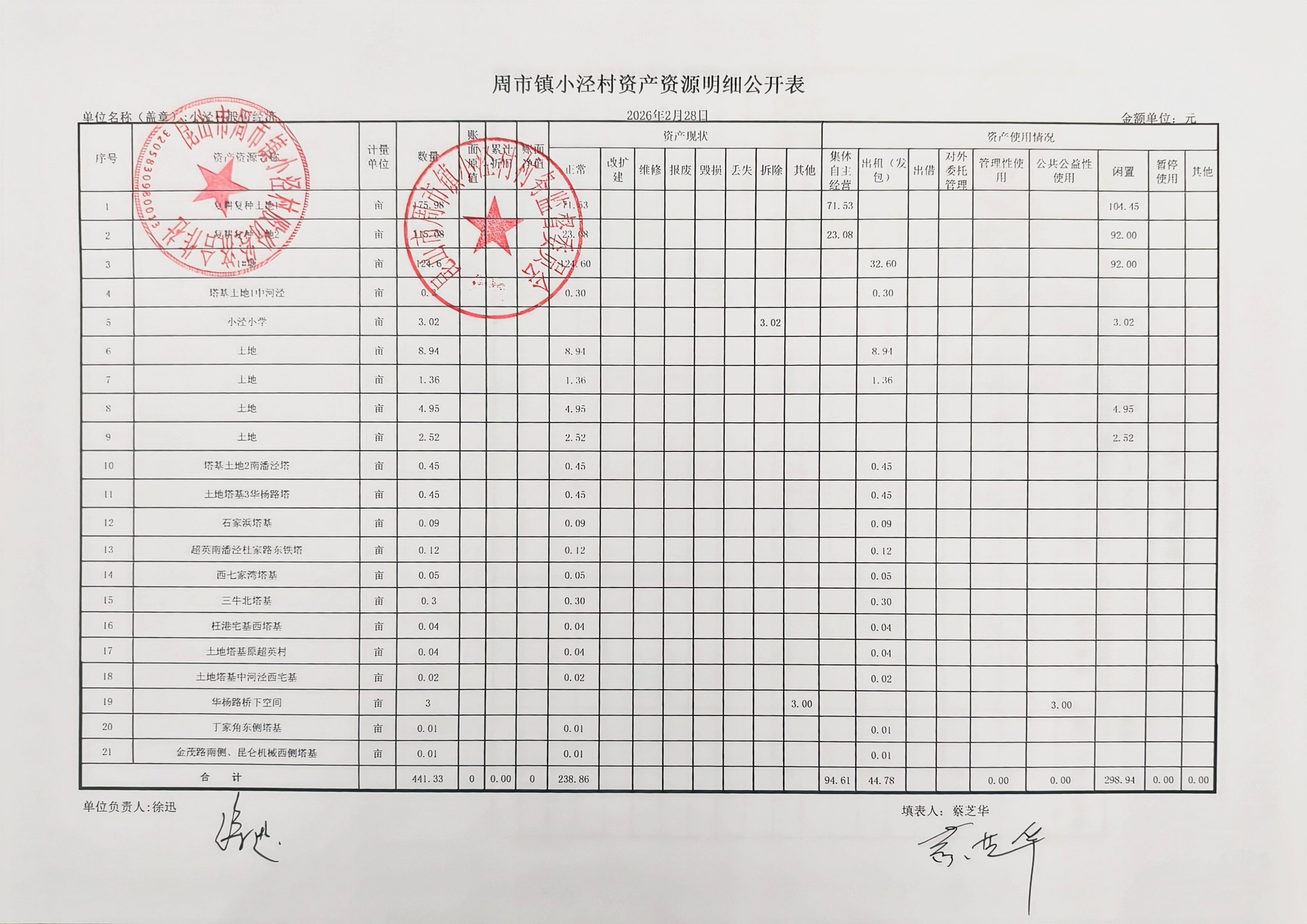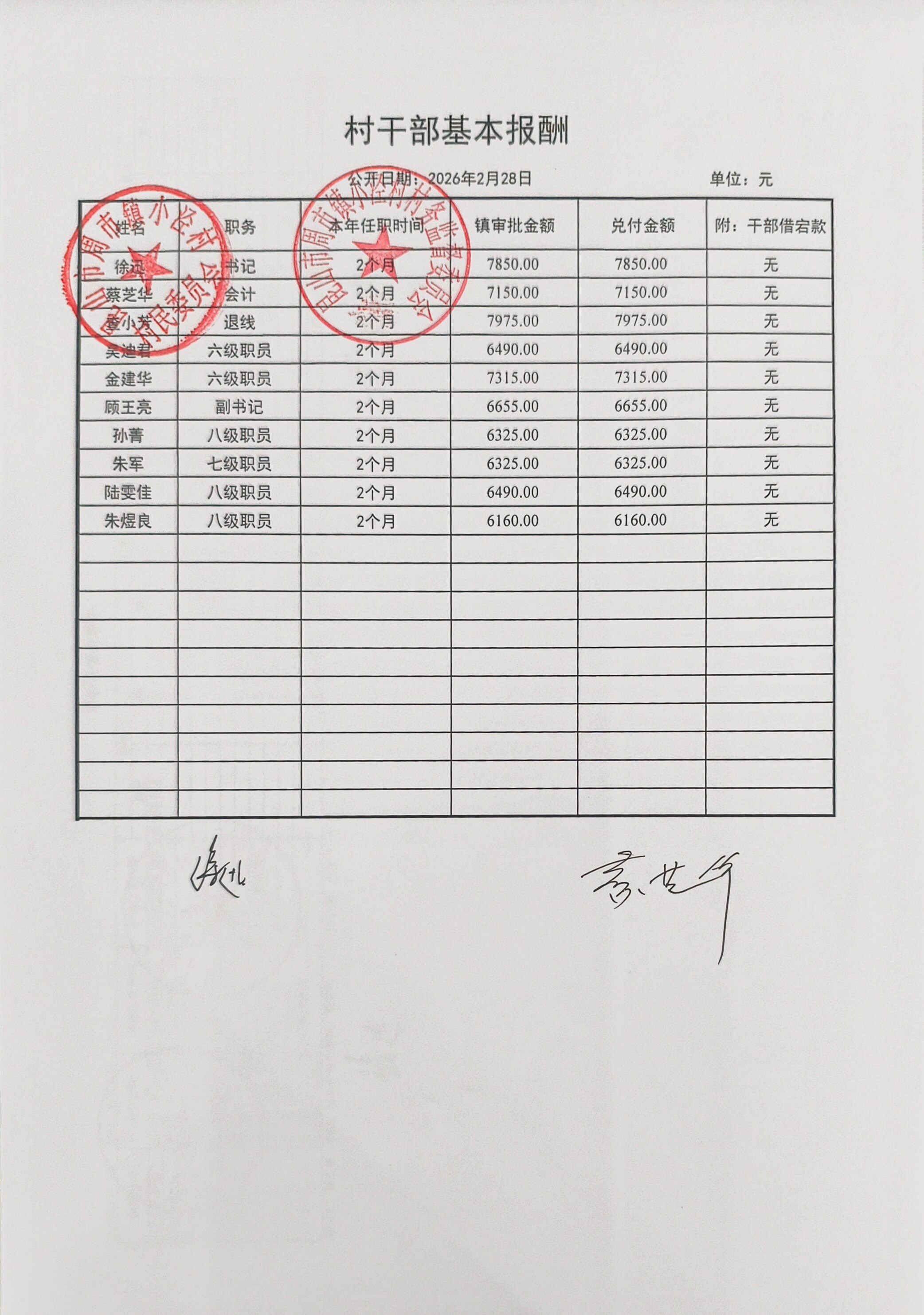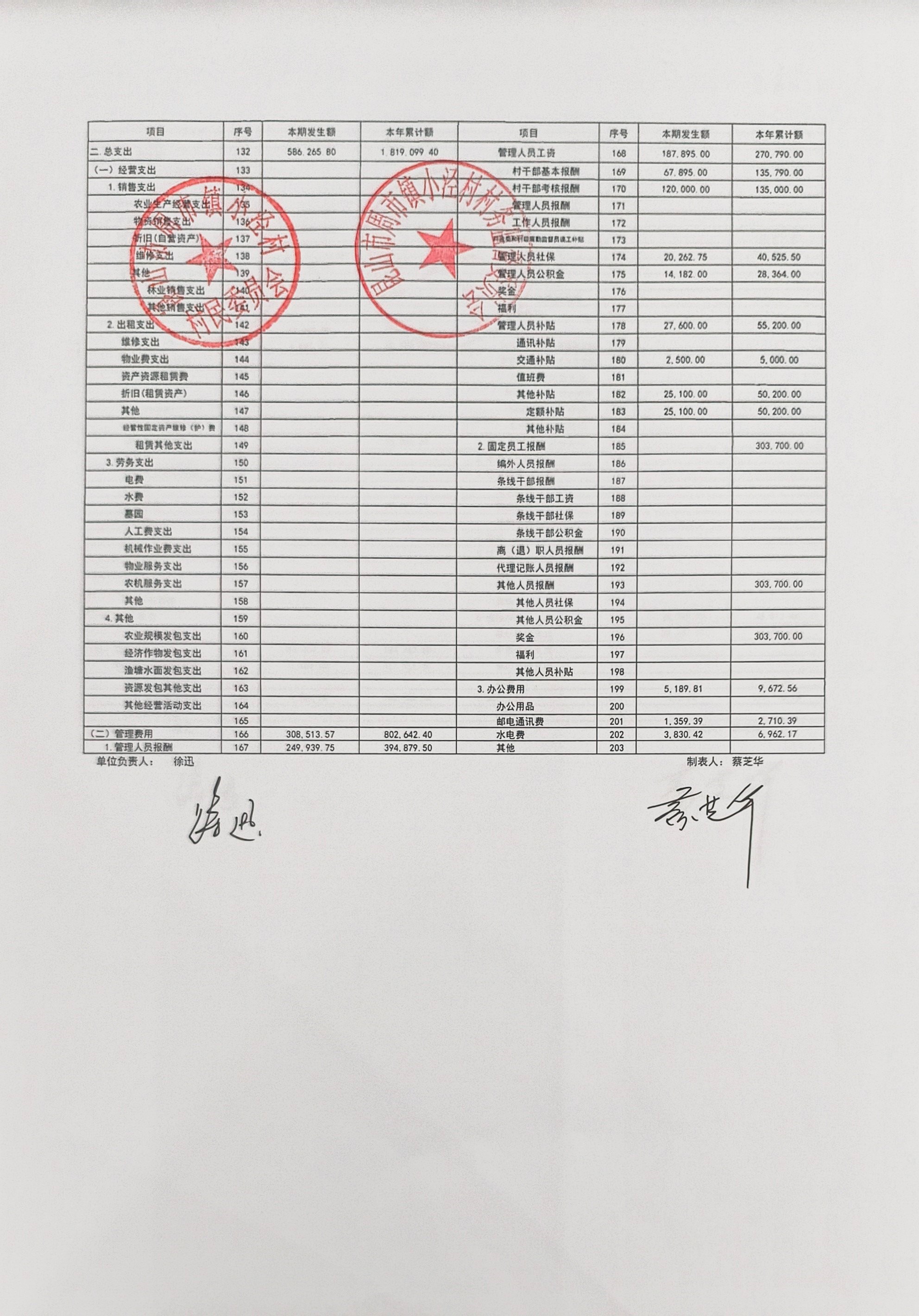 小泾村2026年2月财务公开
