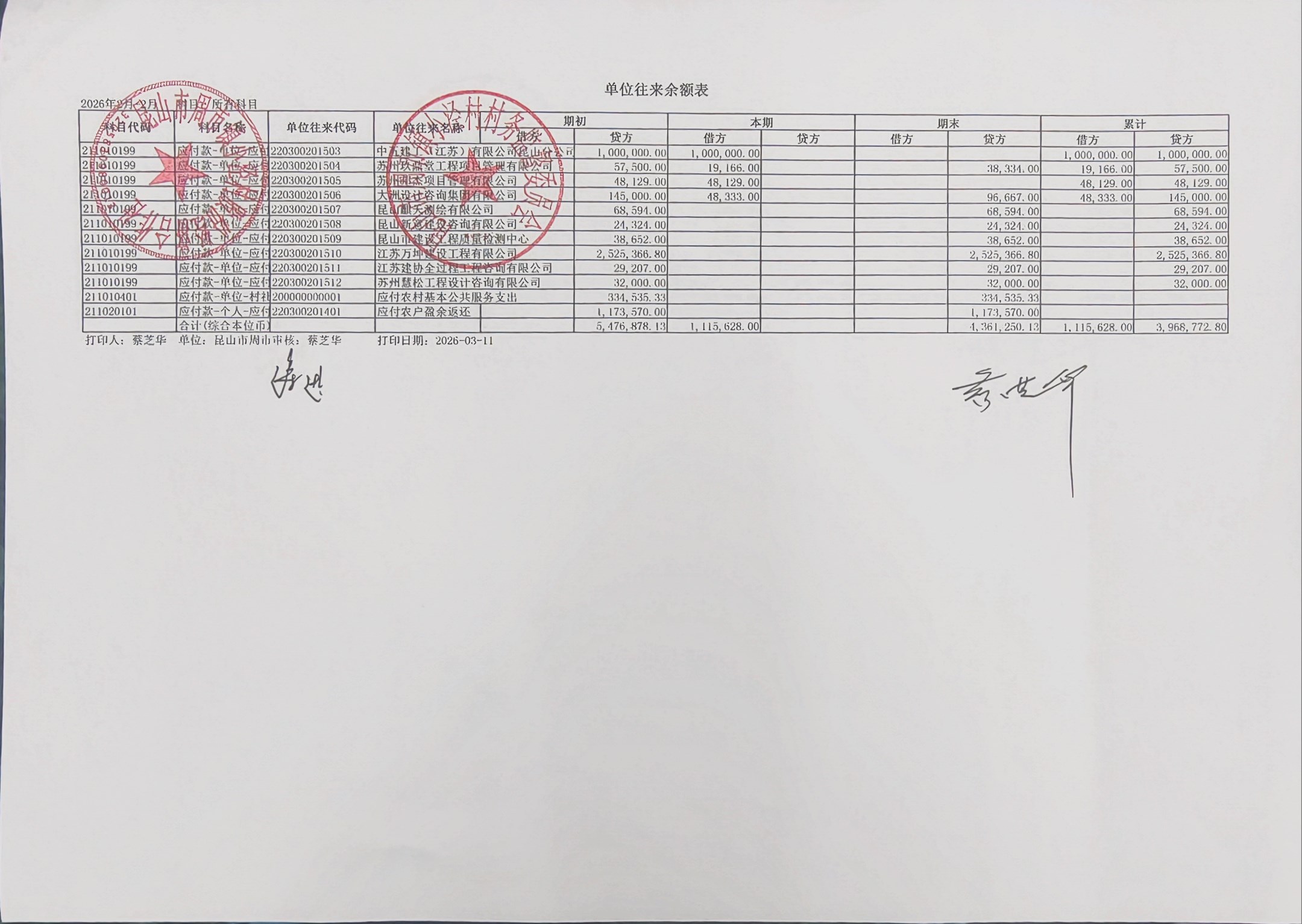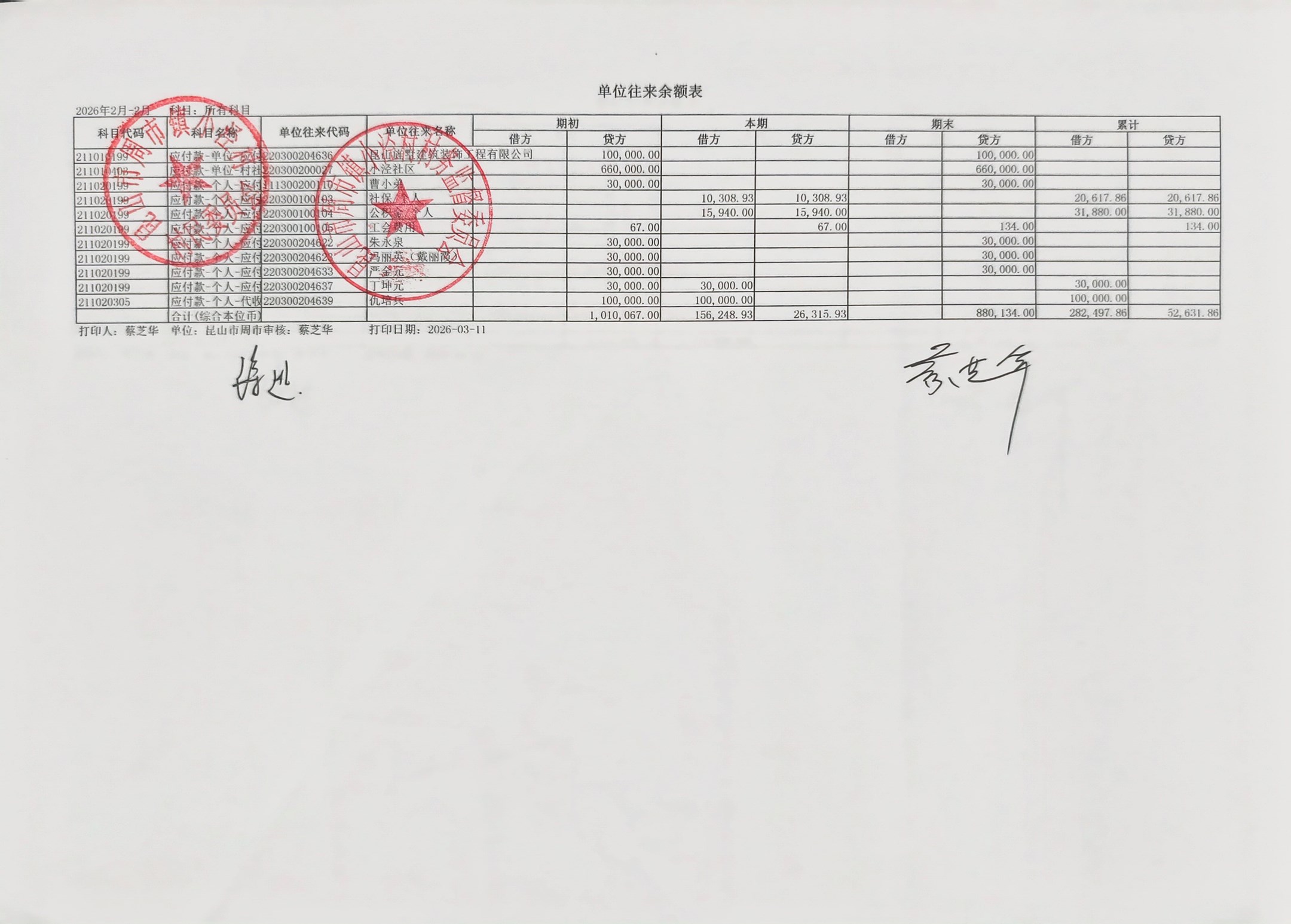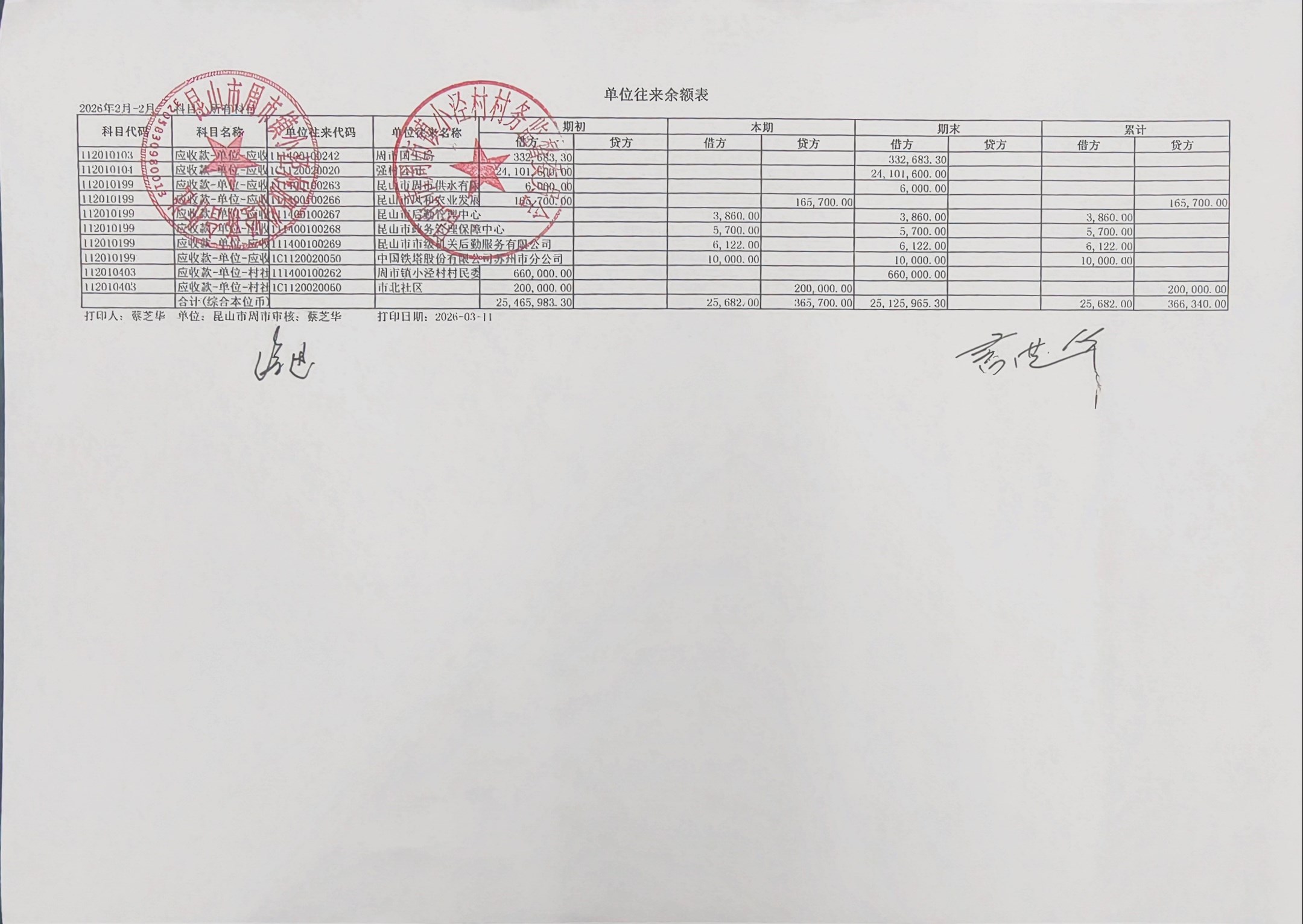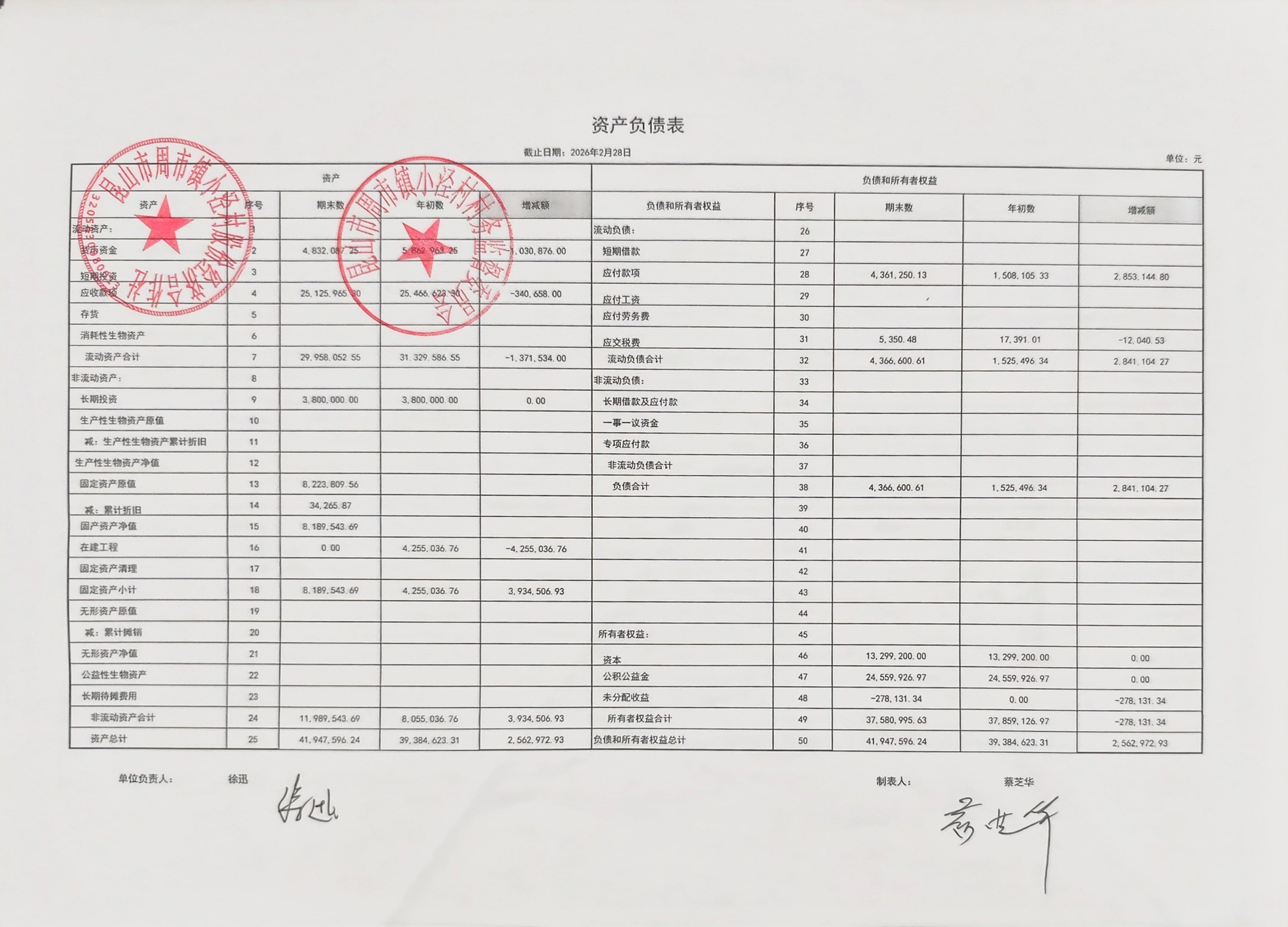 小泾村2026年2月财务公开