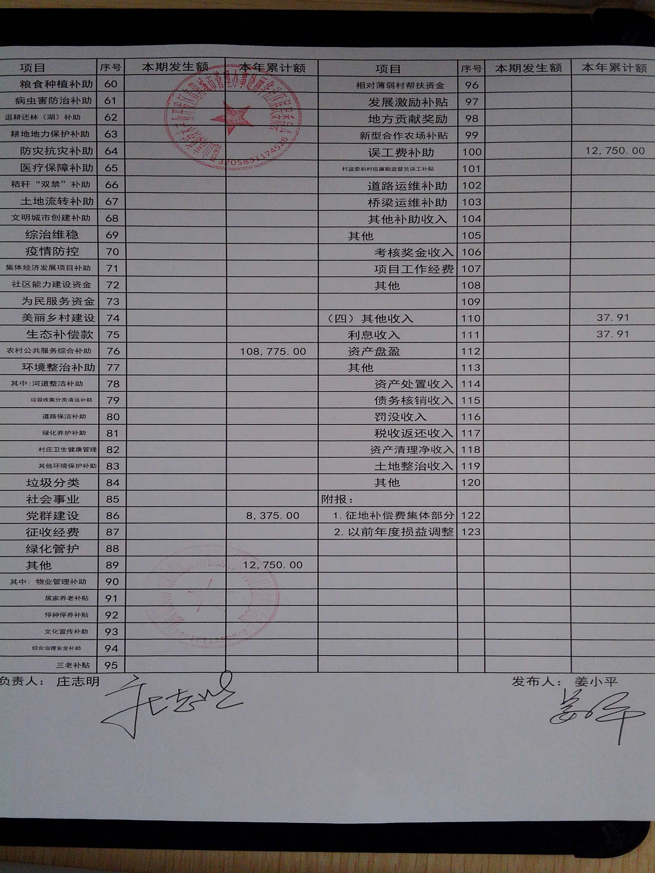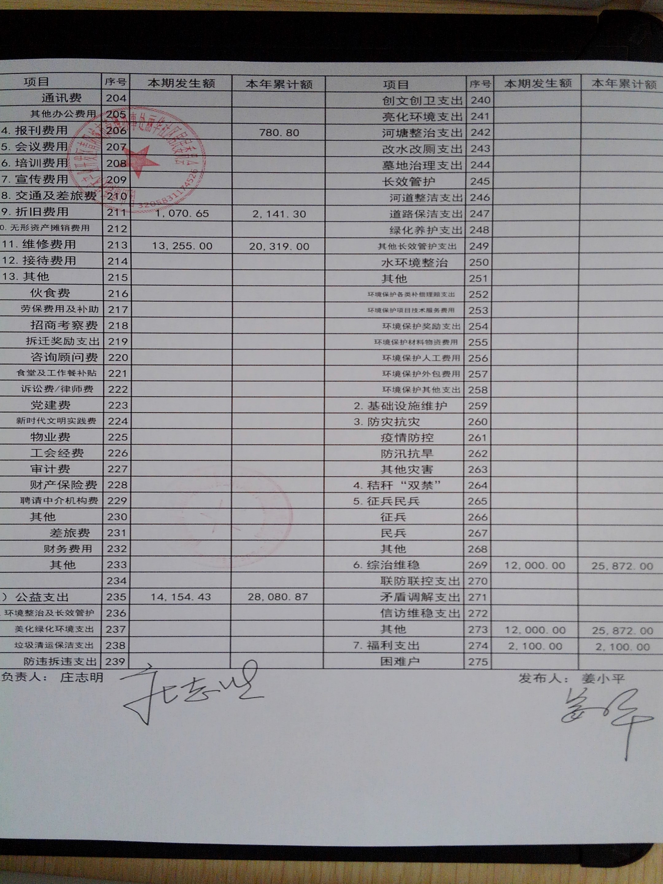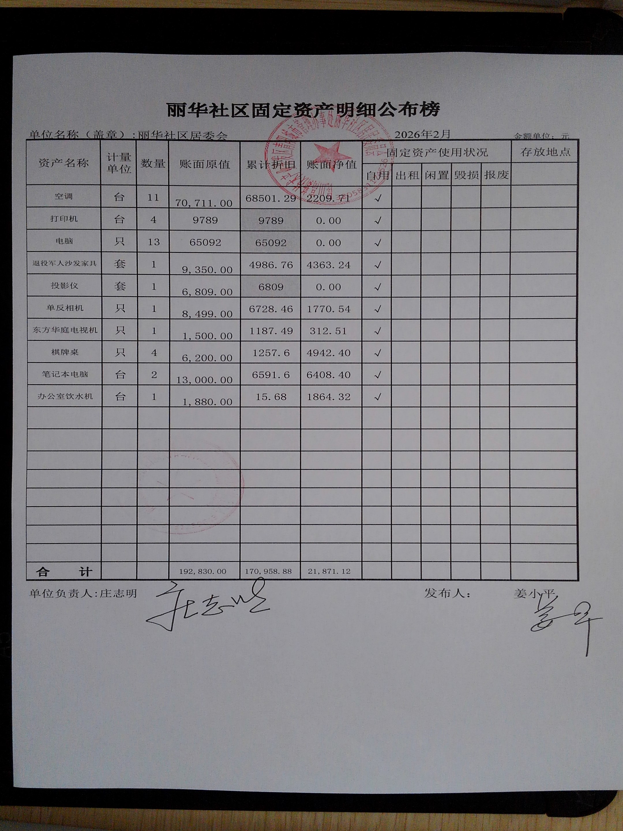 2026年2月份丽华社区居委会财务公开