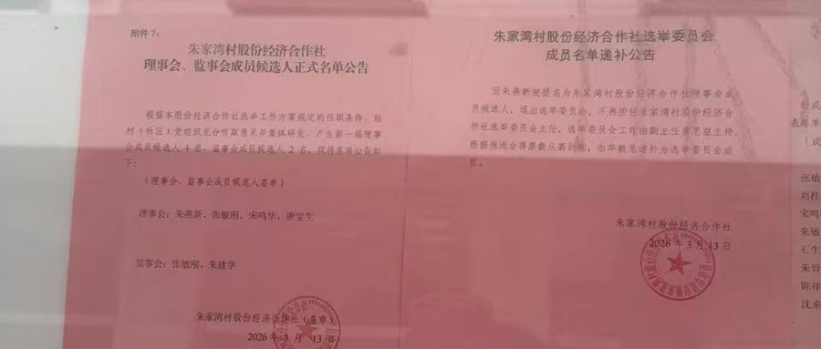 朱家湾股份经济合作社候选人及选举委员会更新名单公示