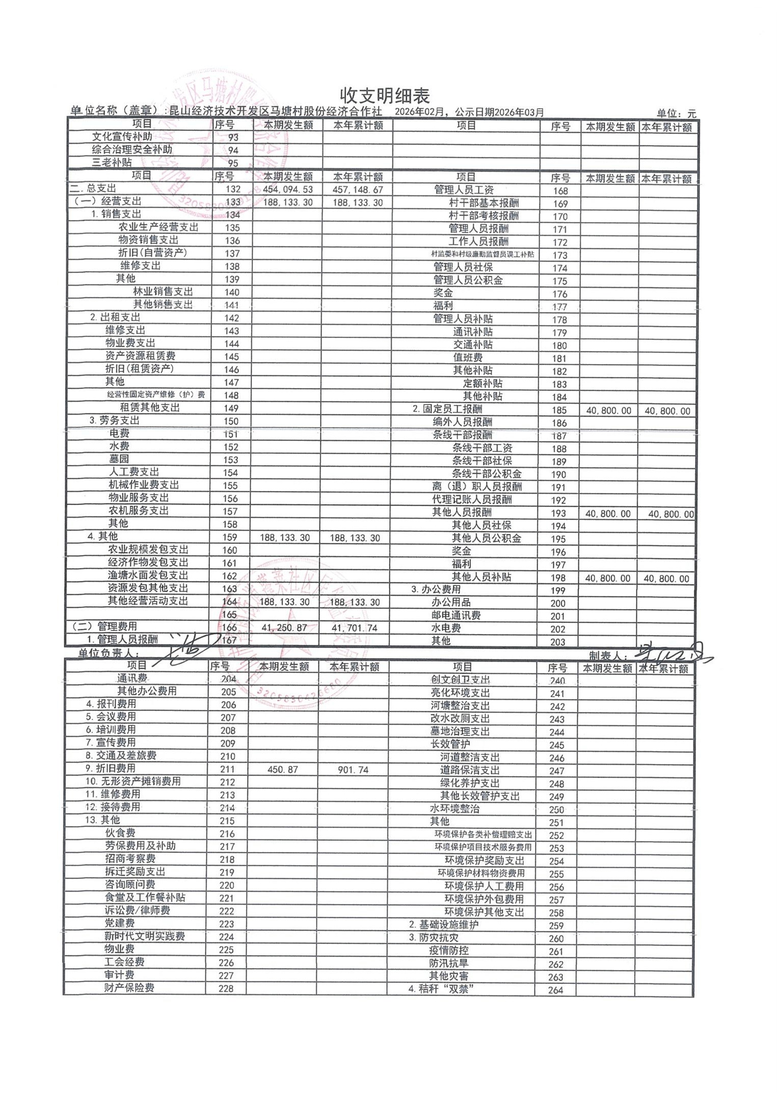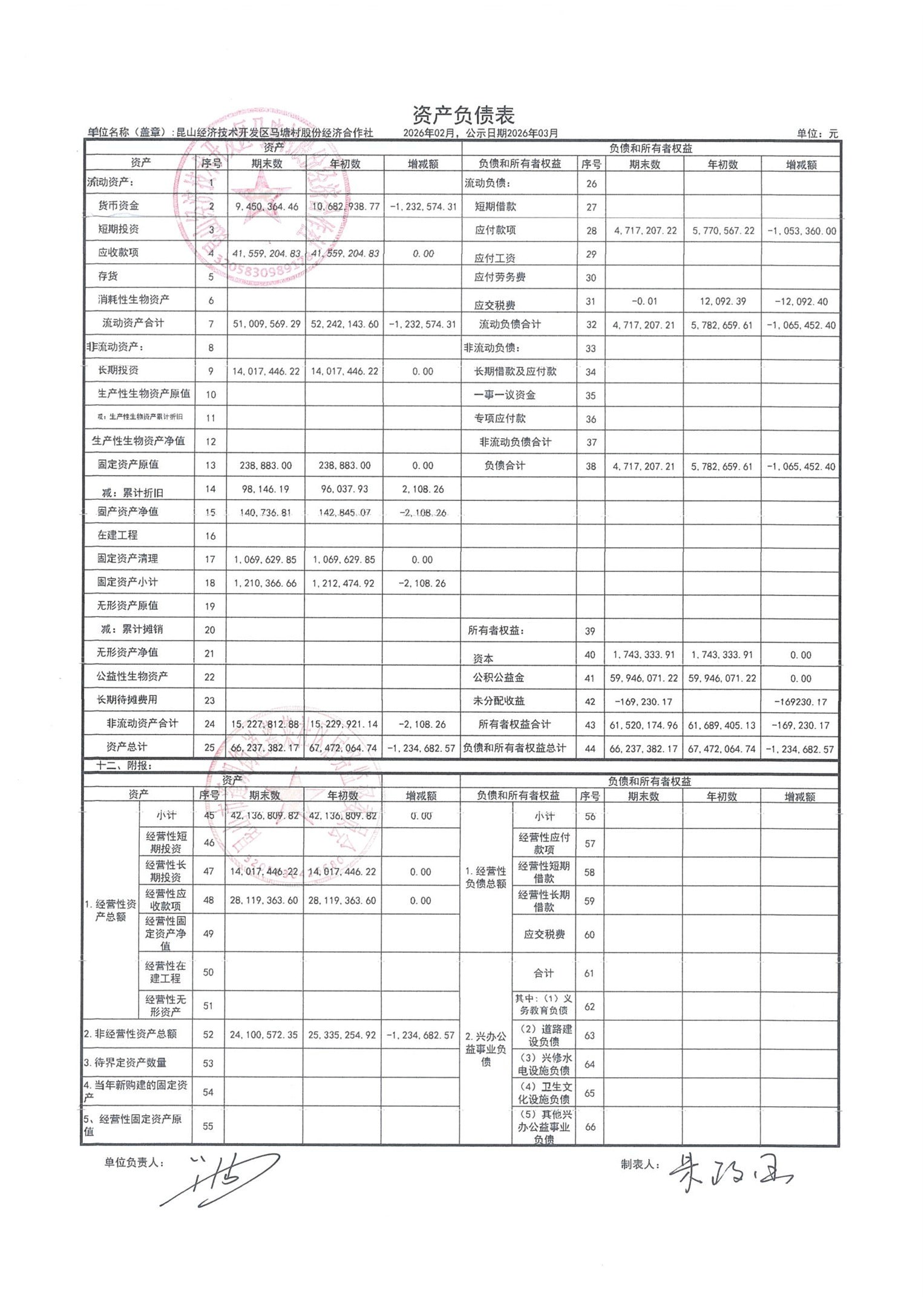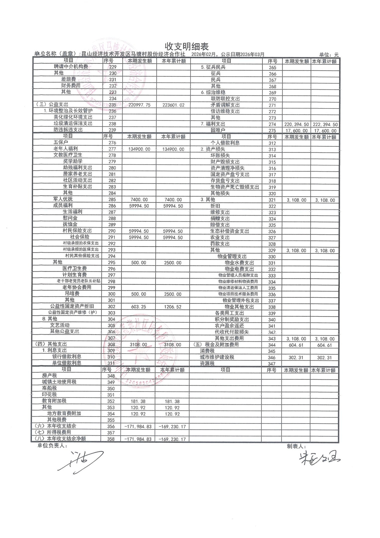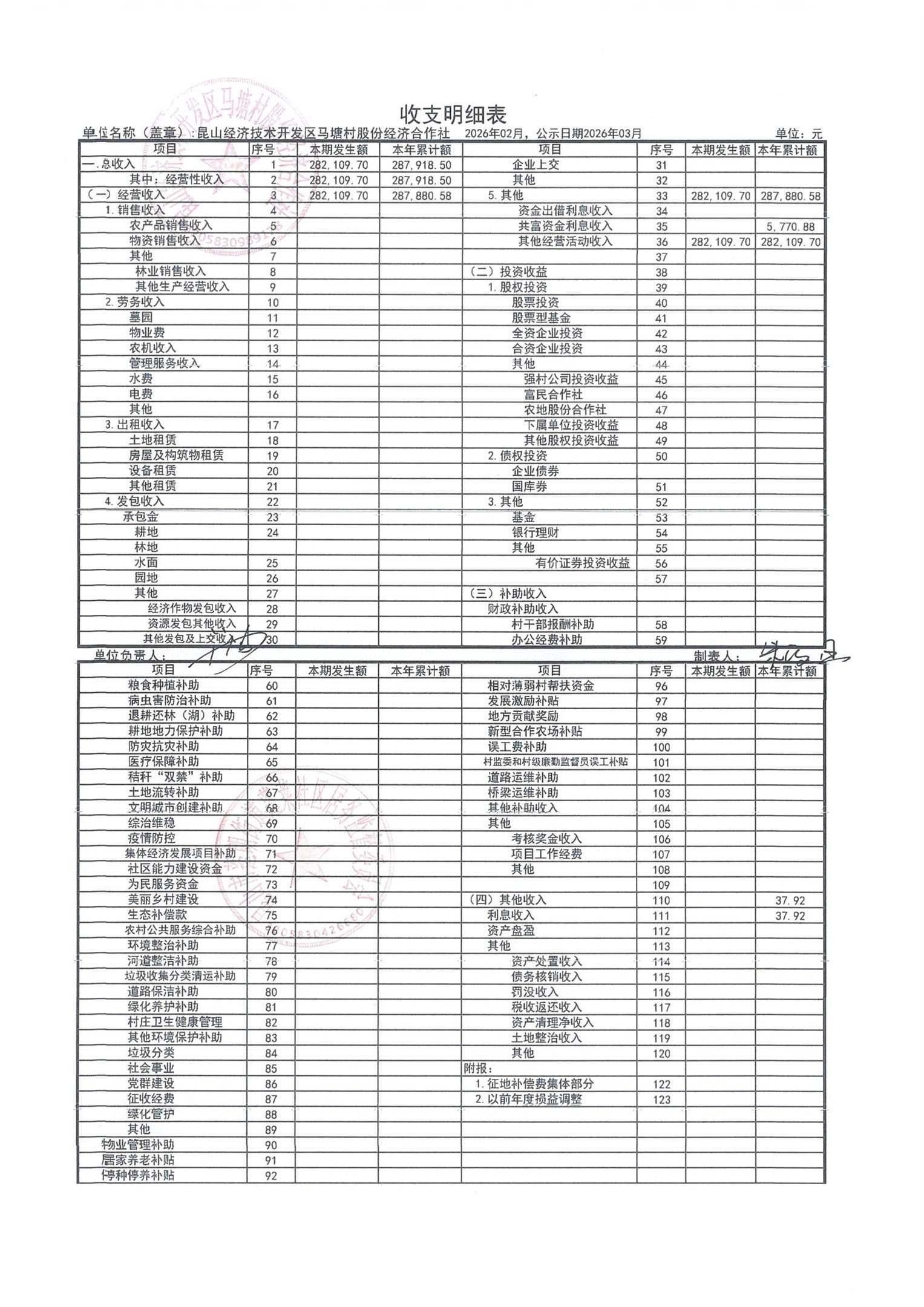 2026年2月财务公开(马塘村股份经济合作社)