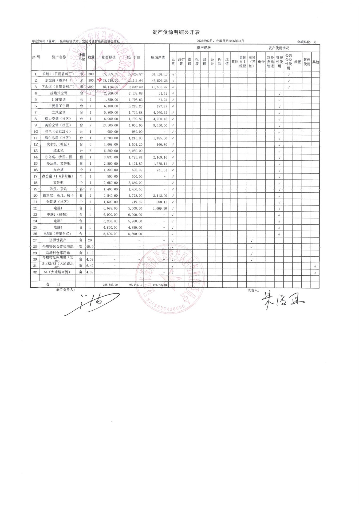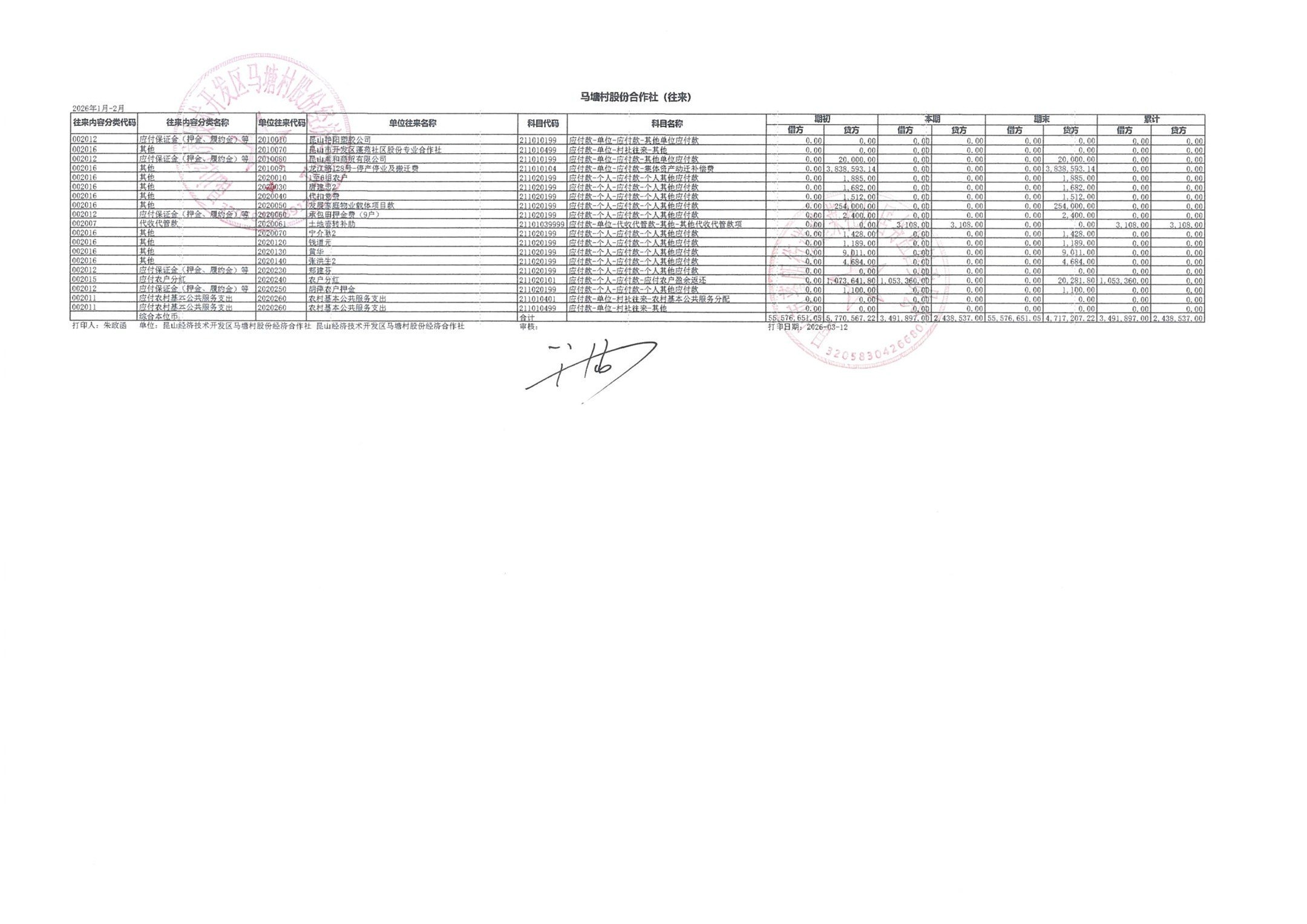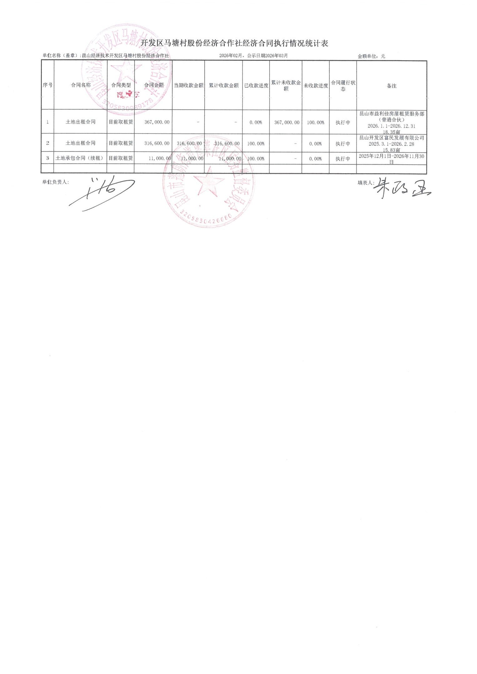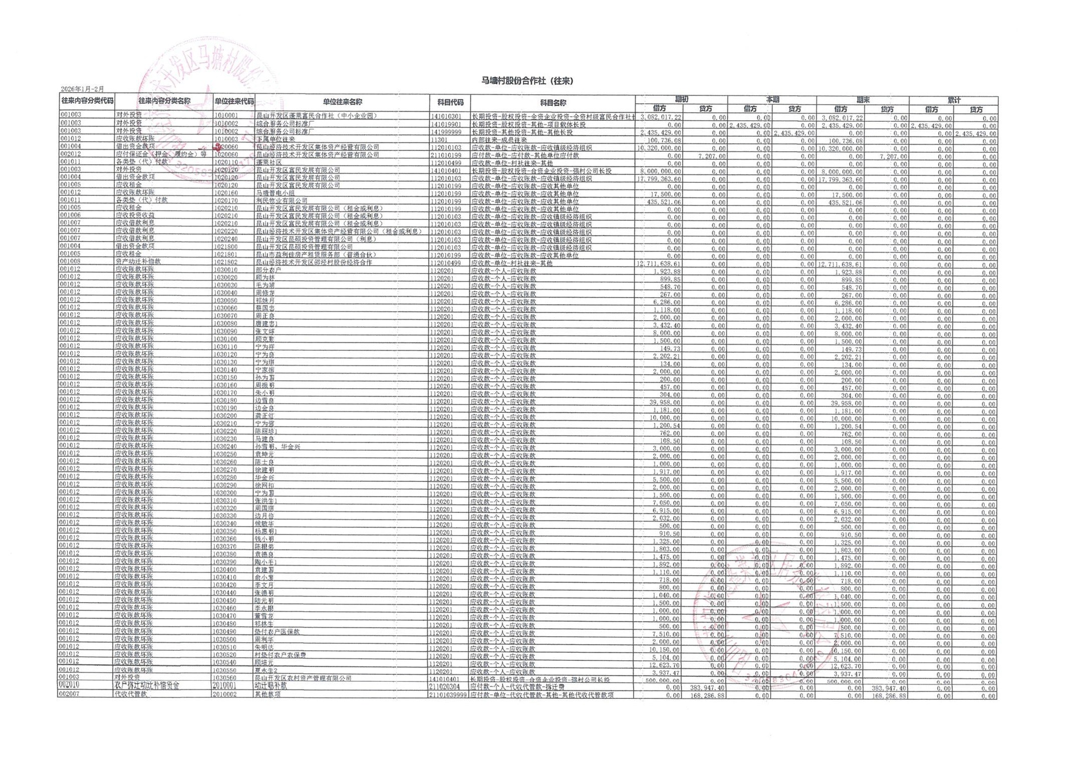2026年2月财务公开(马塘村股份经济合作社)