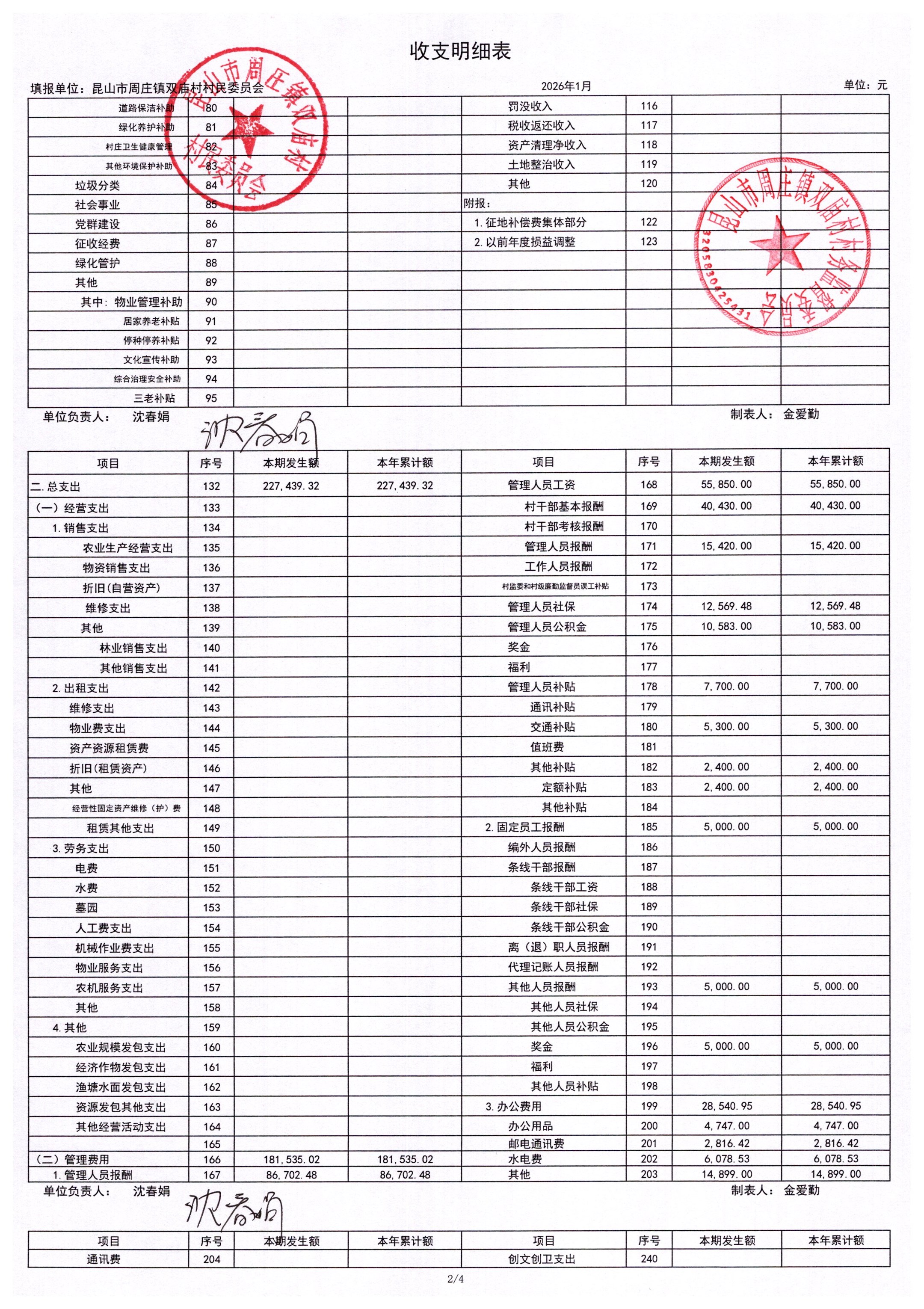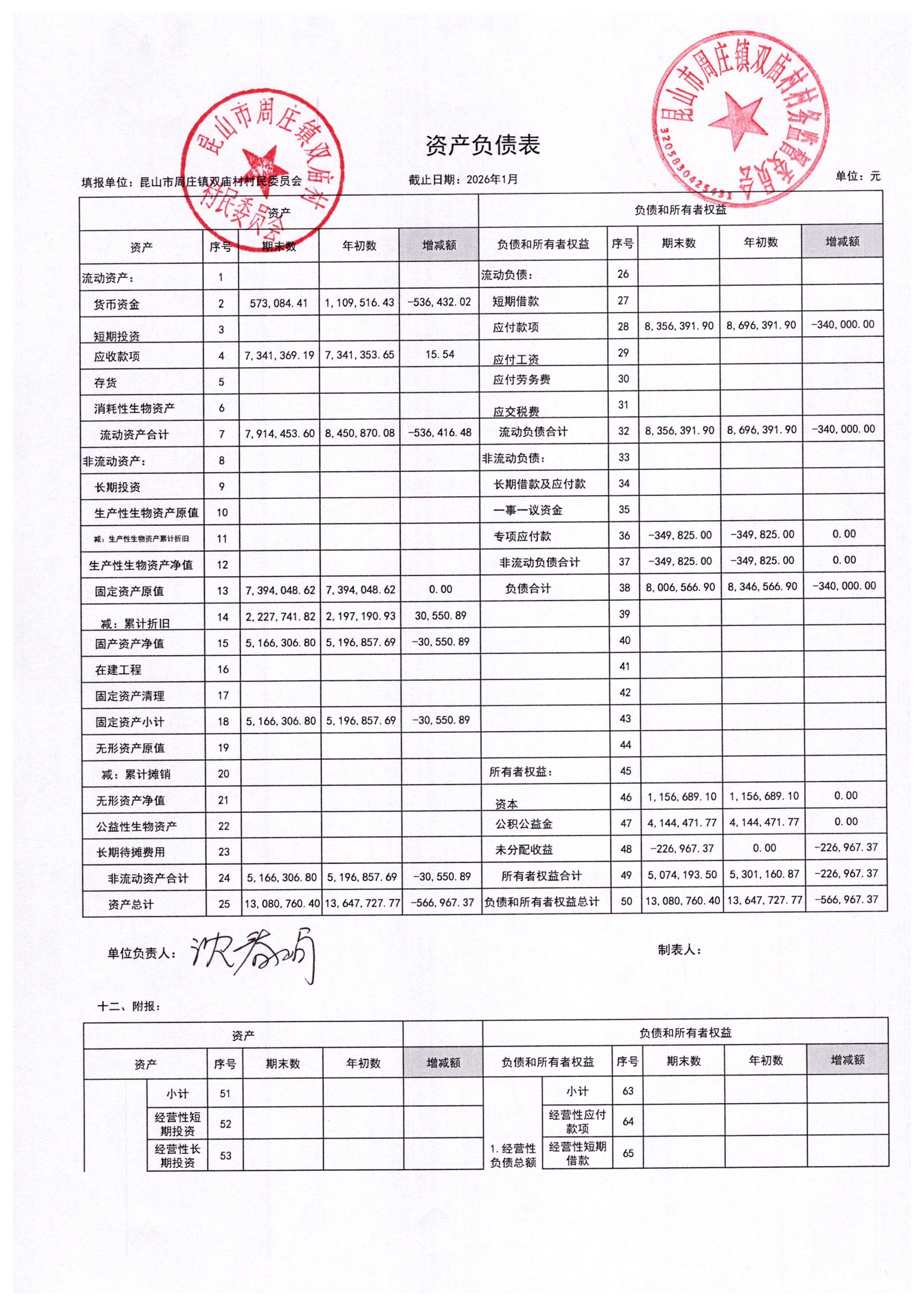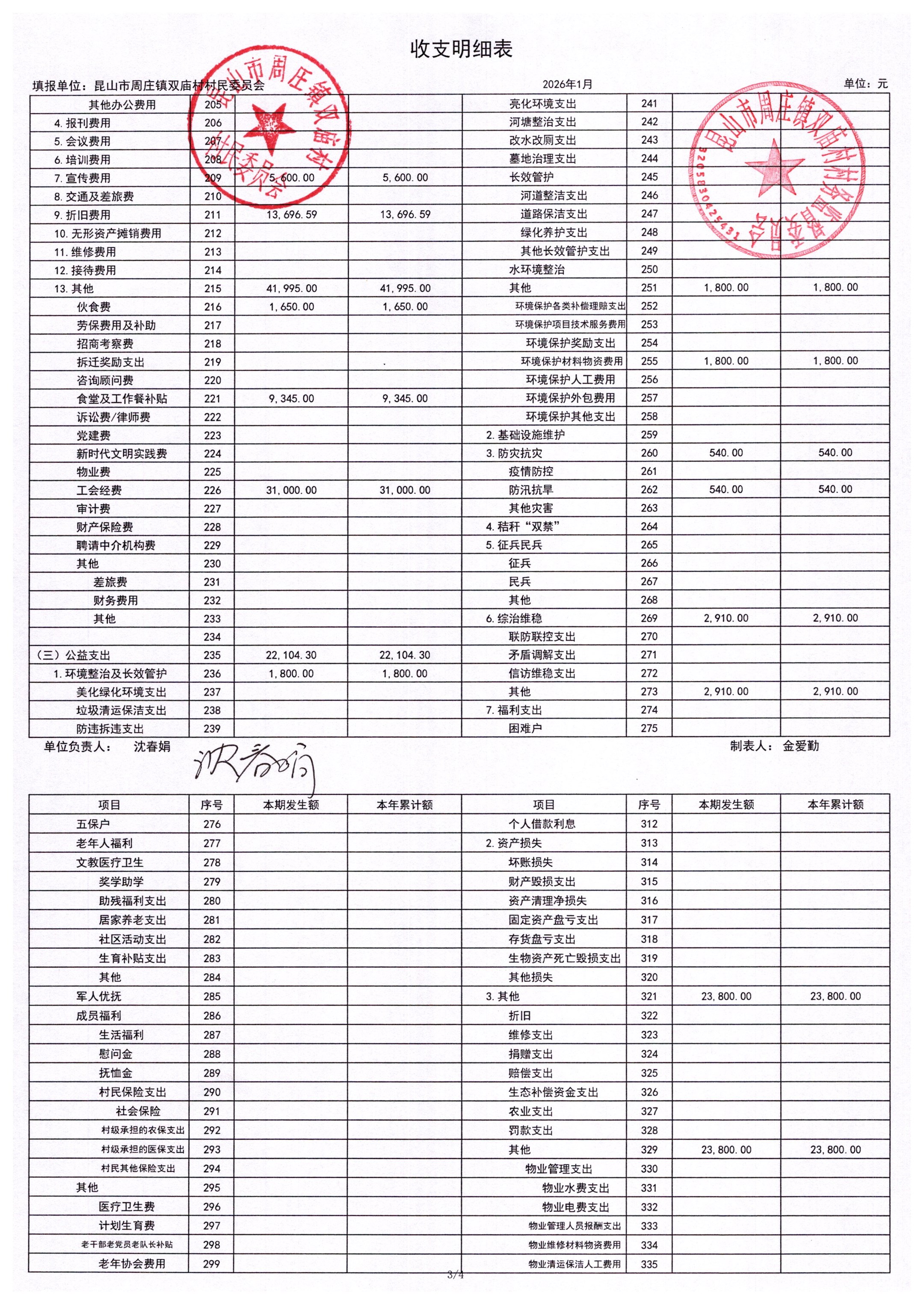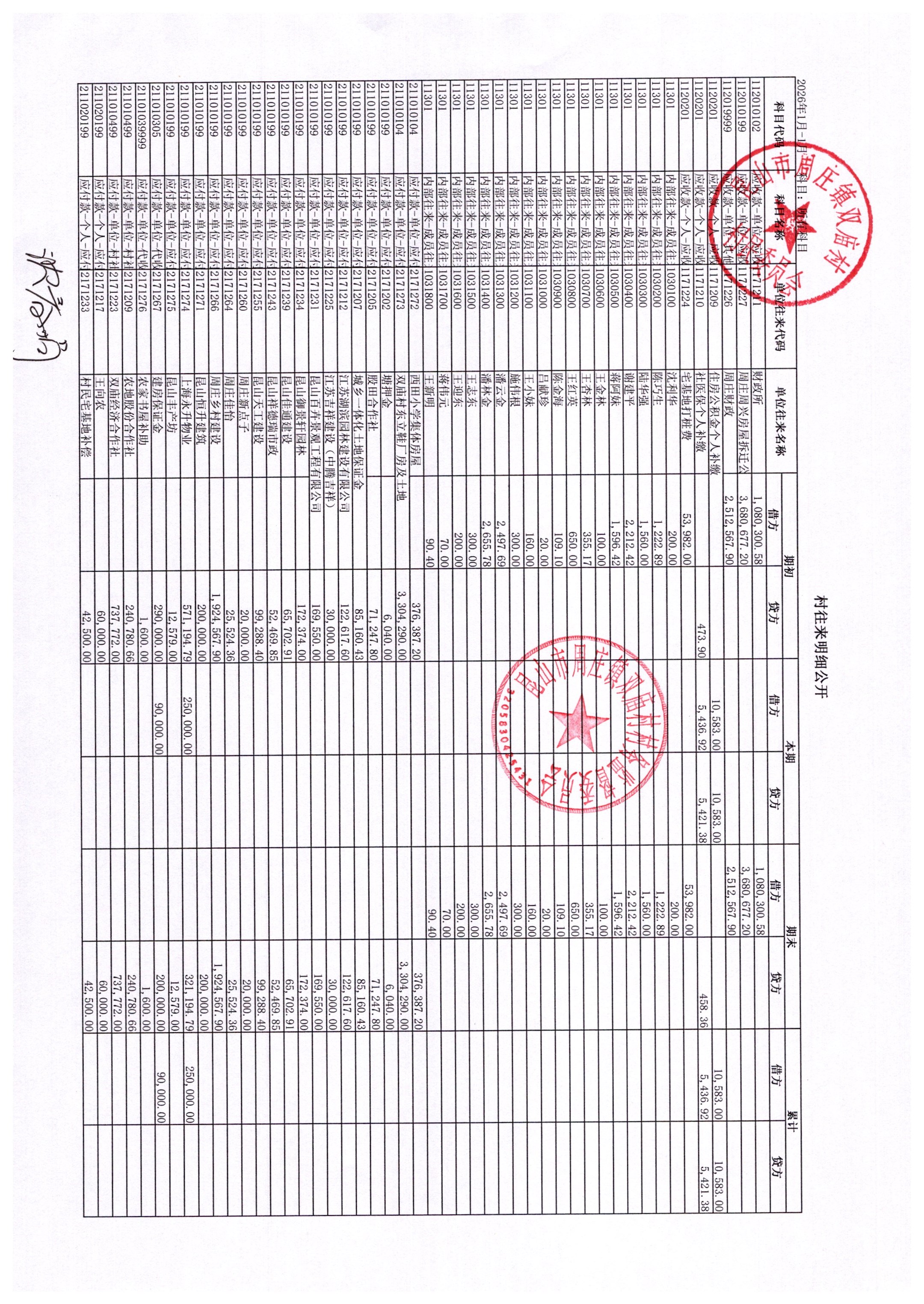 2026年1月财务公开-双庙村财务公开
