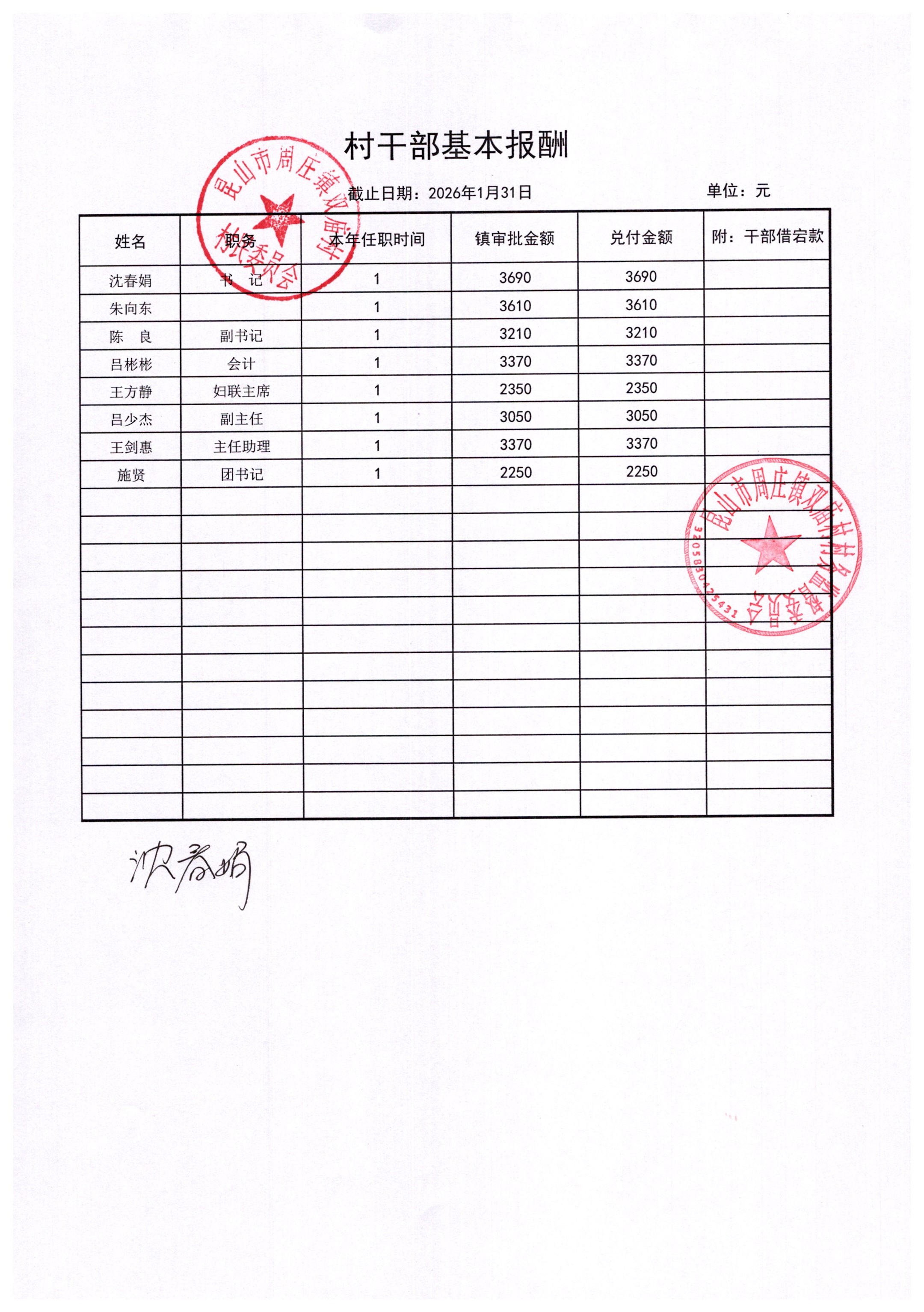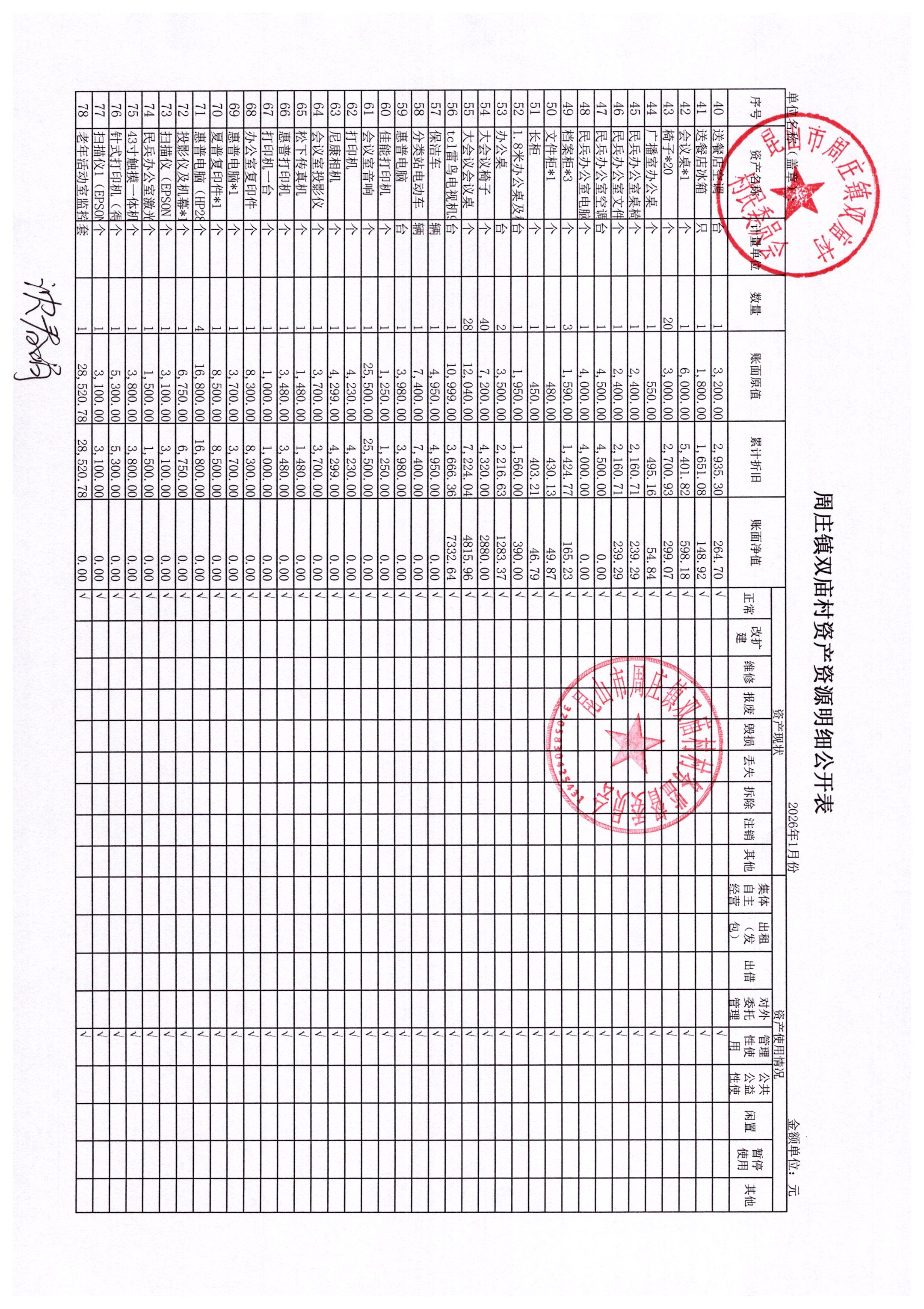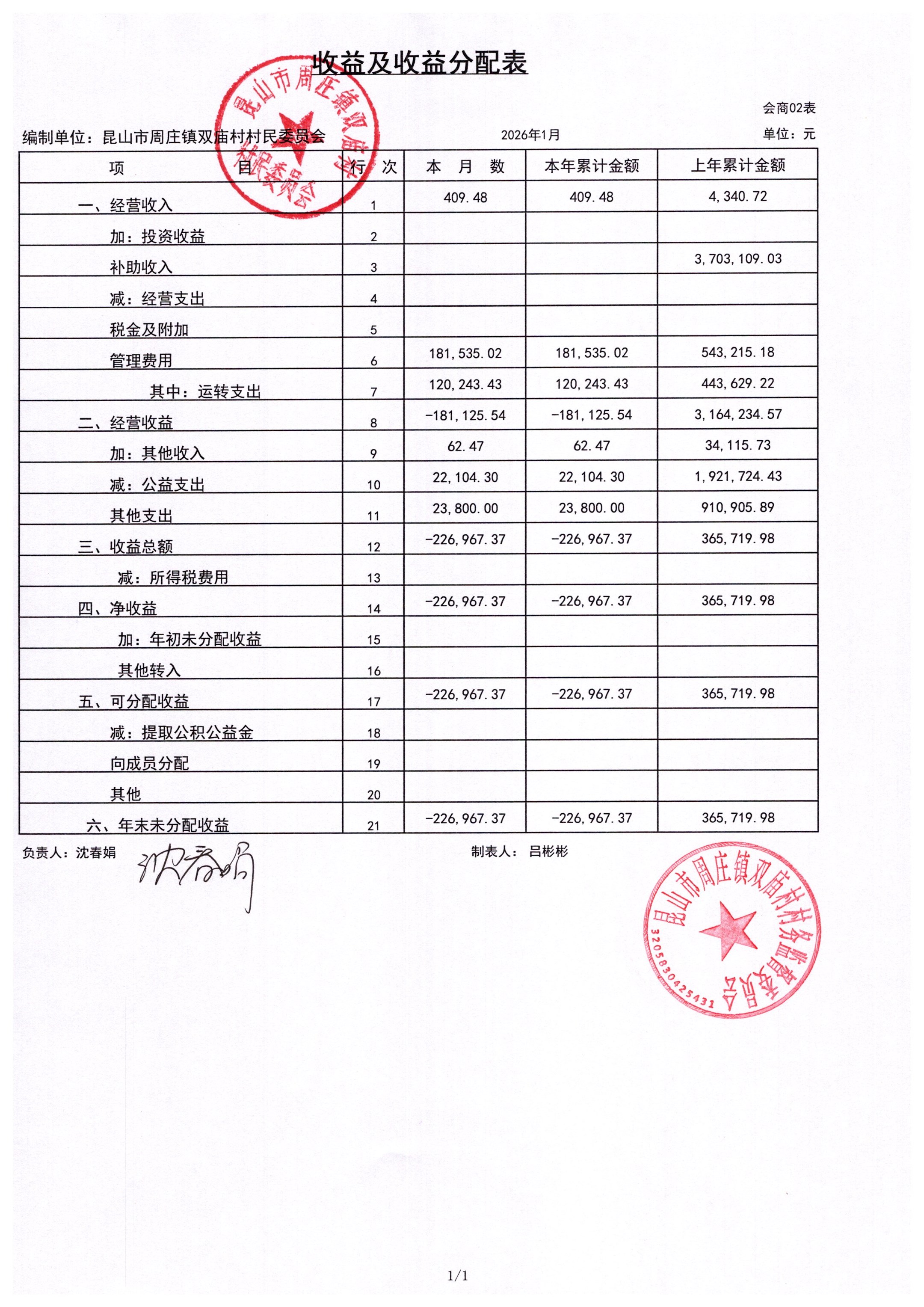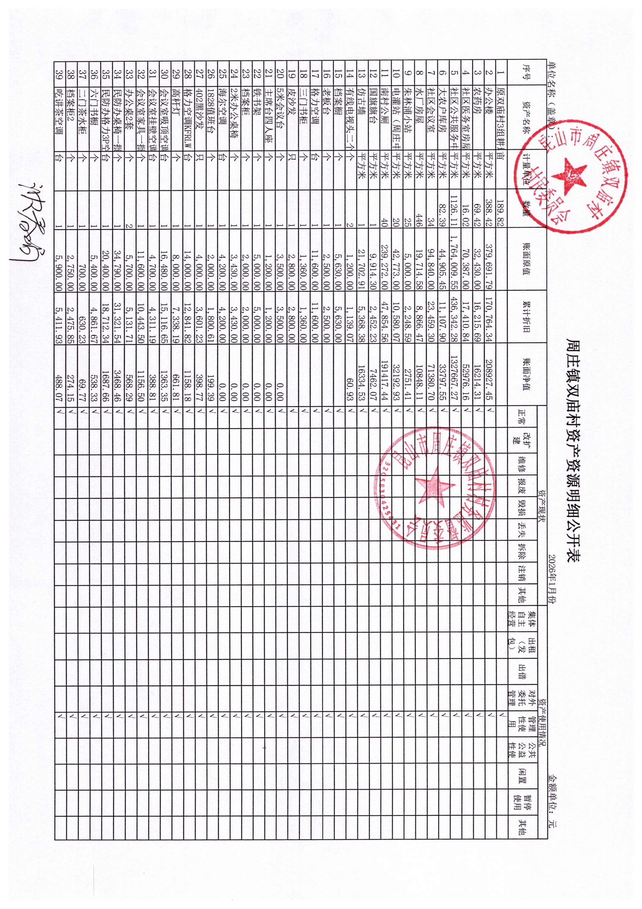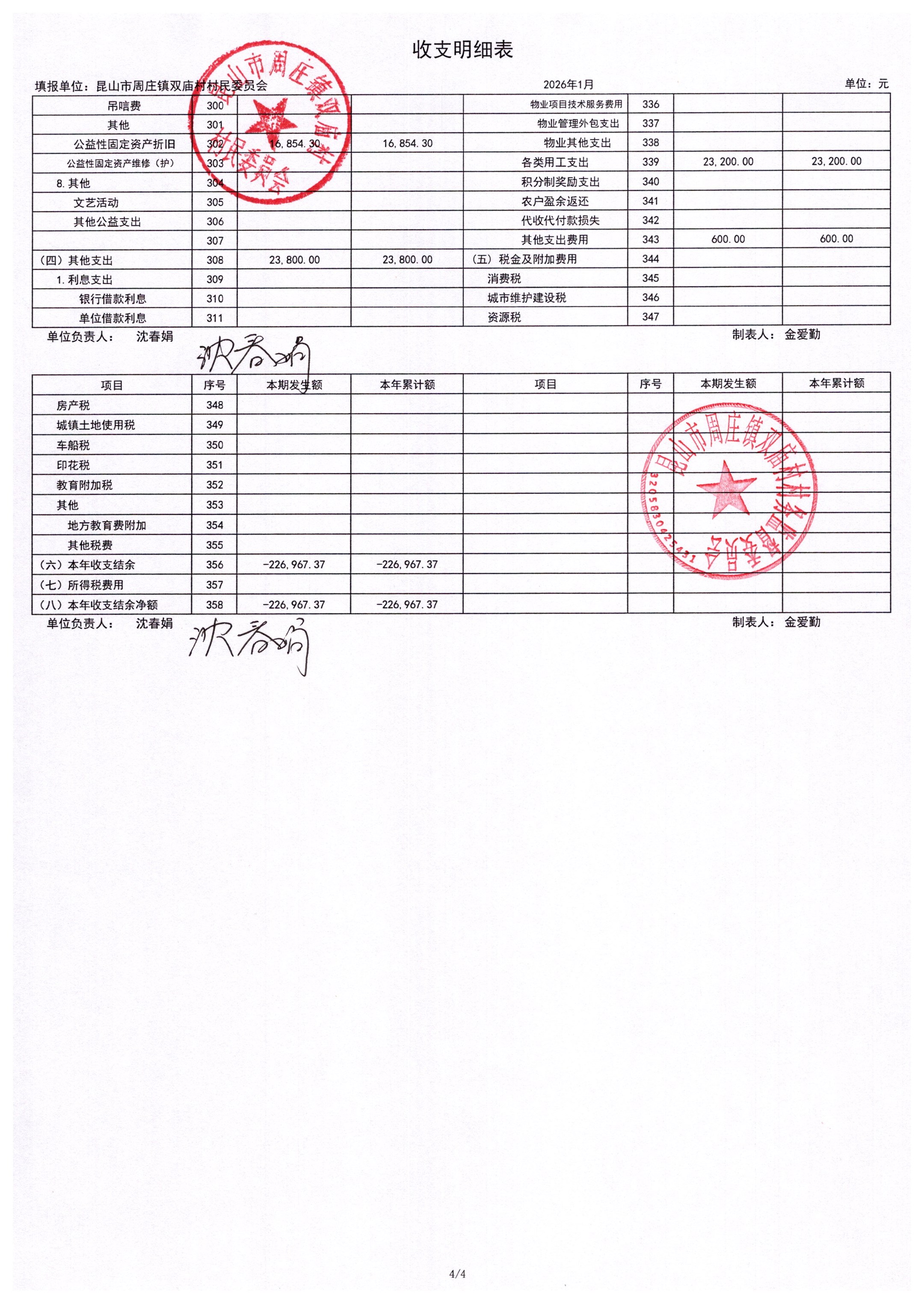 2026年1月财务公开-双庙村财务公开