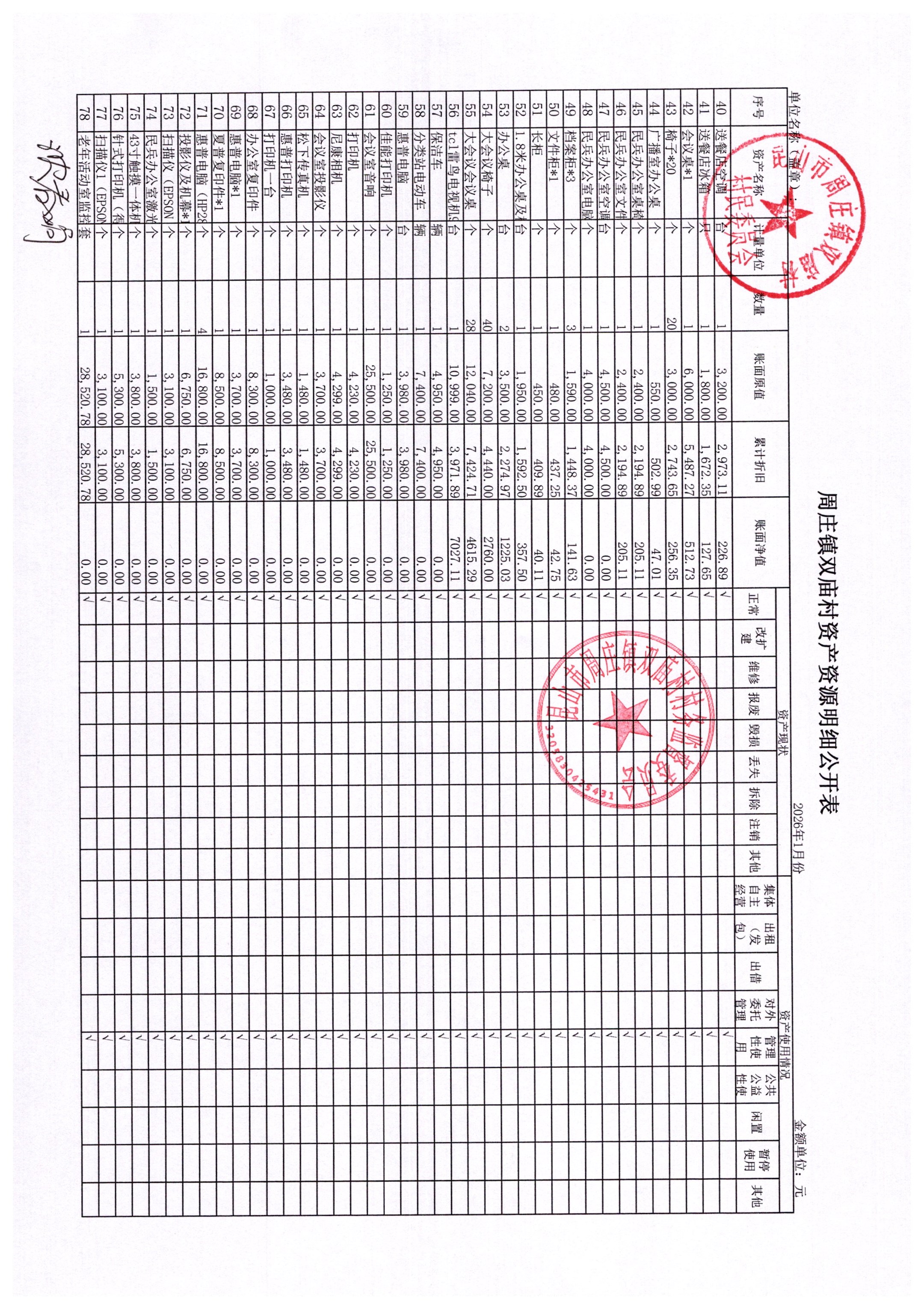 村盖章事项名录