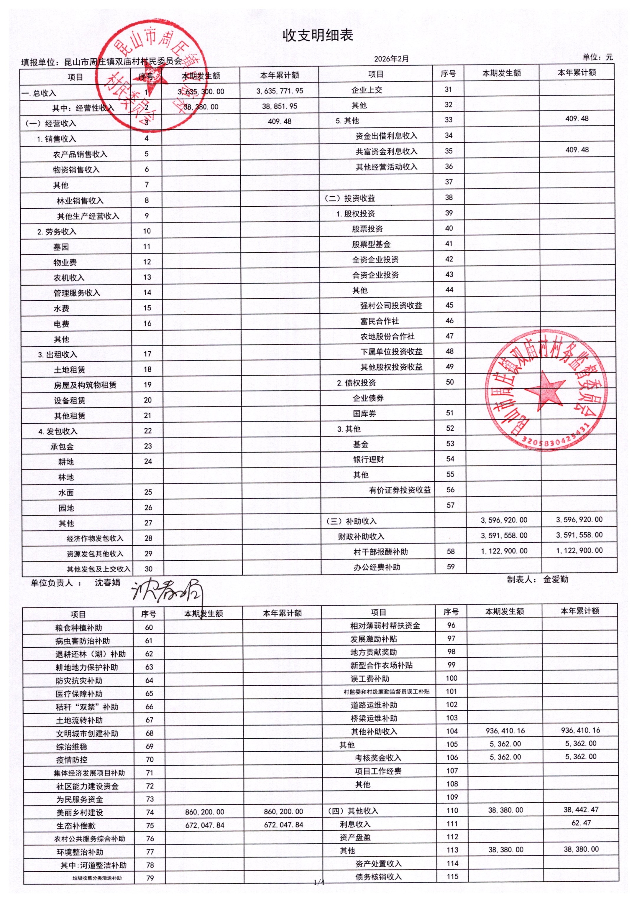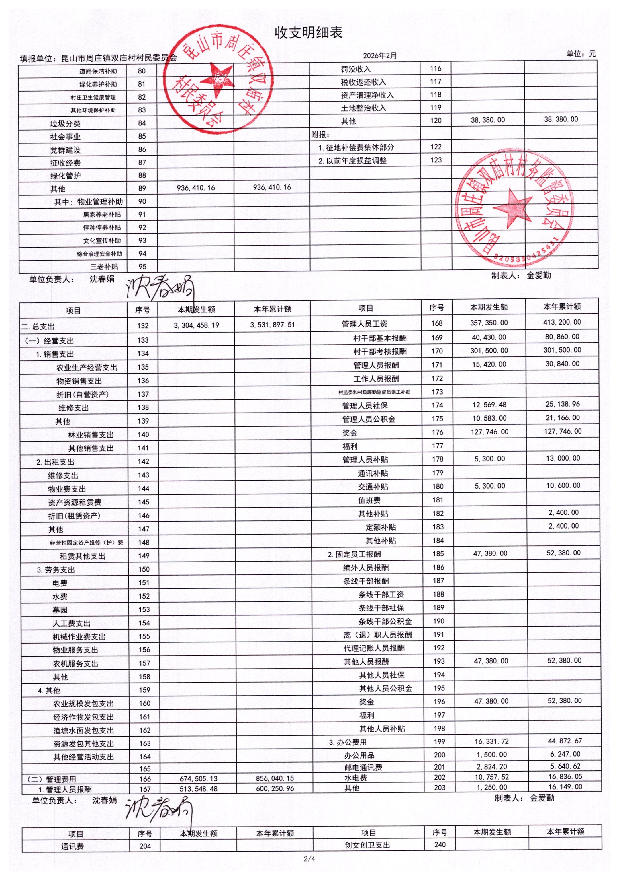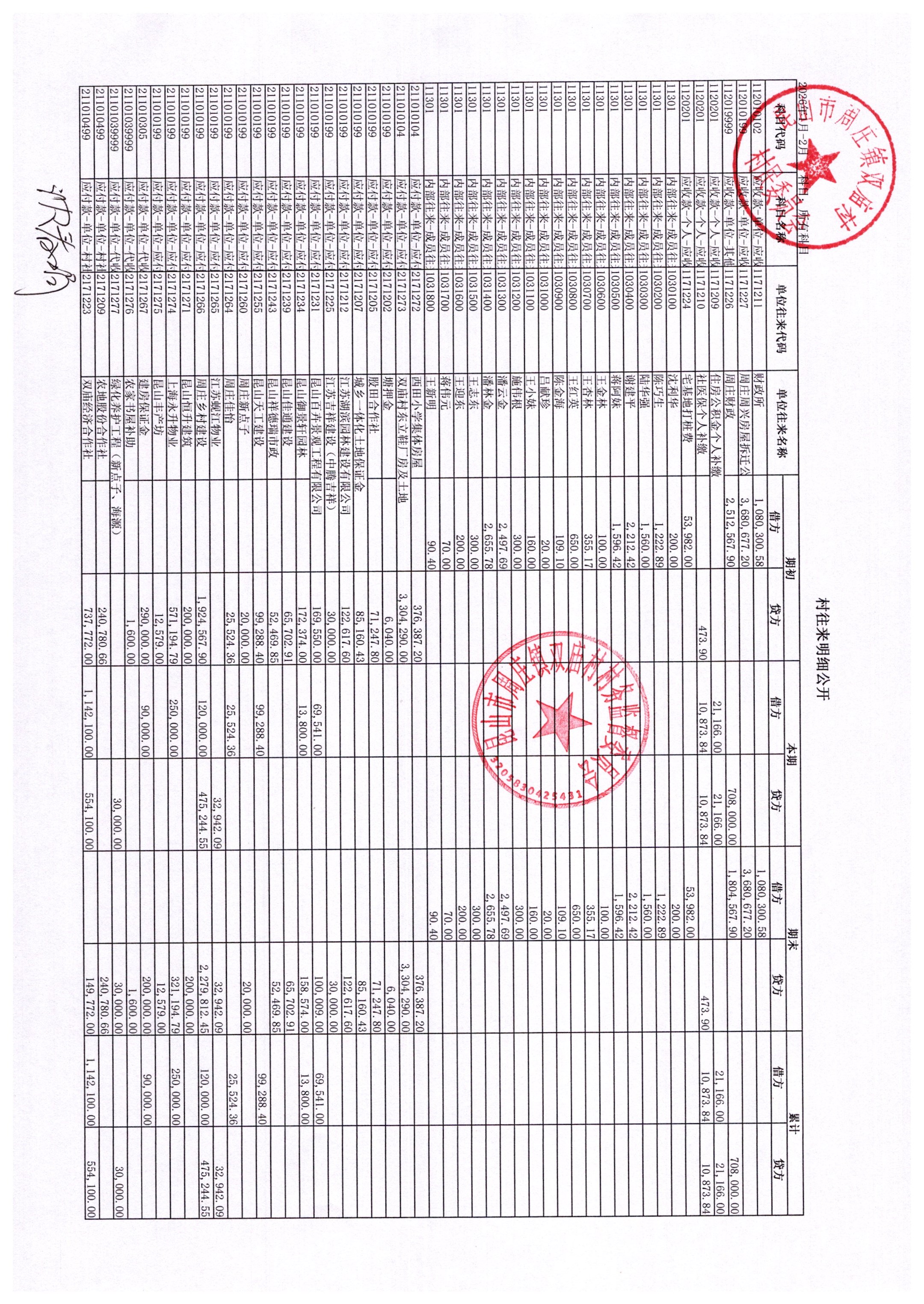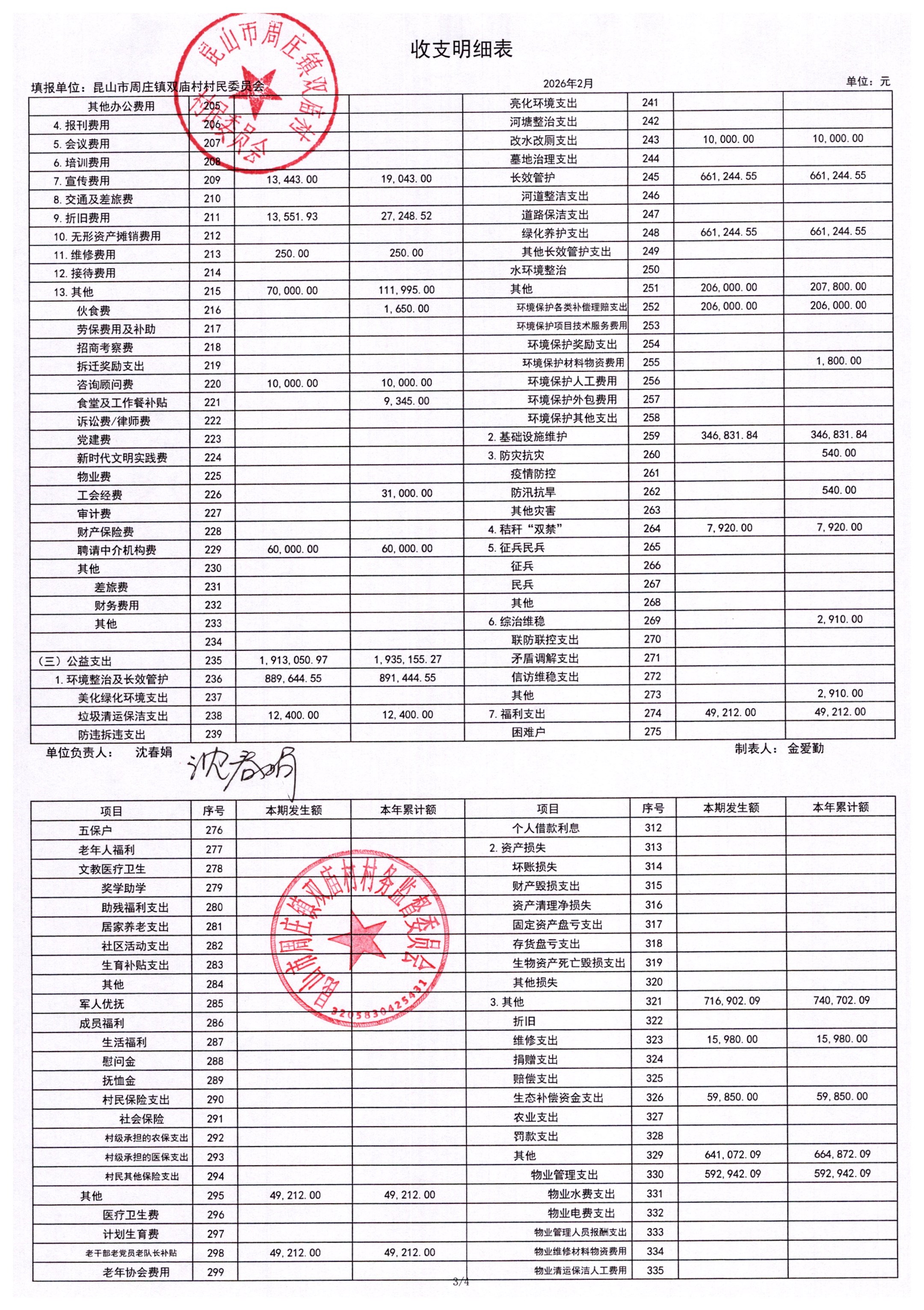 2026年2月财务公开-双庙村财务公开