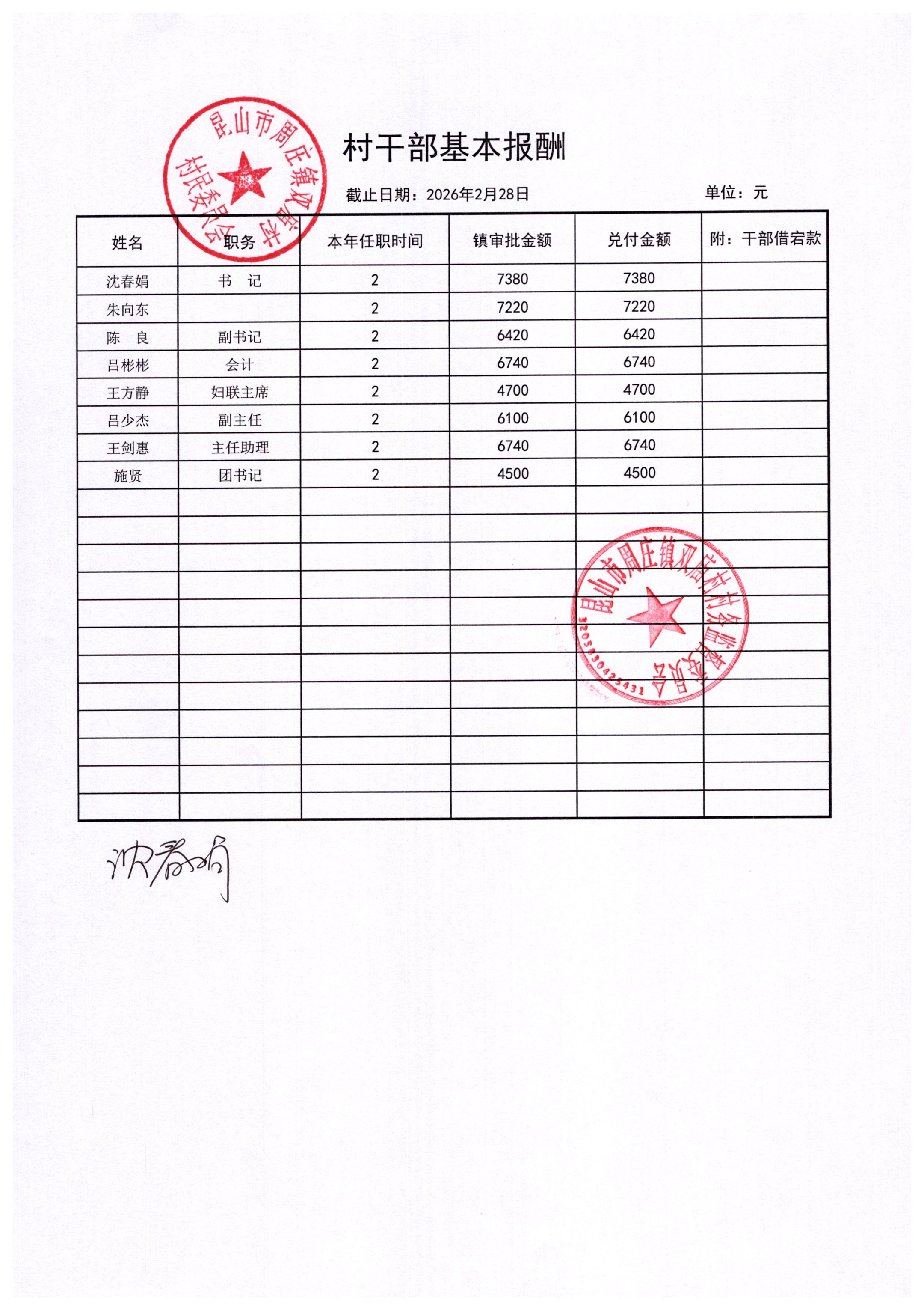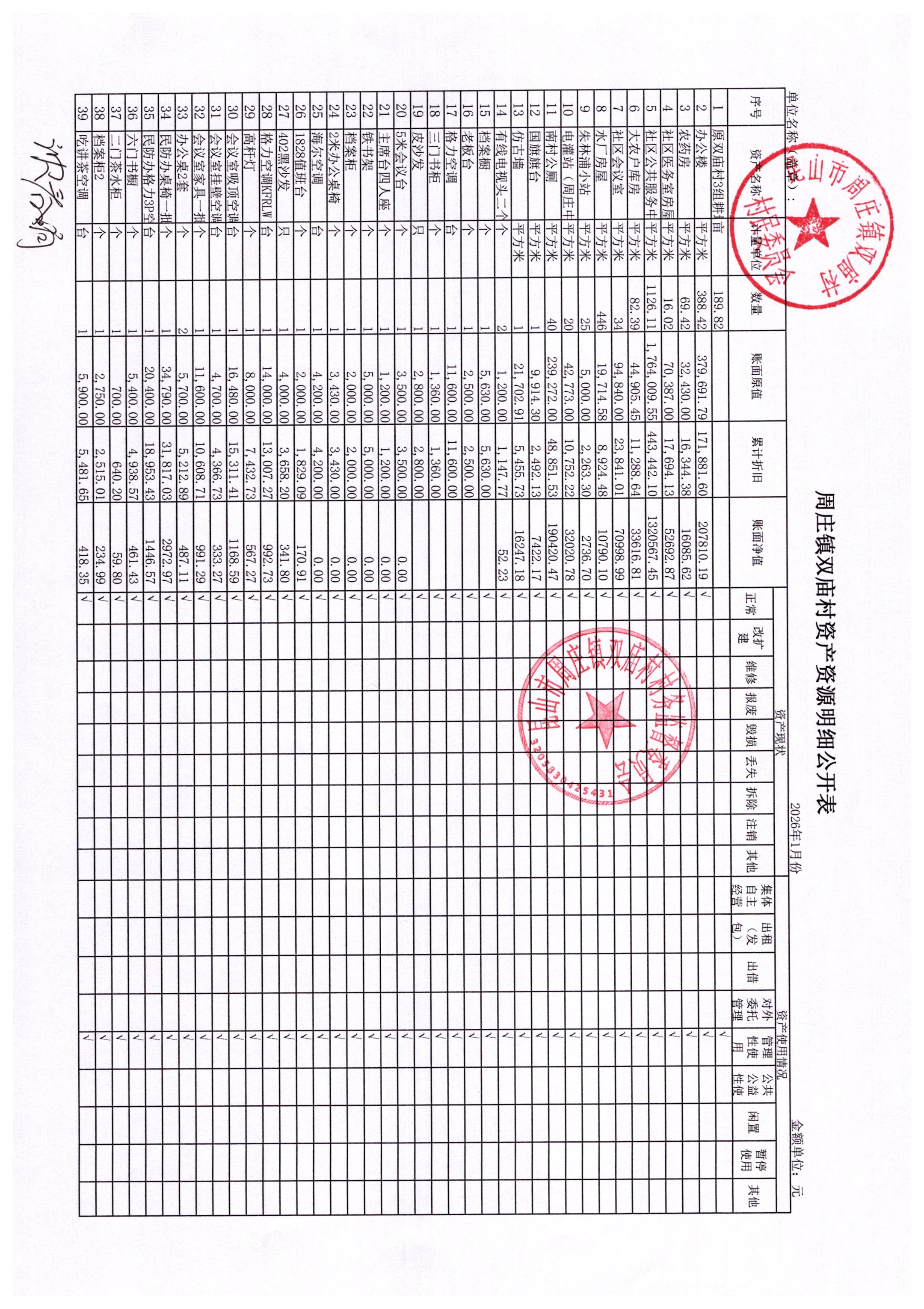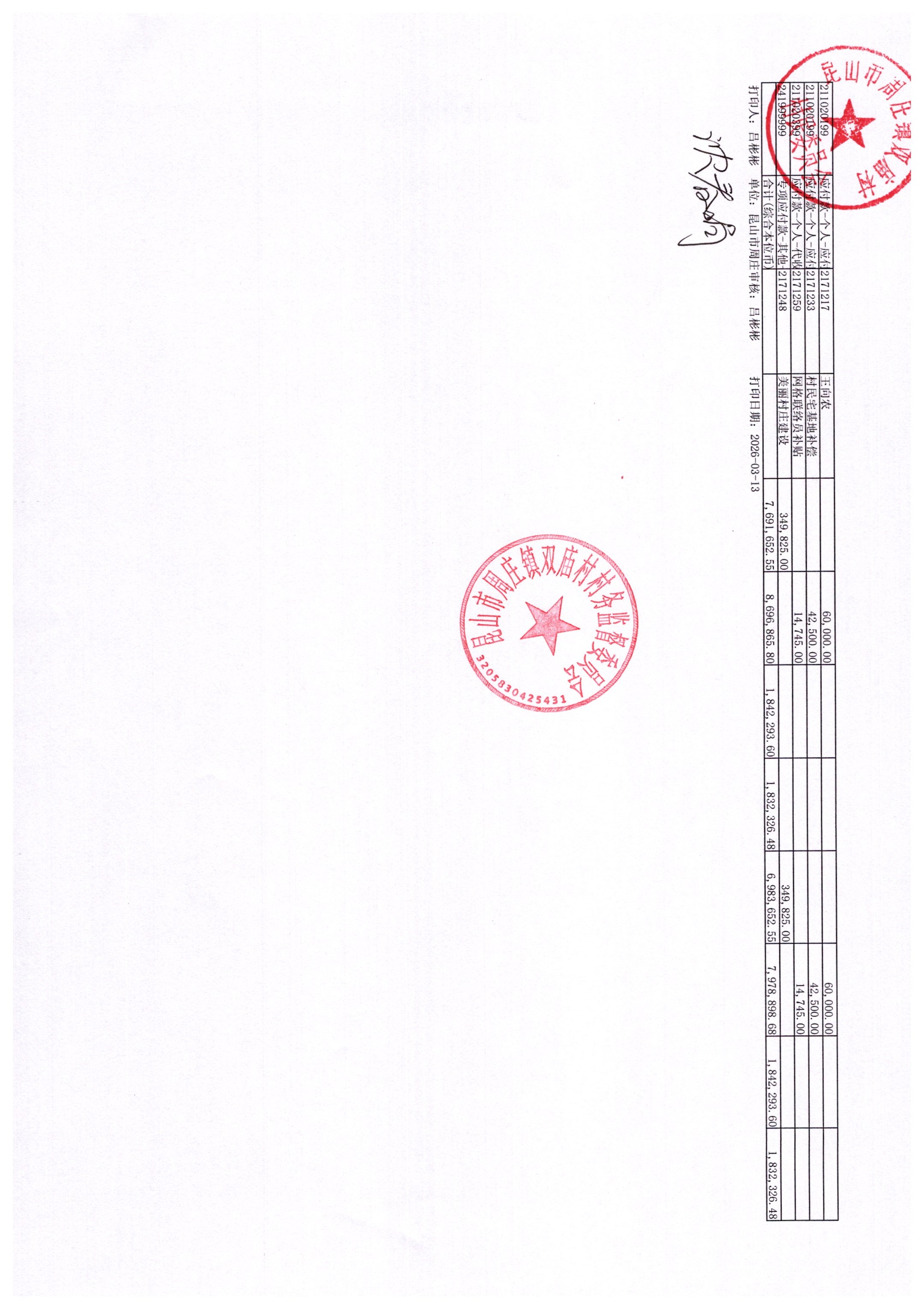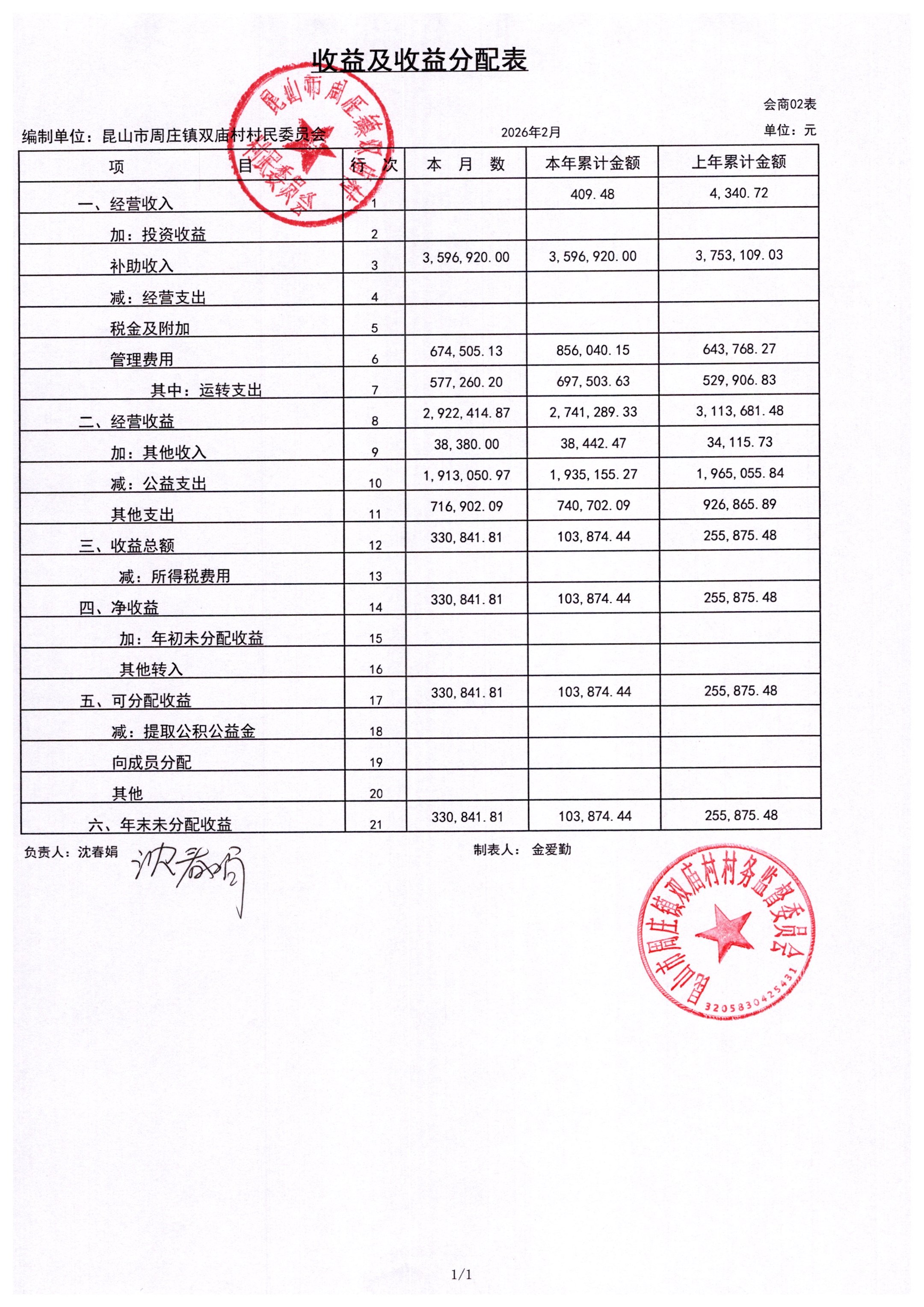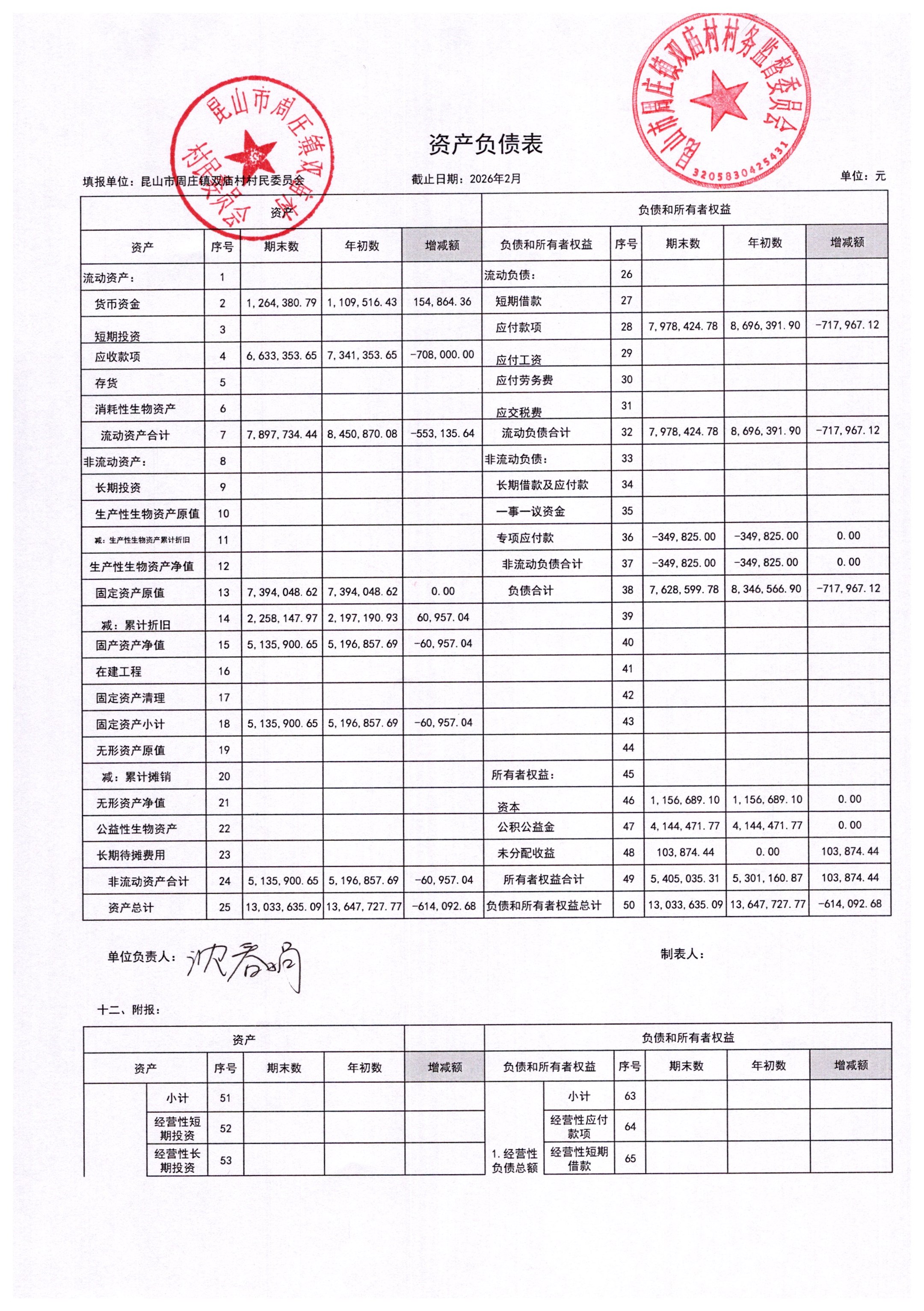 2026年2月财务公开-双庙村财务公开
