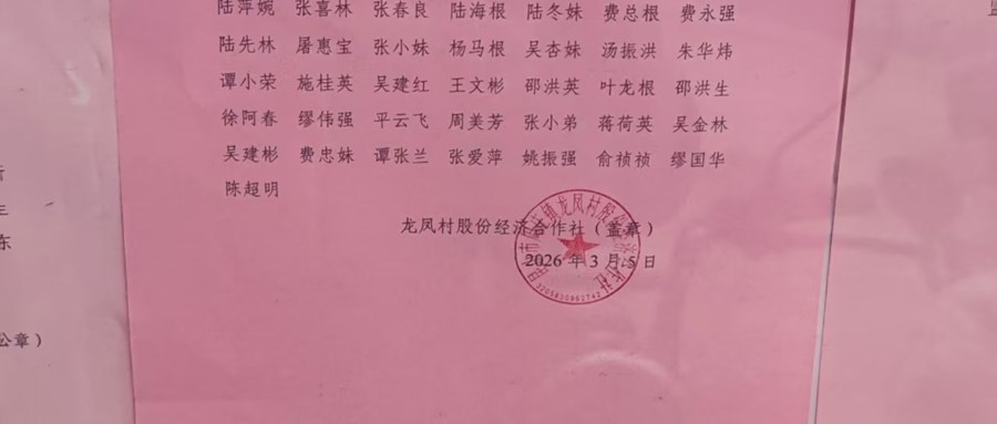 2026年龙凤村股份经济合作社换届选举社成员代表公告