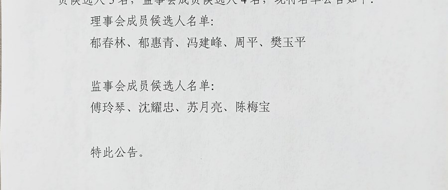 星浜村股份经济合作社新一届理事会、监事会成员候选人正式名单公告