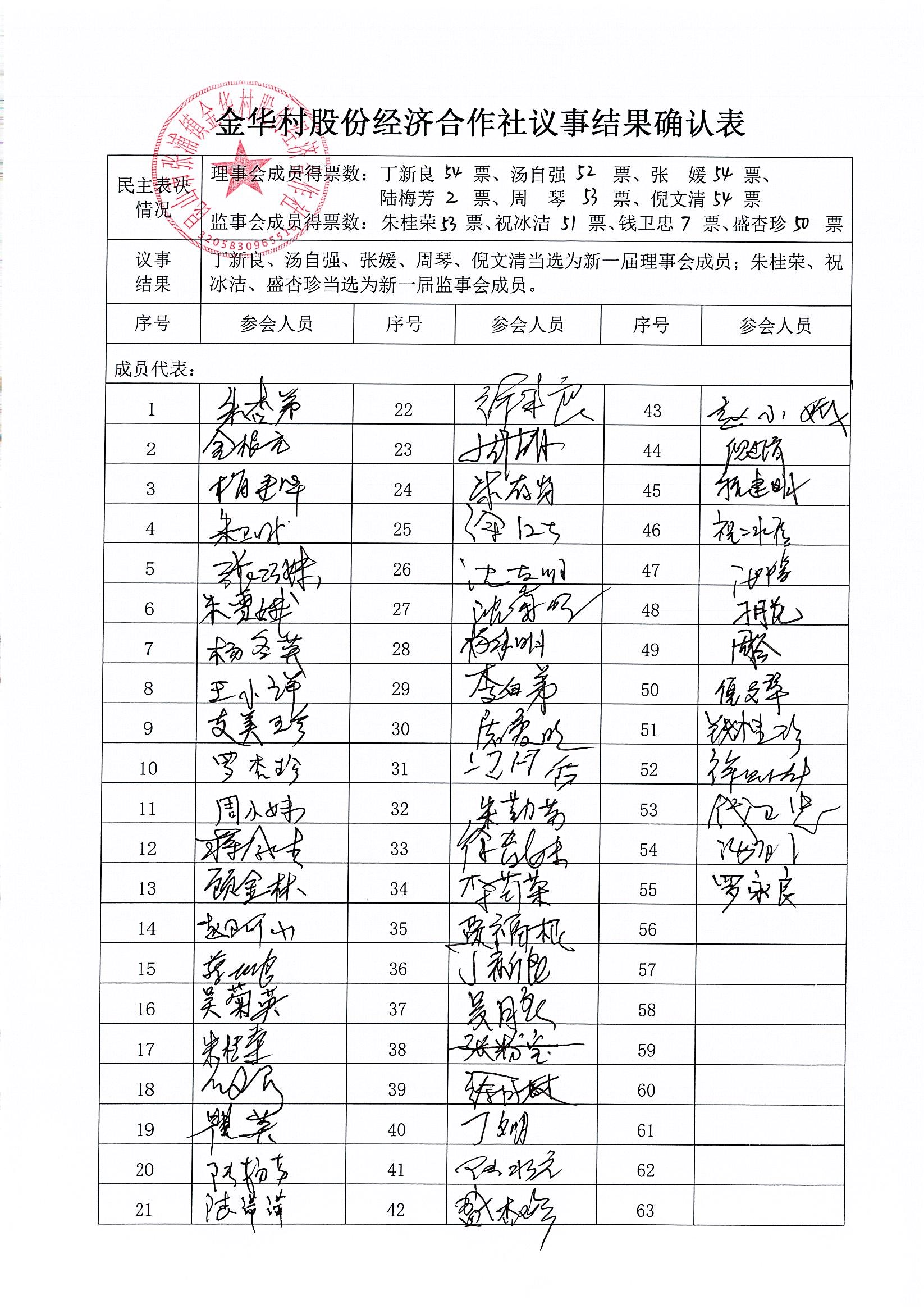 金华村股份经济合作社成员代表大会决议(关于理事会换届选举)