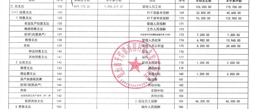西宿村2026年3月西宿村财务公开