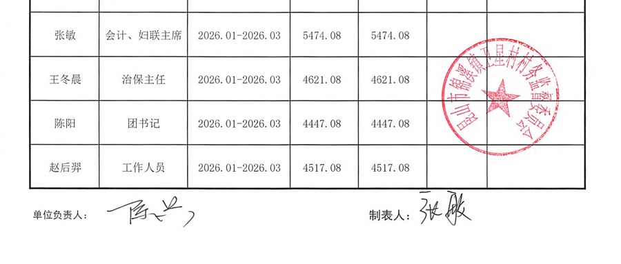 卫星村2026年2月财务公开:村干部基本报酬