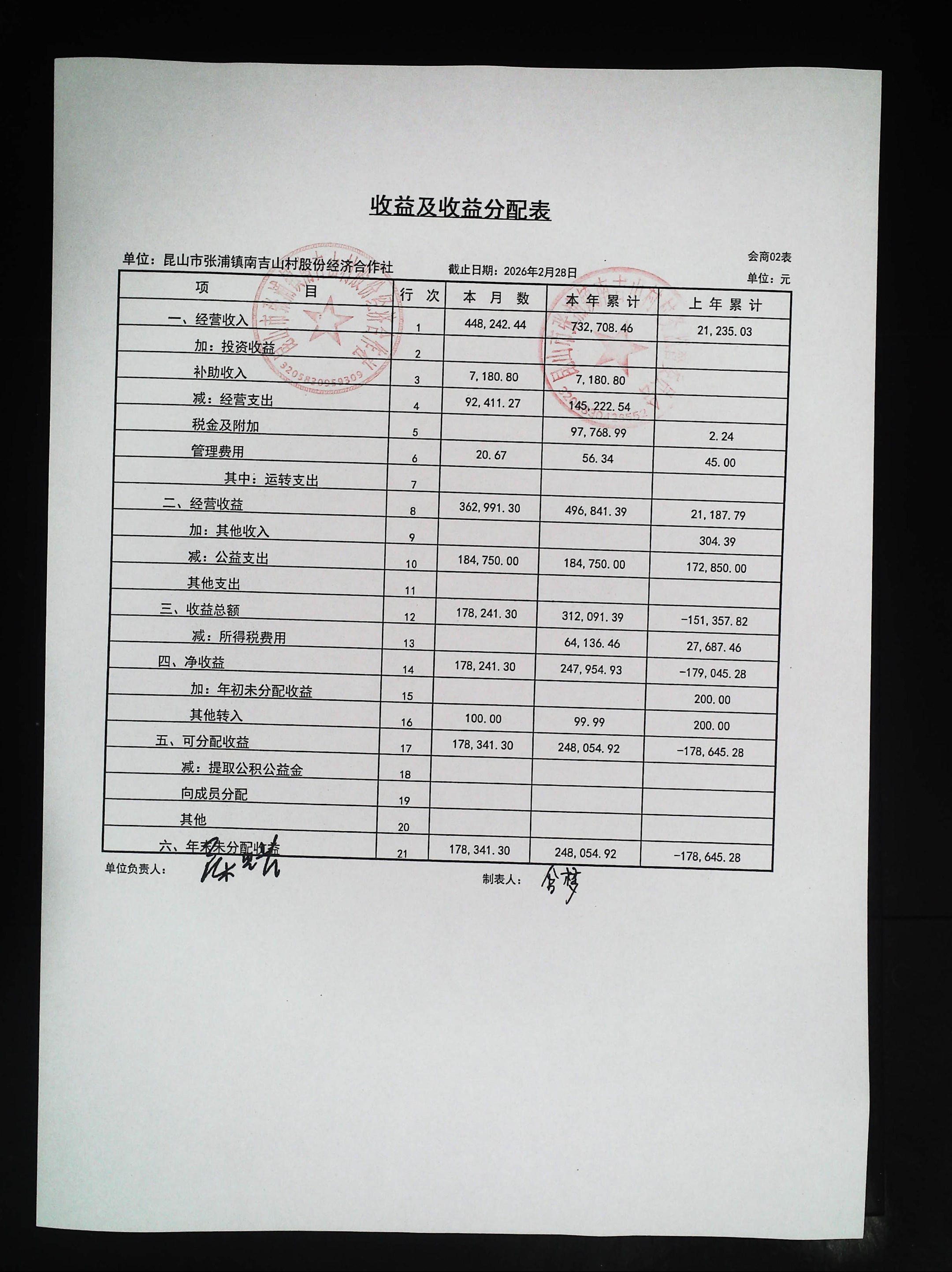 2026年2月社区财务公开