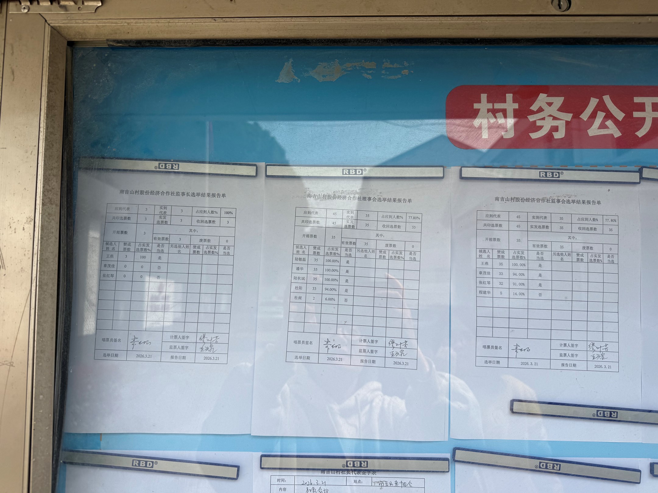 南吉山村股份经济合作社理事会、理事长、监事会、监事长计票结果报告单
