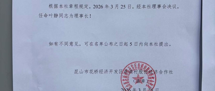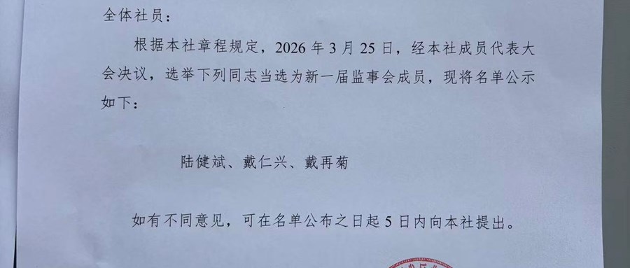 巷浦村股份经济合作社新一届理事会成员、监事会成员、理事长、监事长的公告