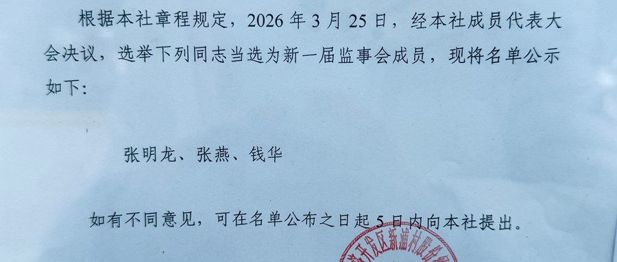 昆山市花桥经济开发区新浦村股份经济合作社关于新一届监事会成员的公示