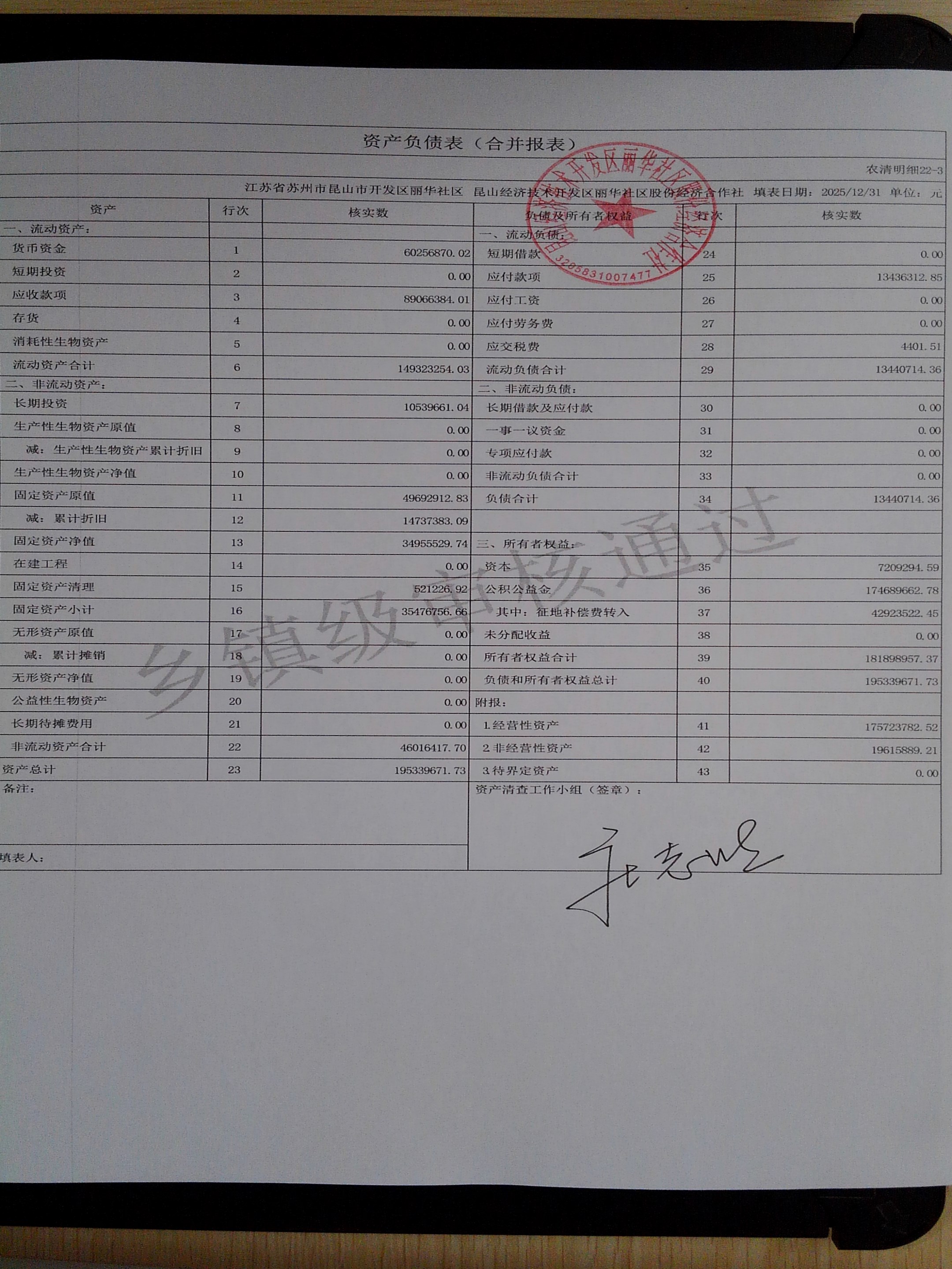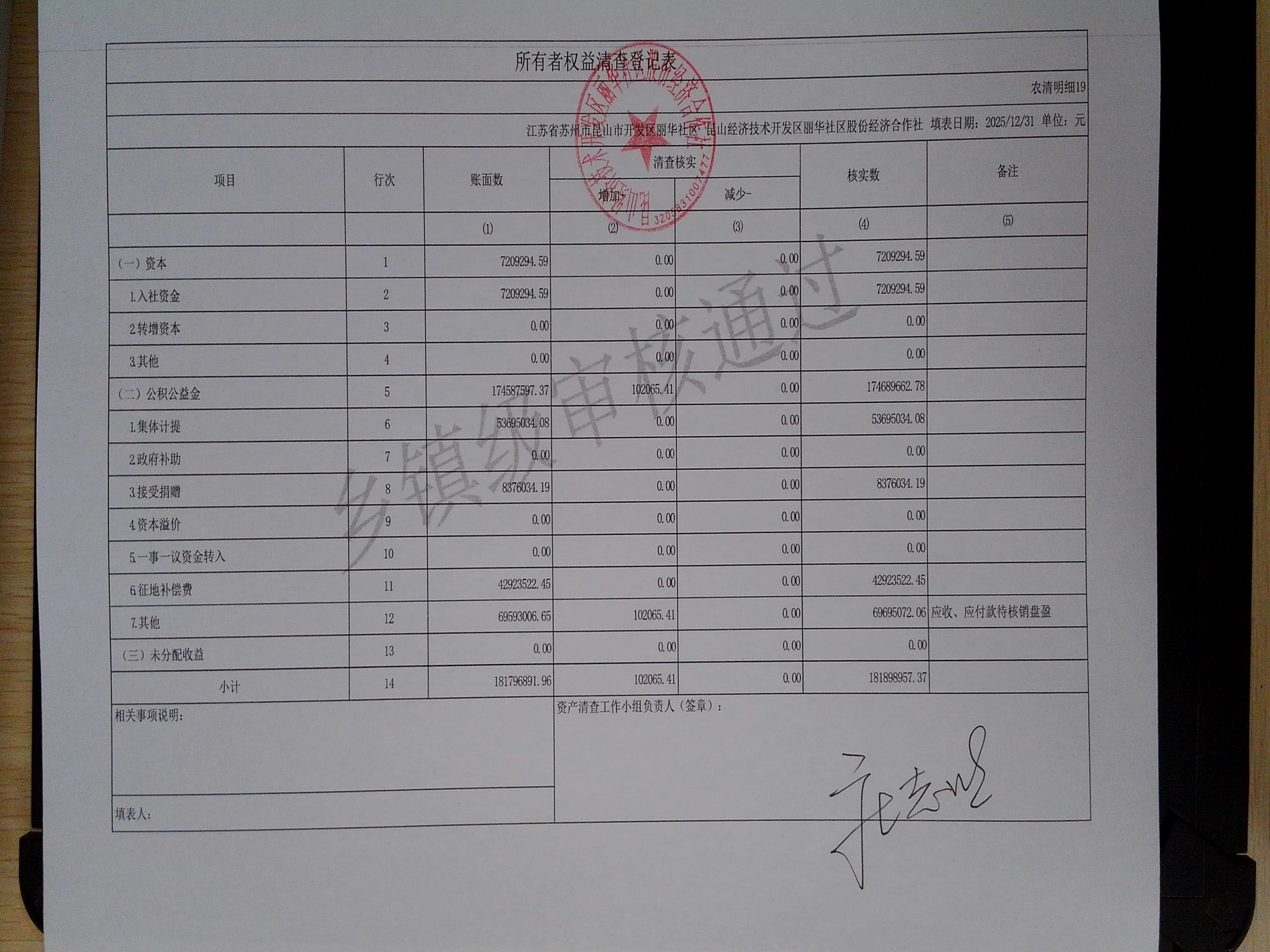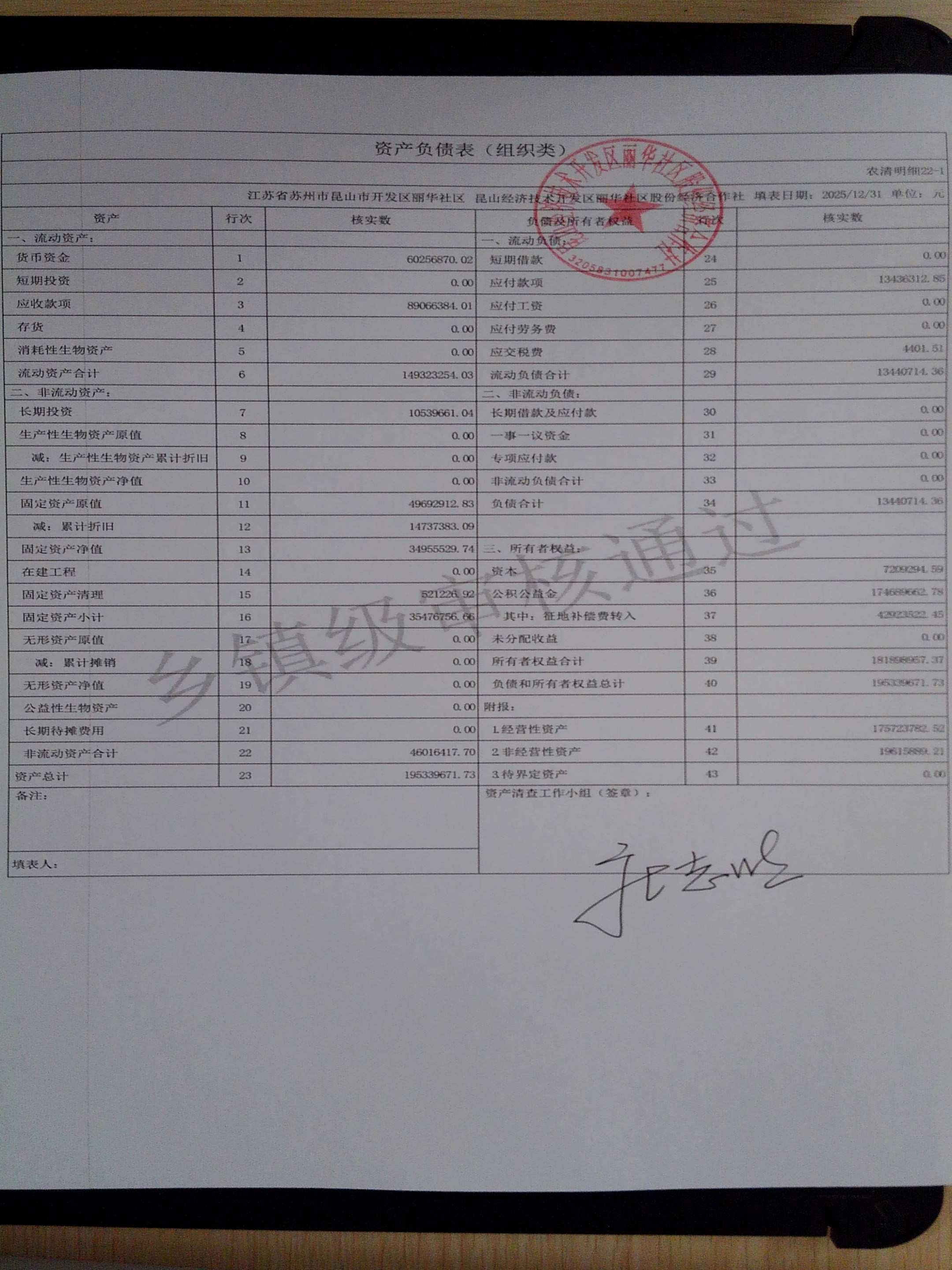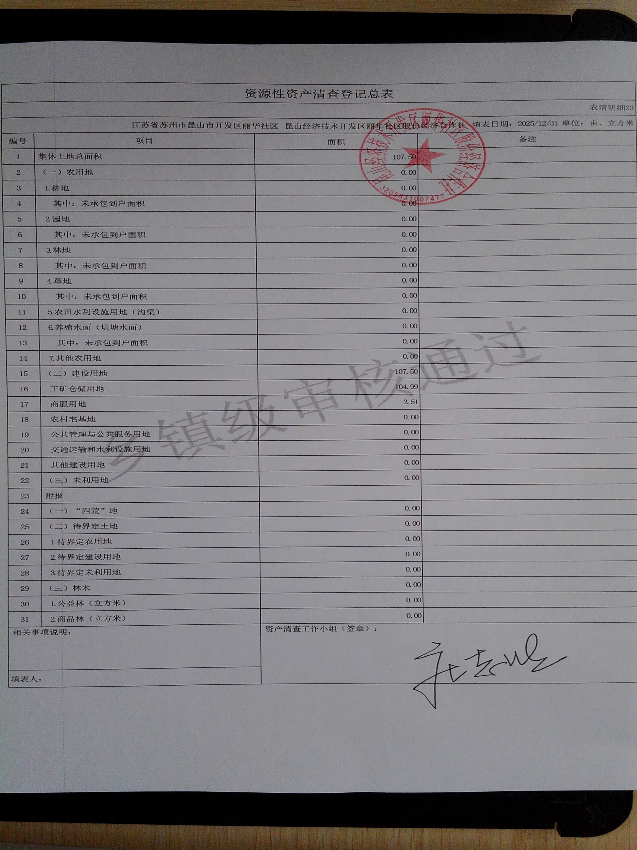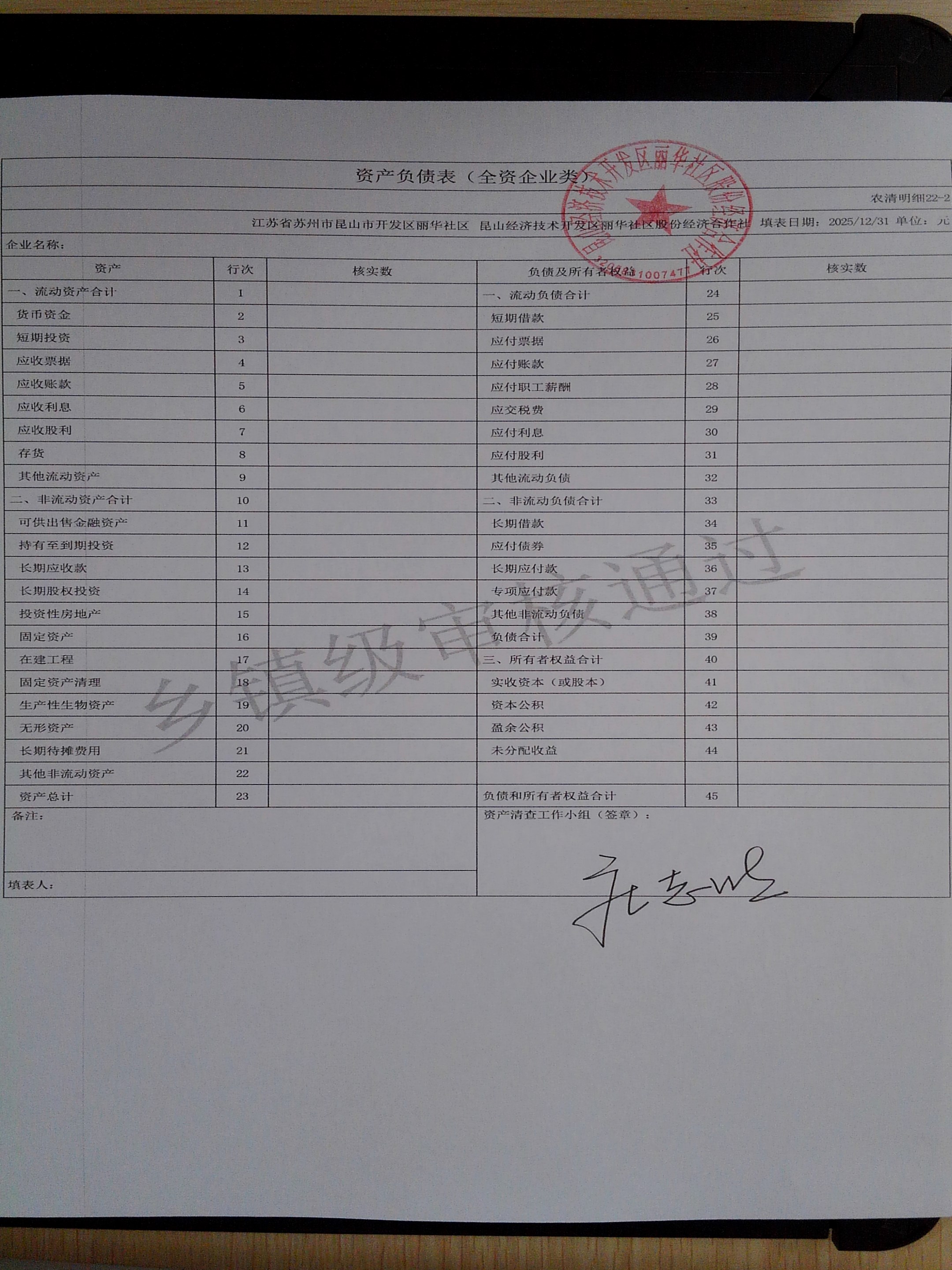 2025年度丽华社区股份经济合作社清产核资报告