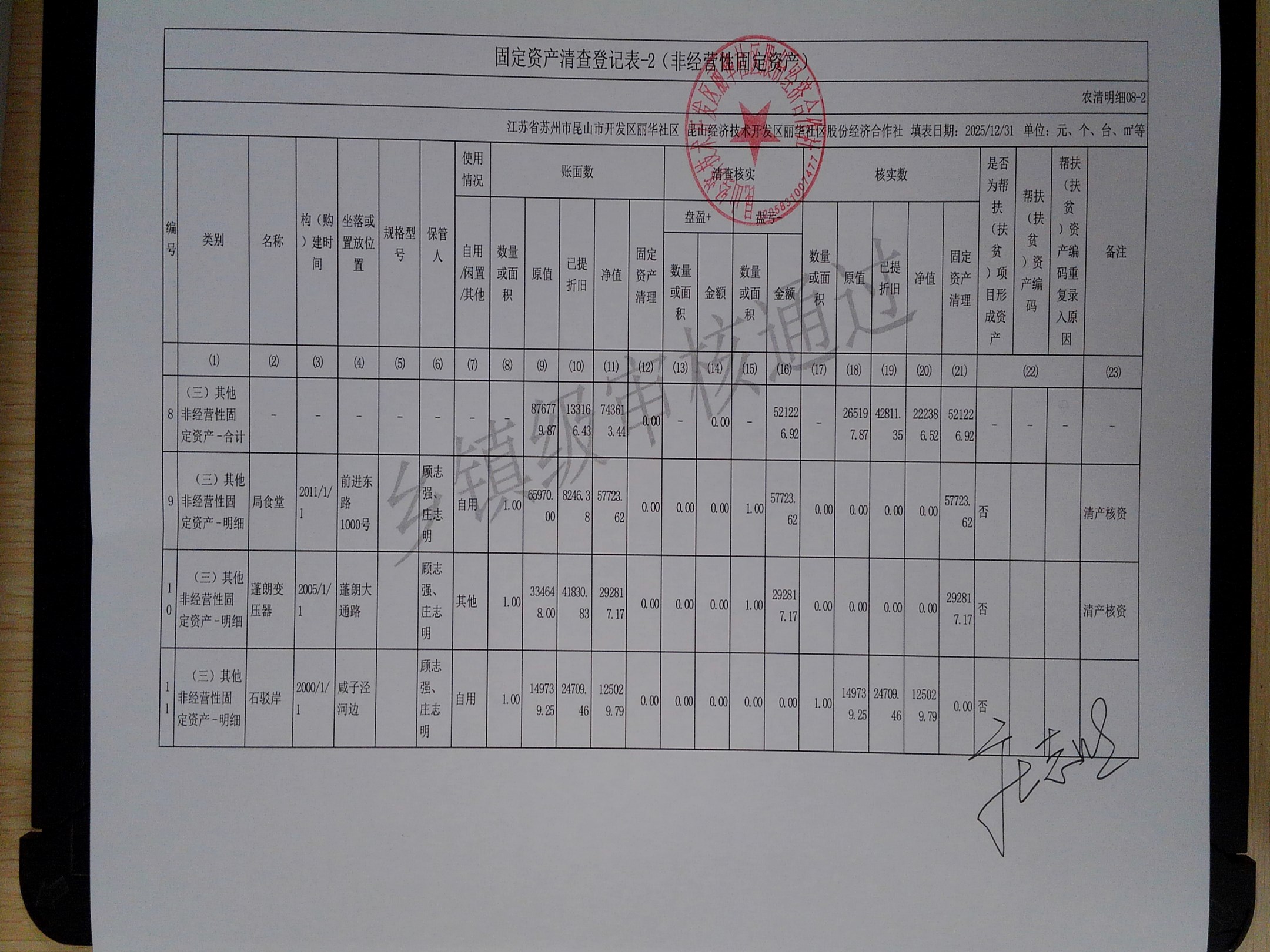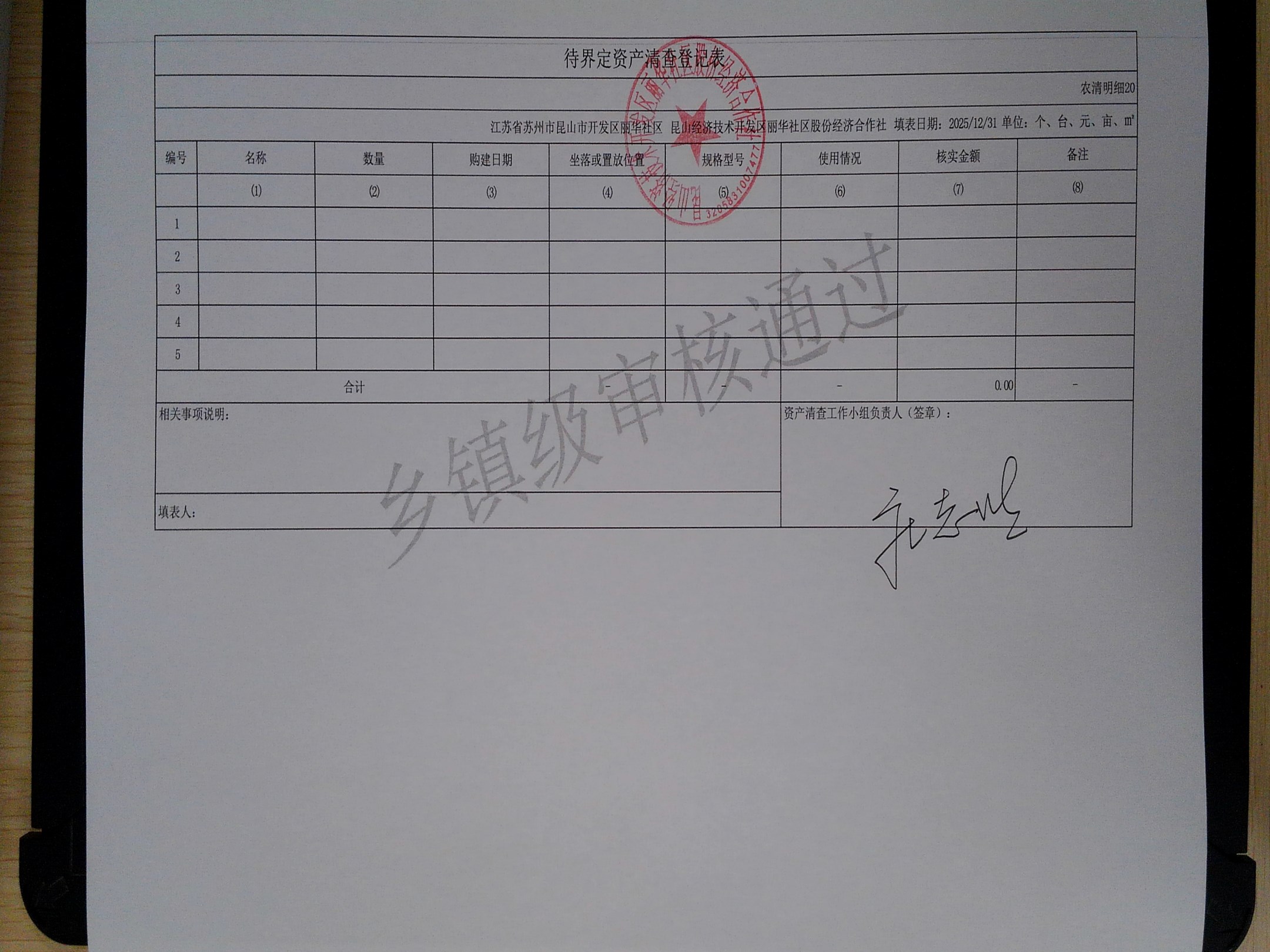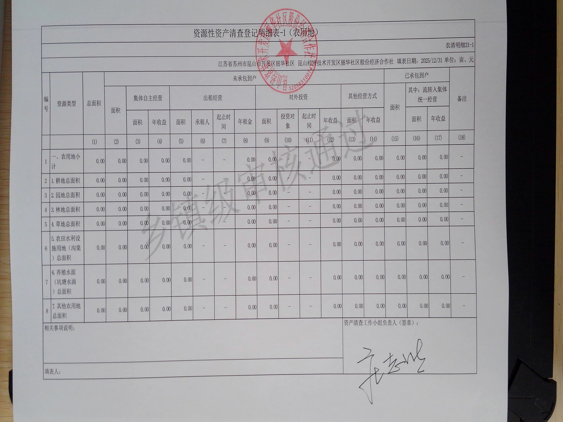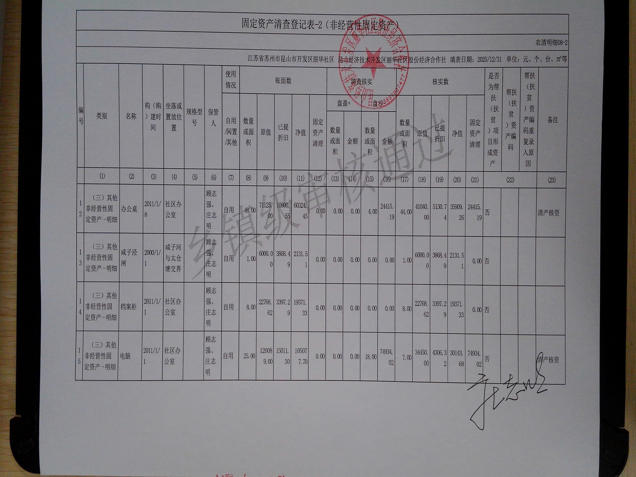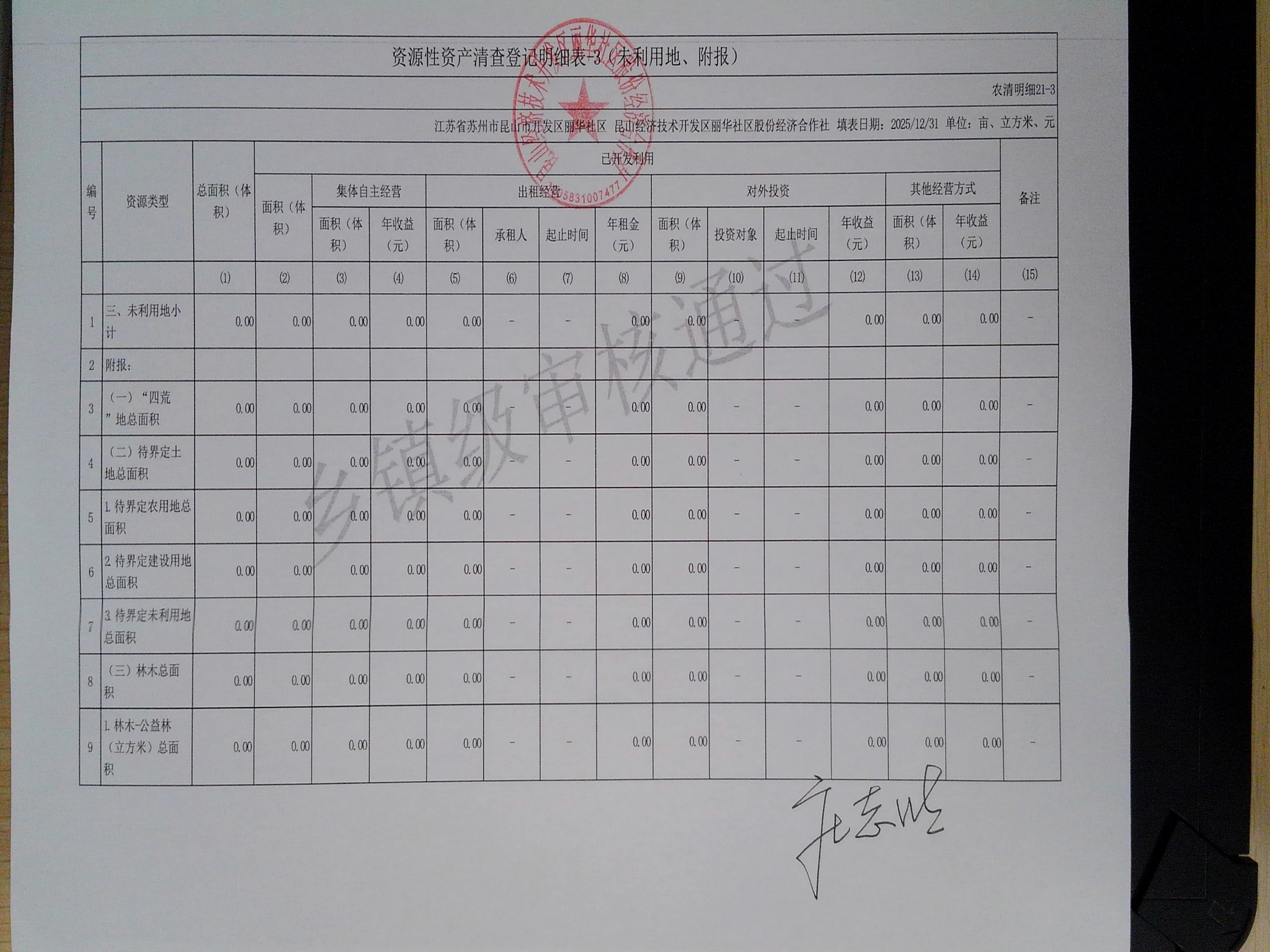 2025年度丽华社区股份经济合作社清产核资报告
