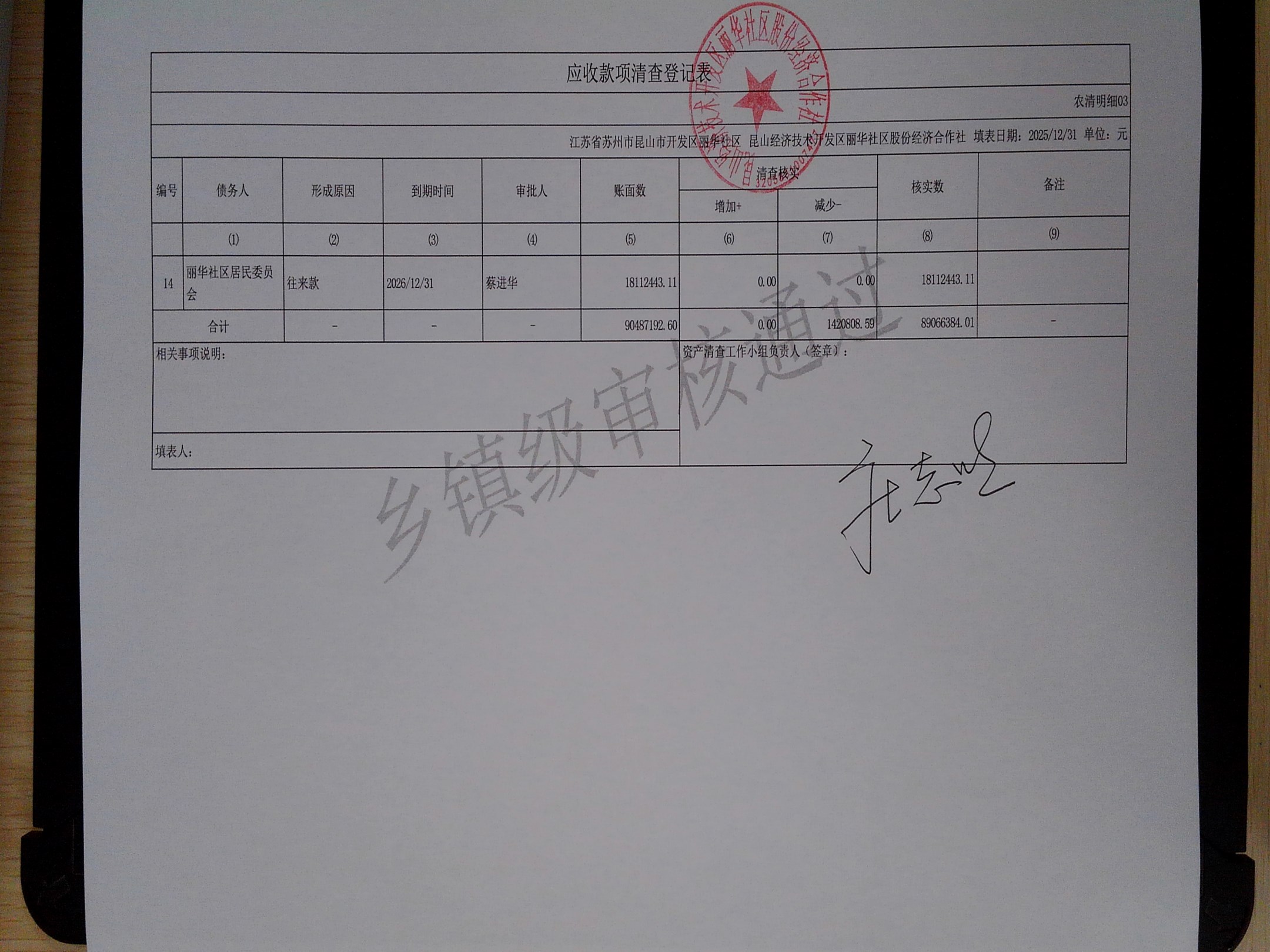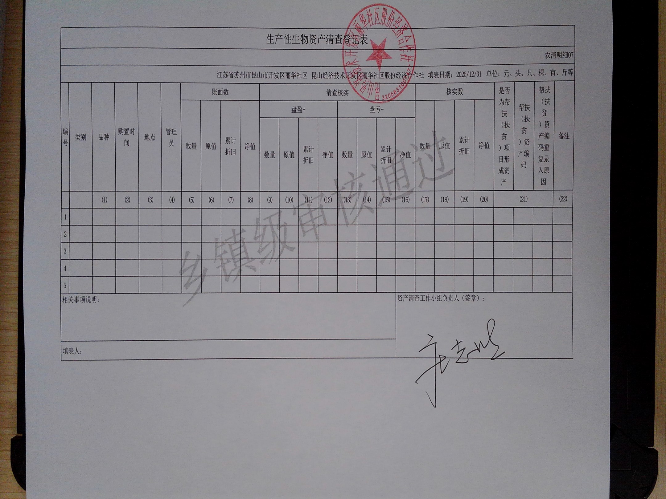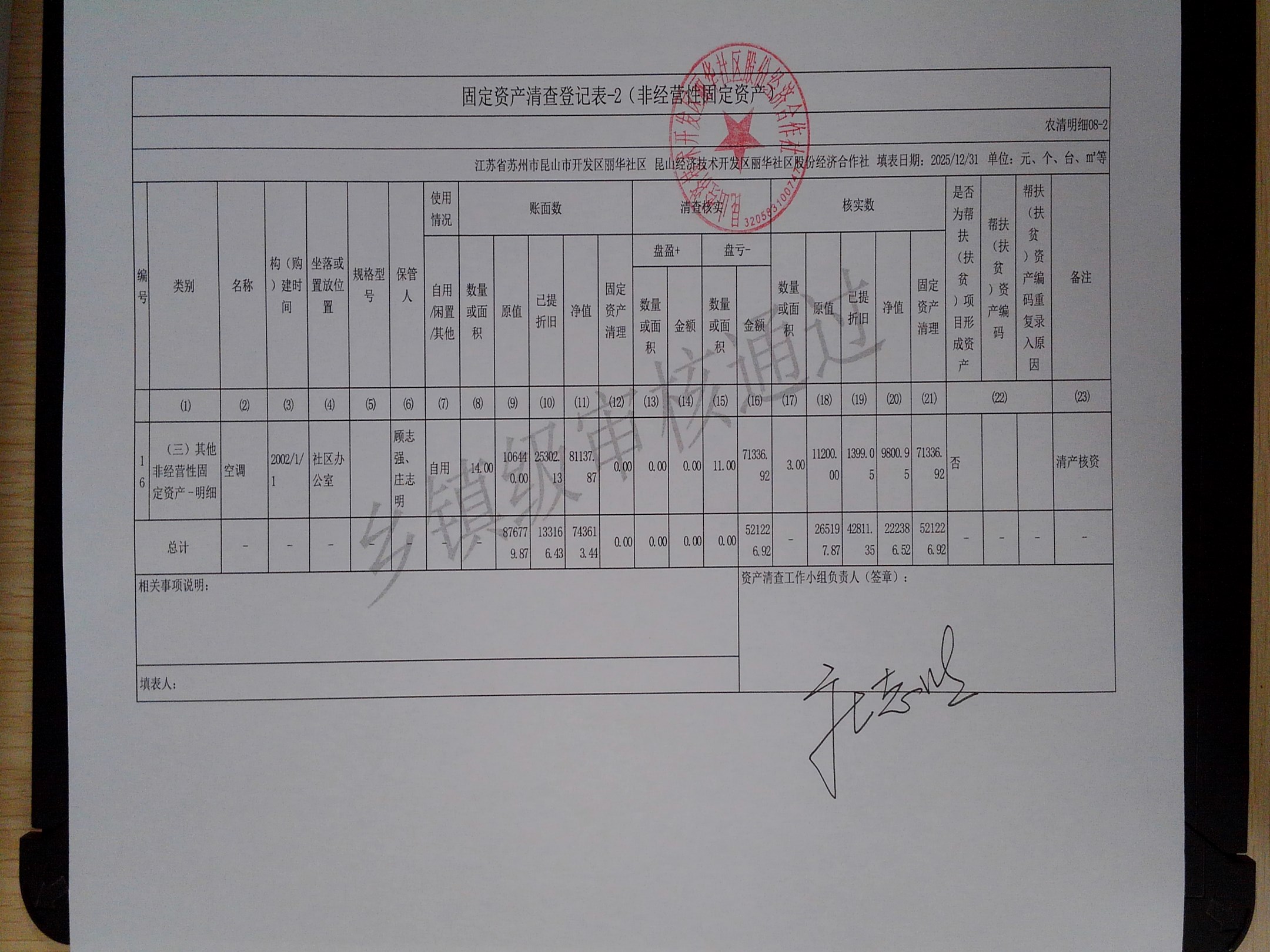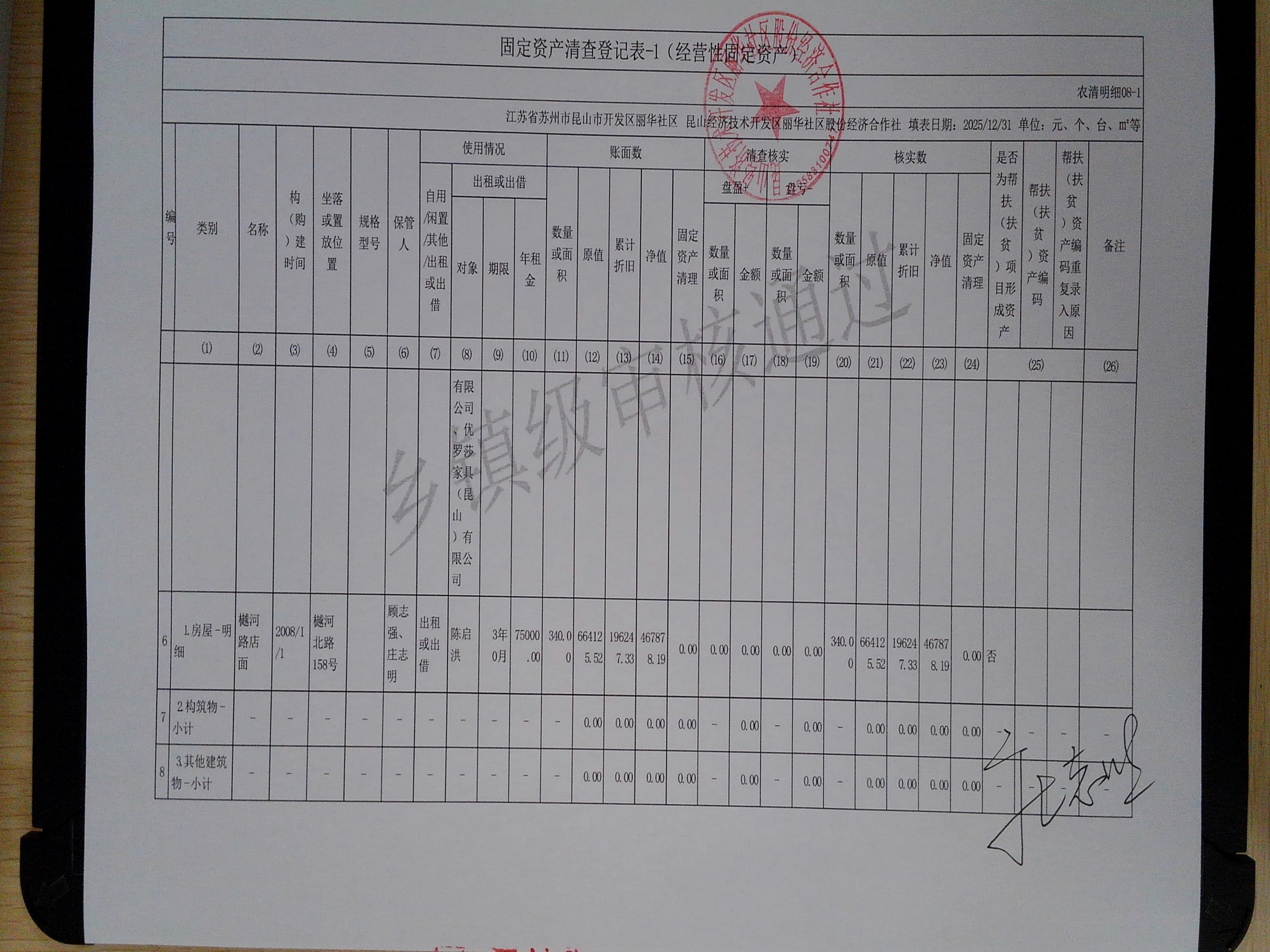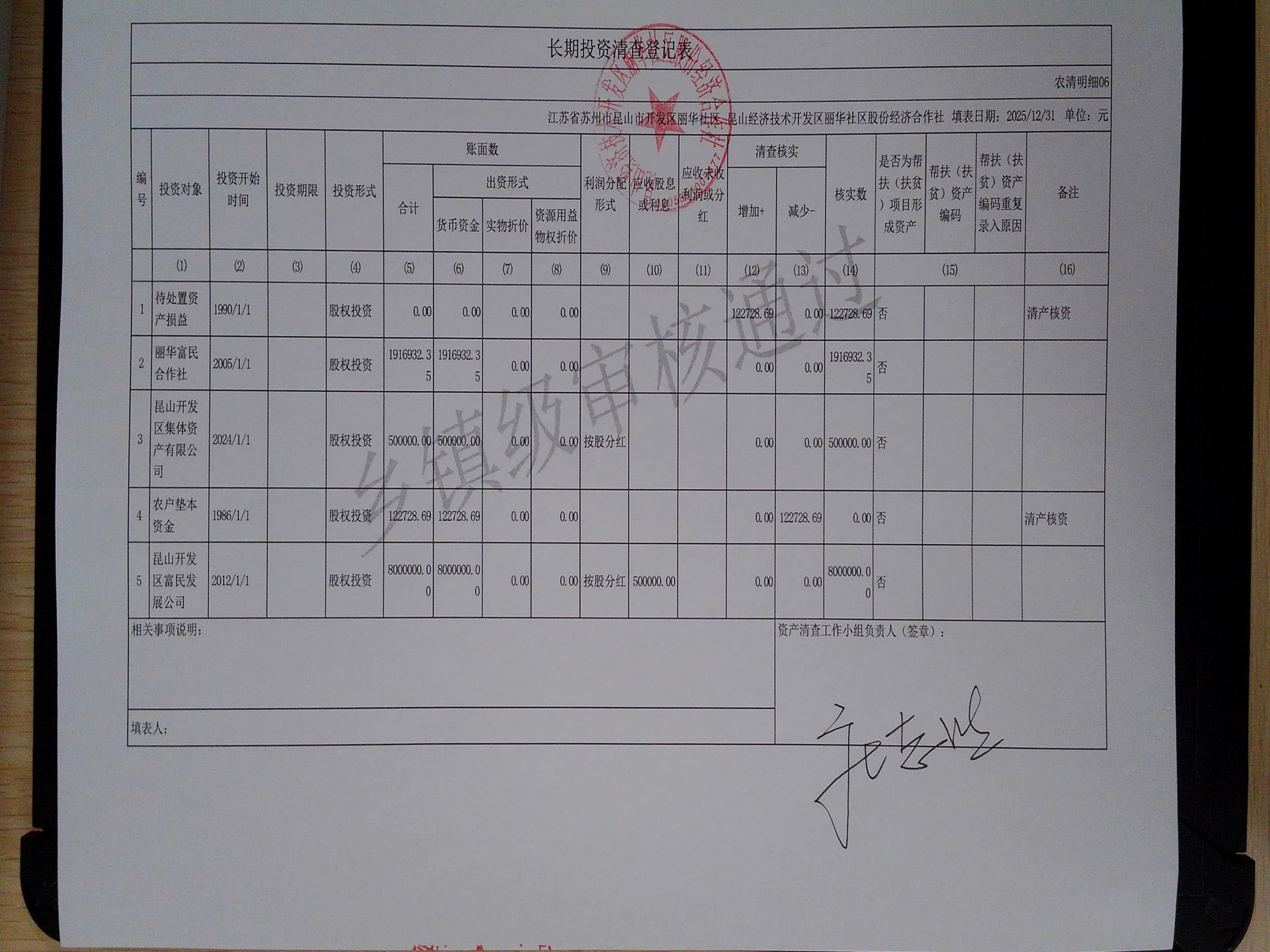2025年度丽华社区股份经济合作社清产核资报告