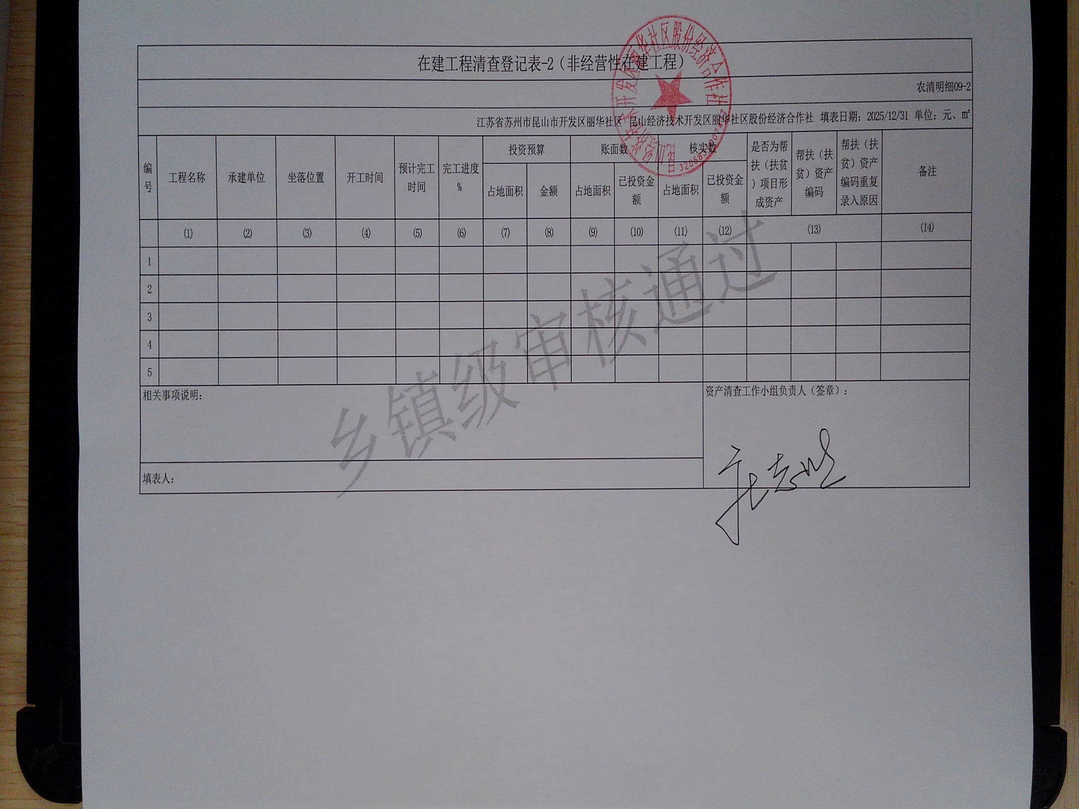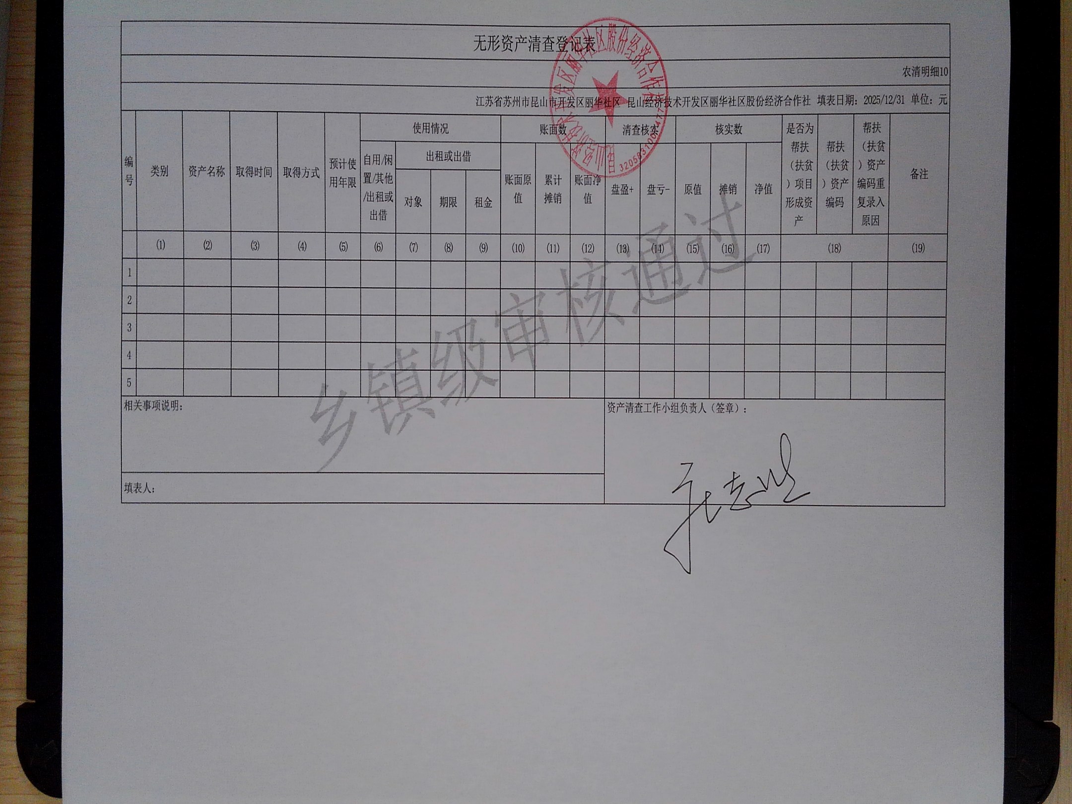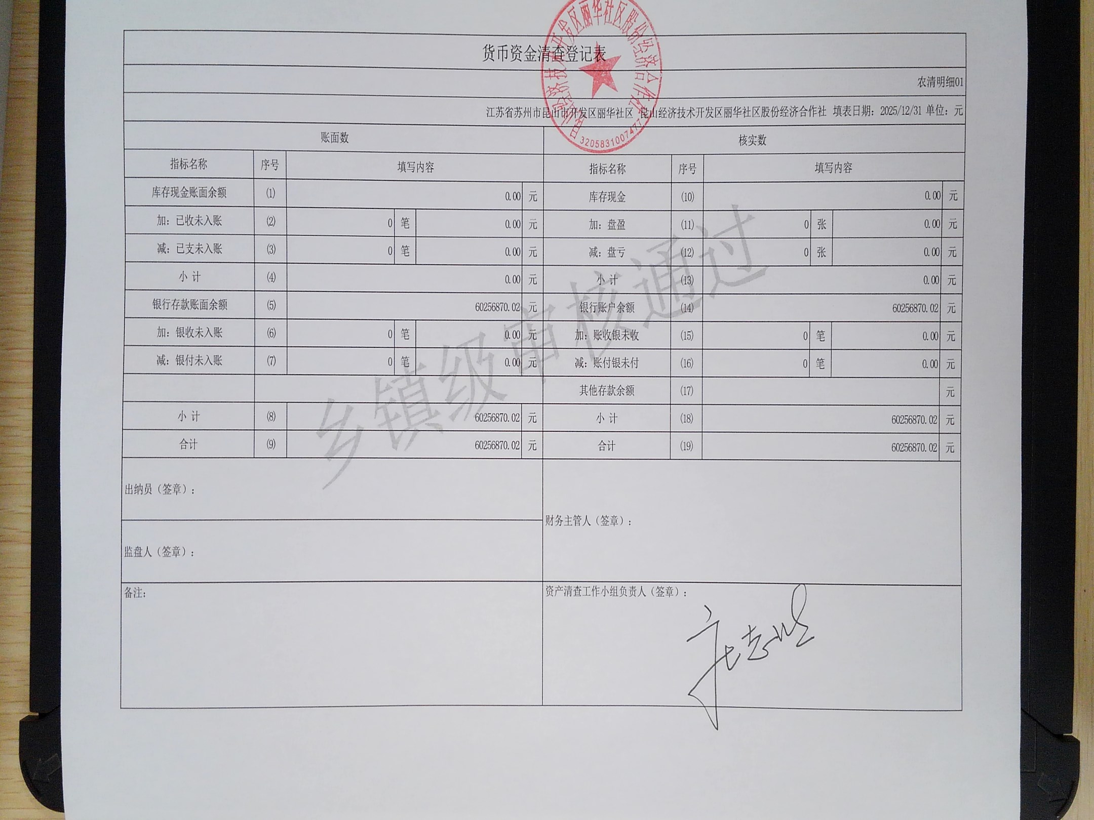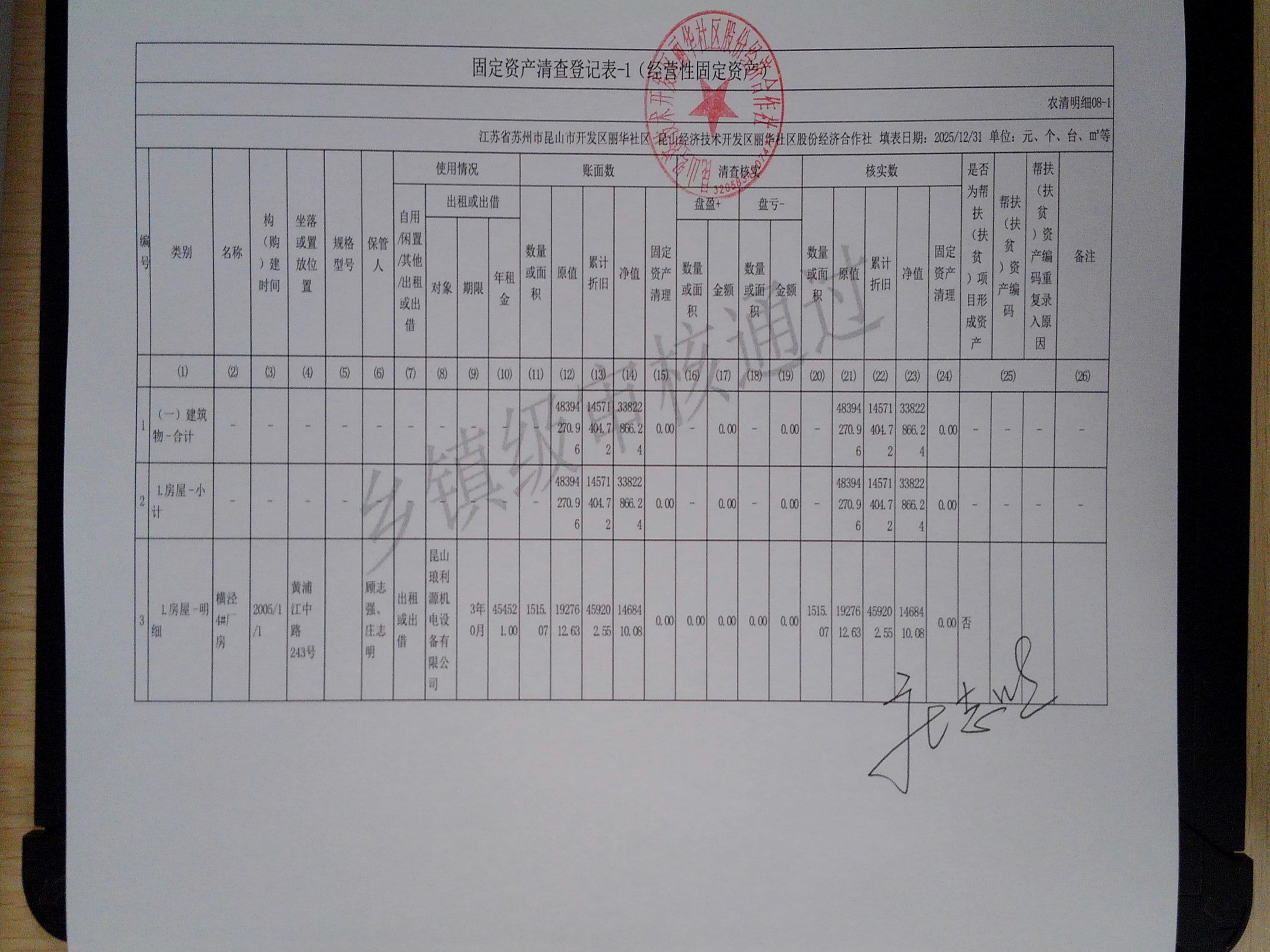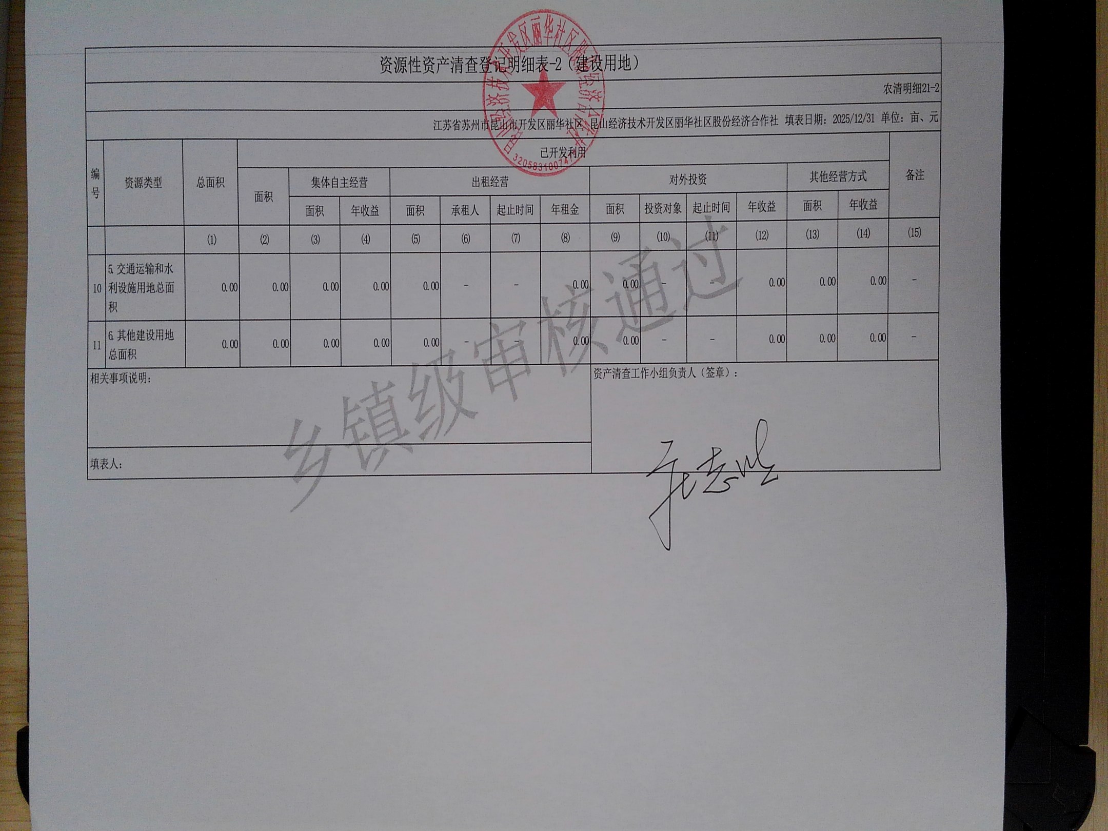 2025年度丽华社区股份经济合作社清产核资报告