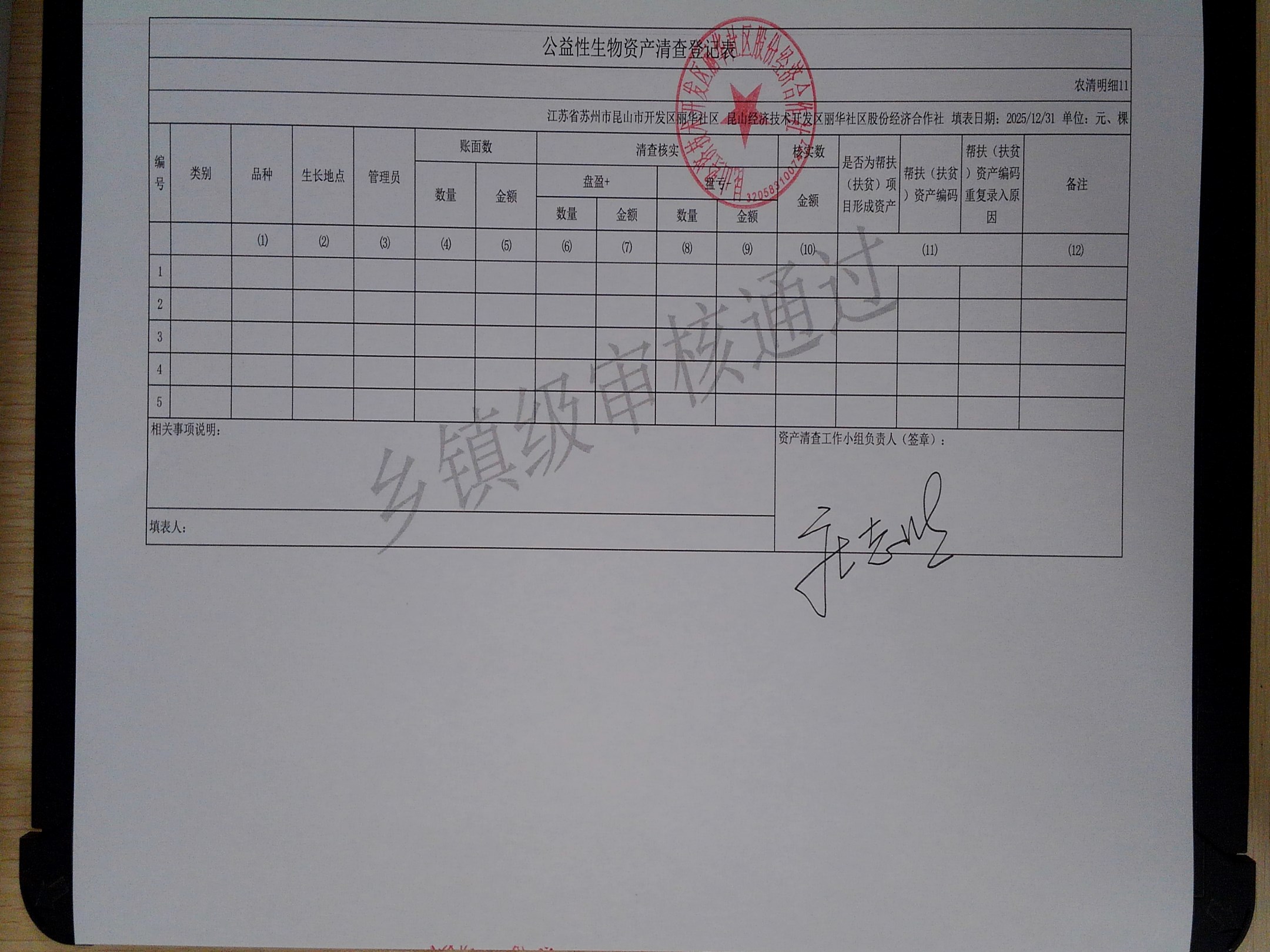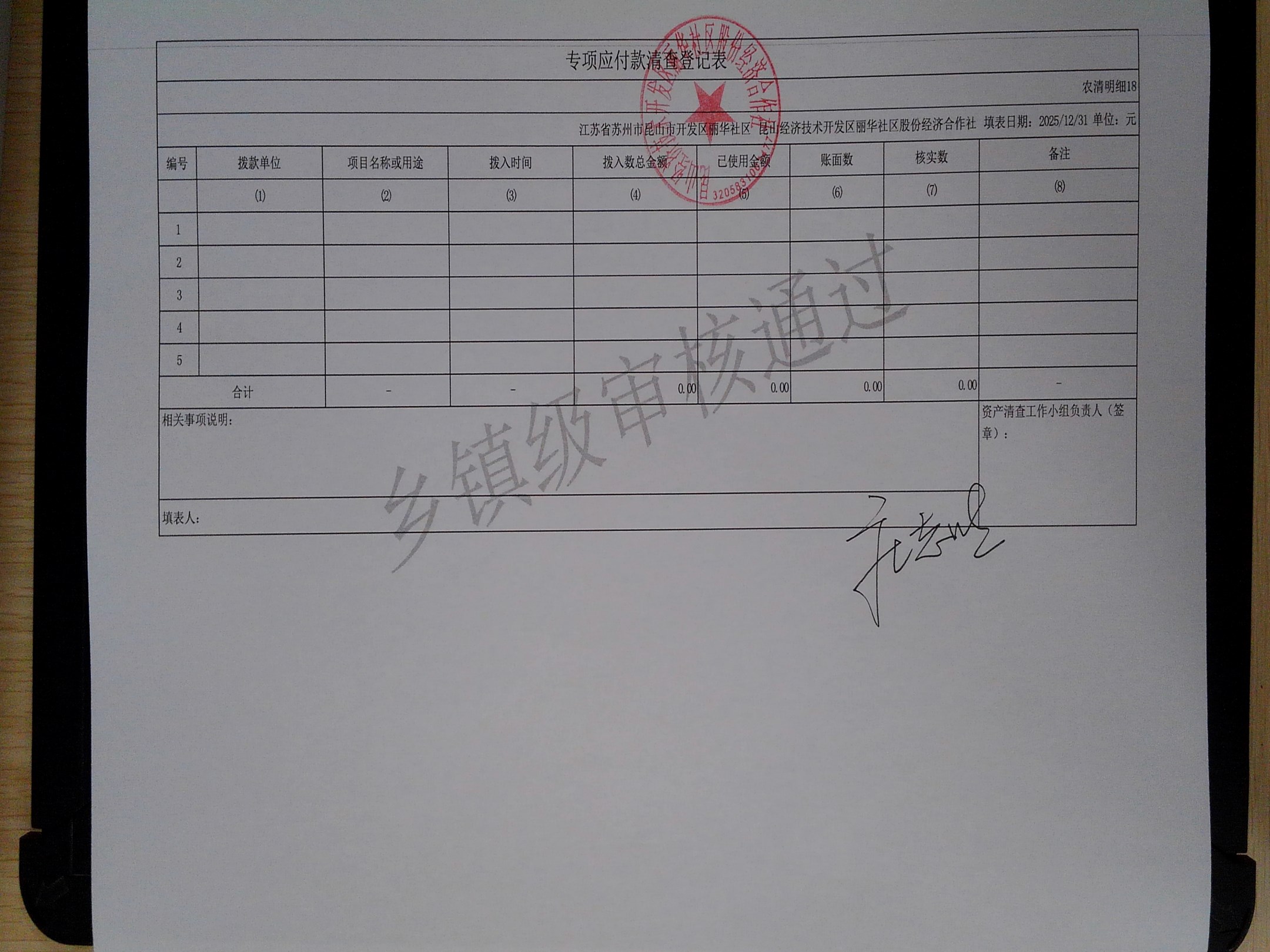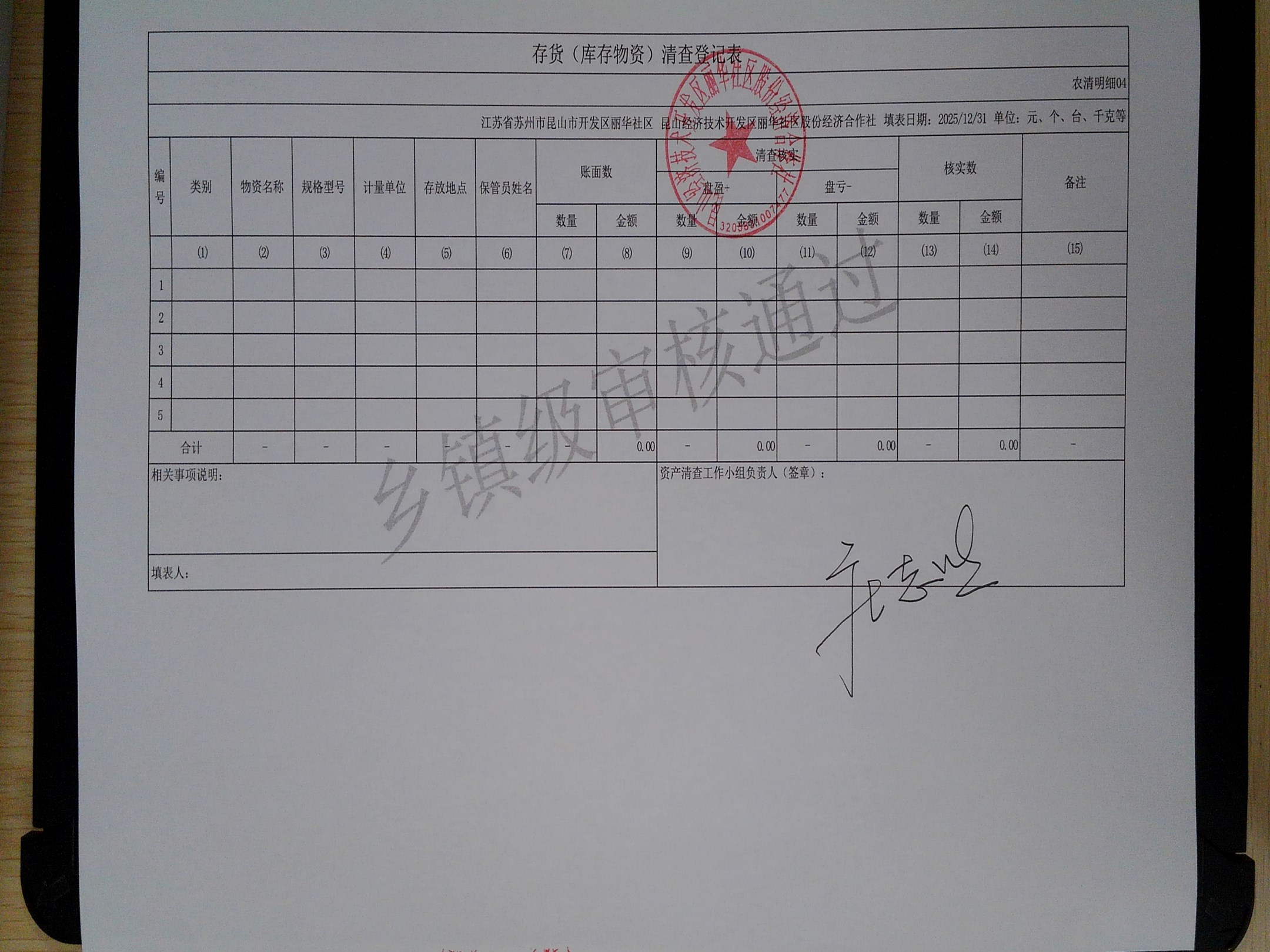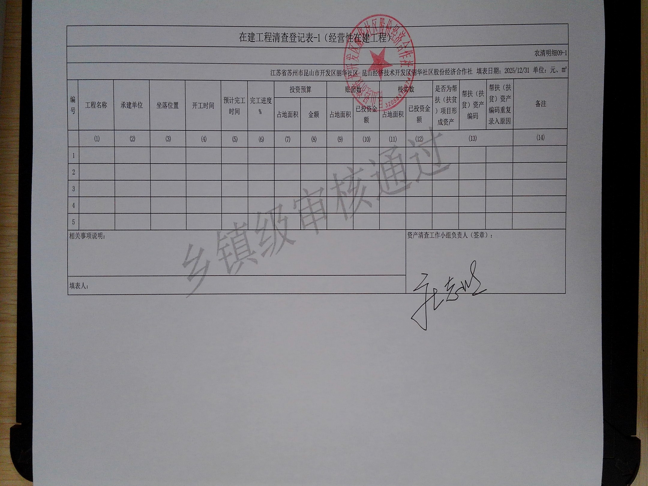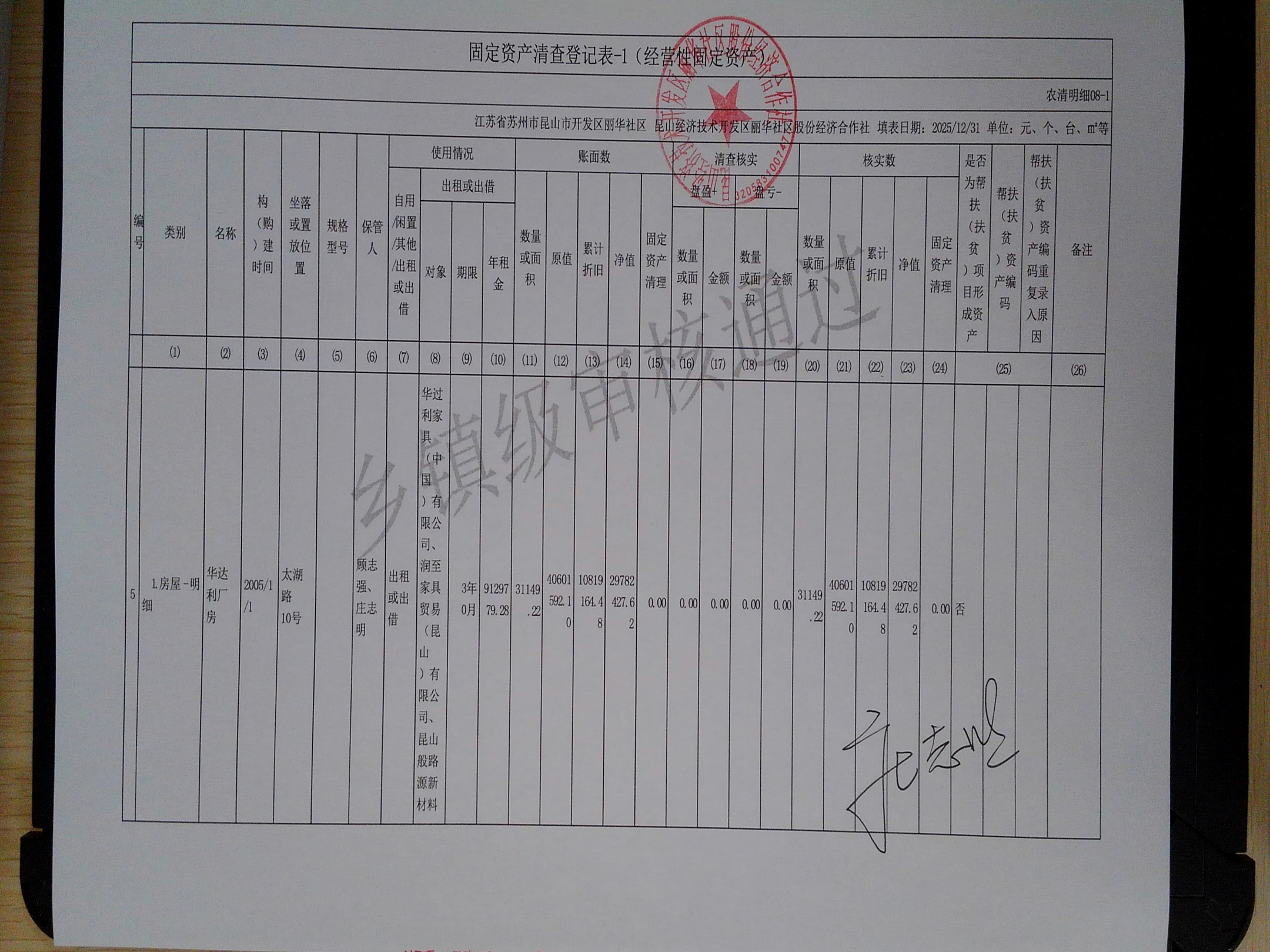 2025年度丽华社区股份经济合作社清产核资报告