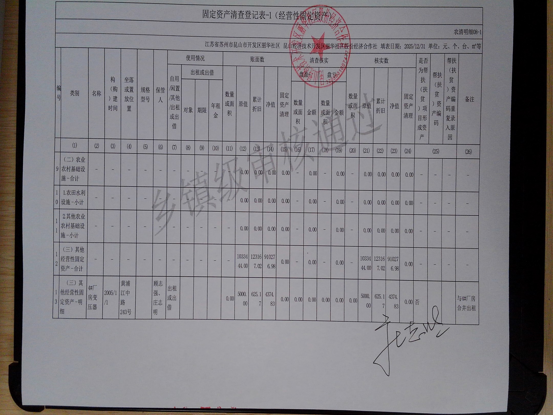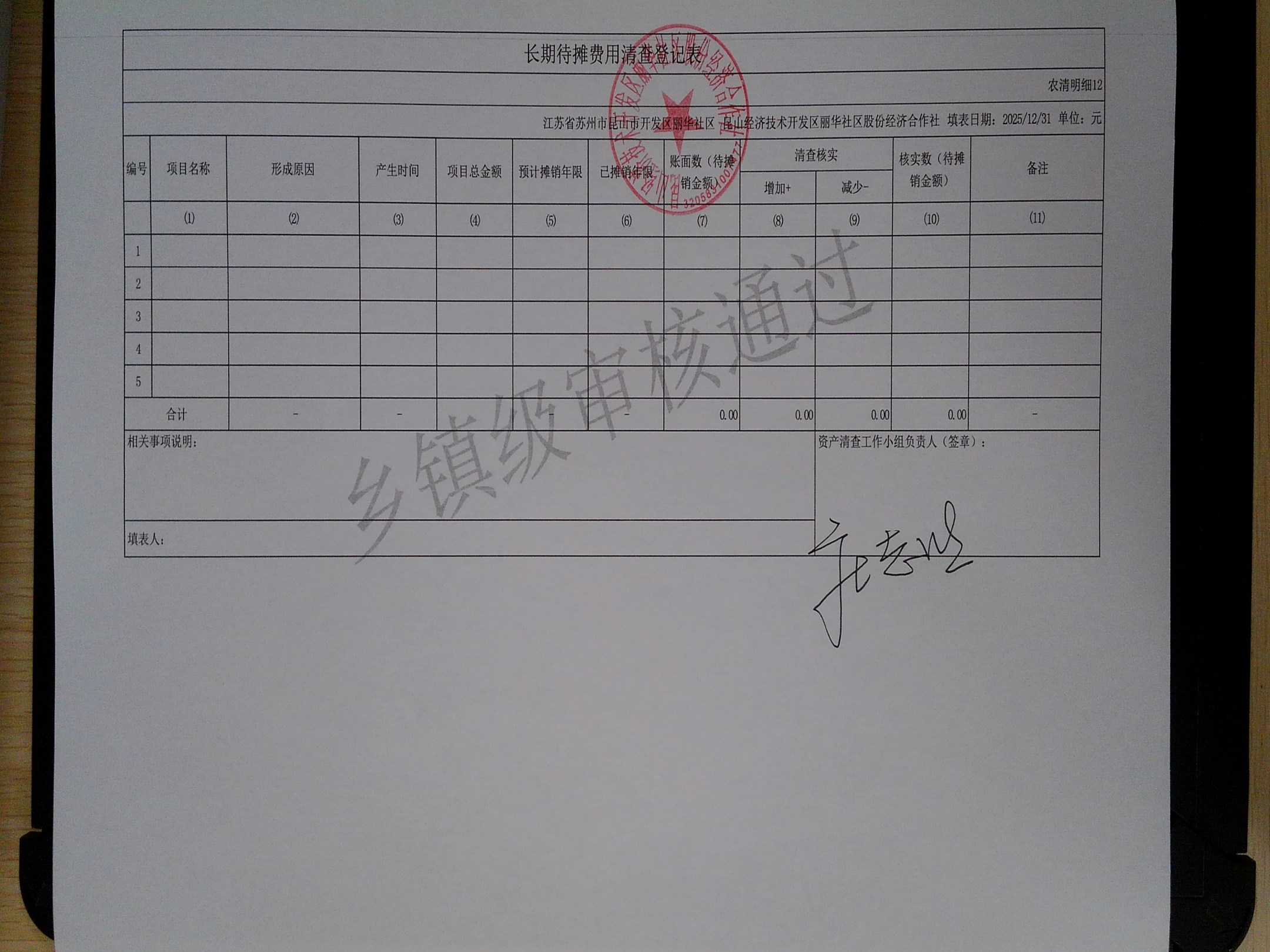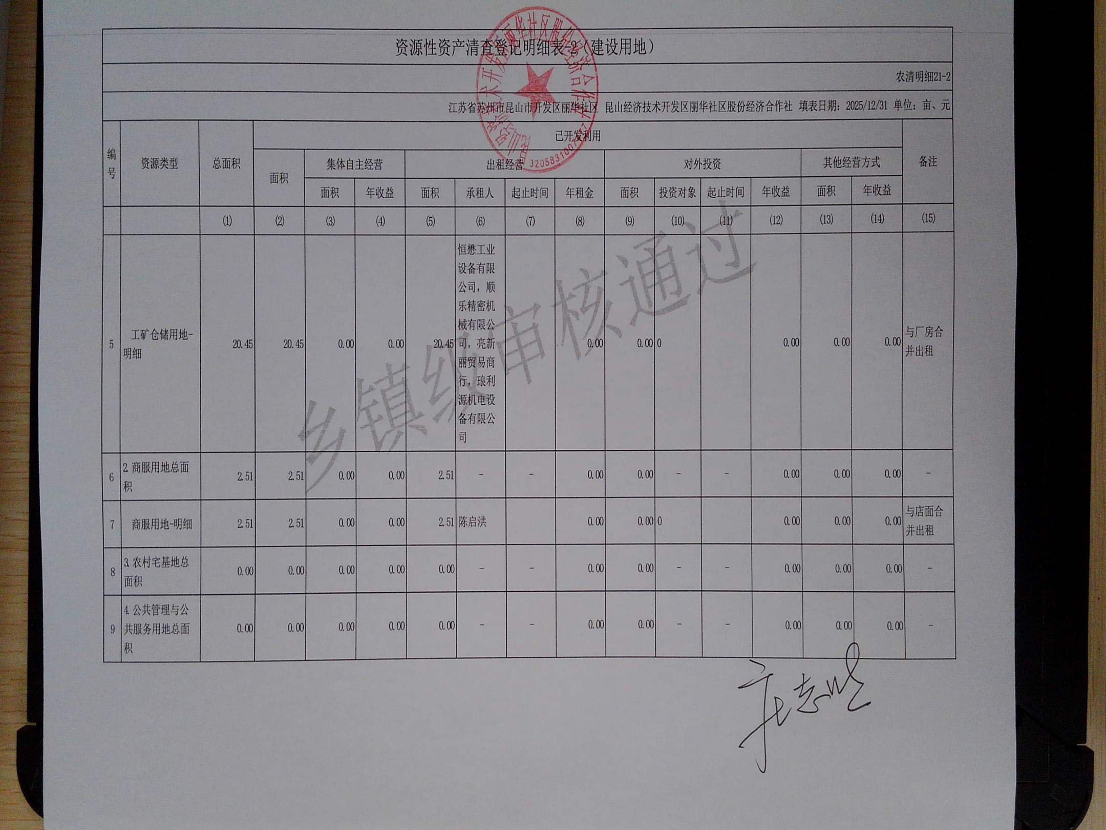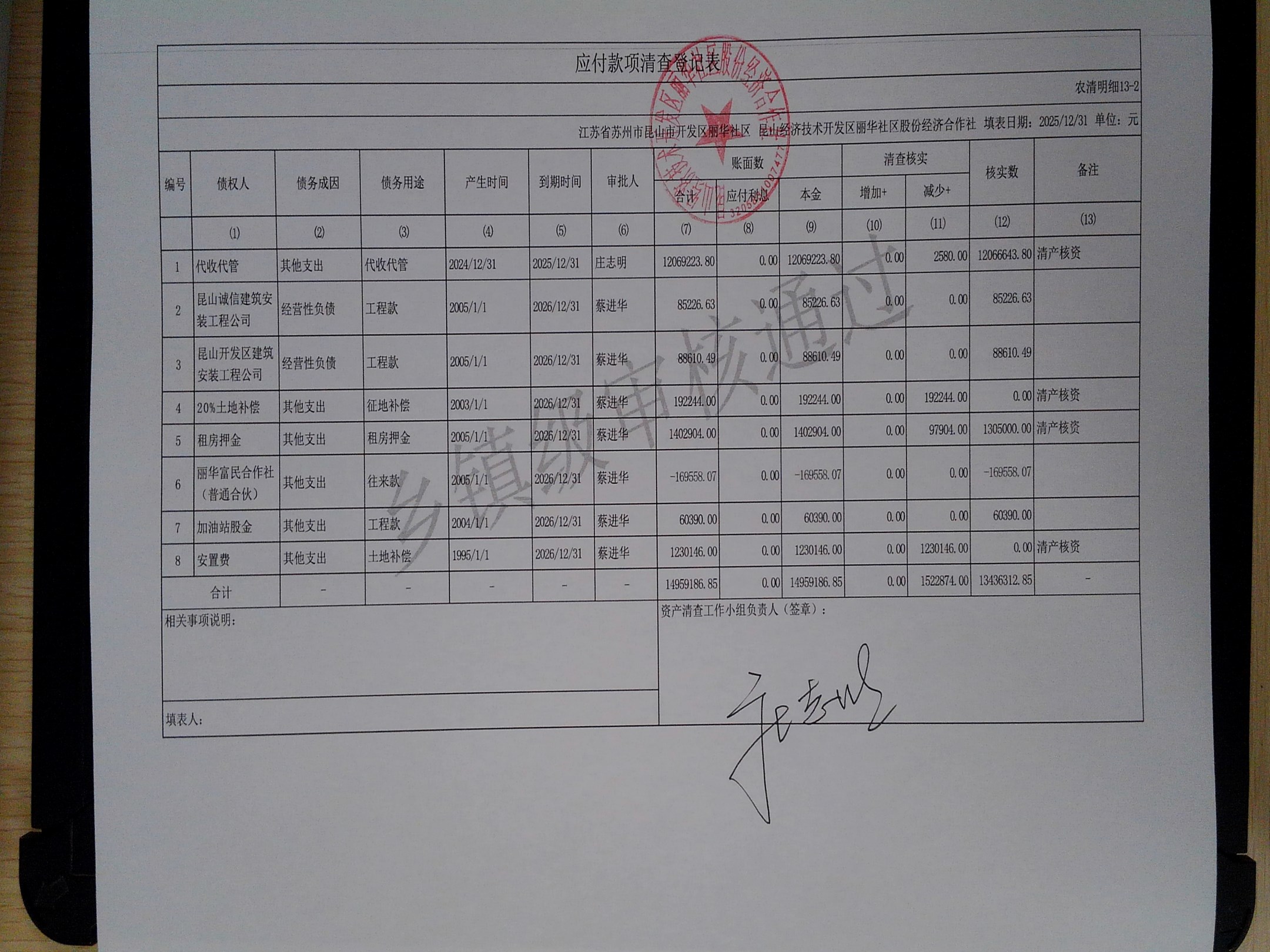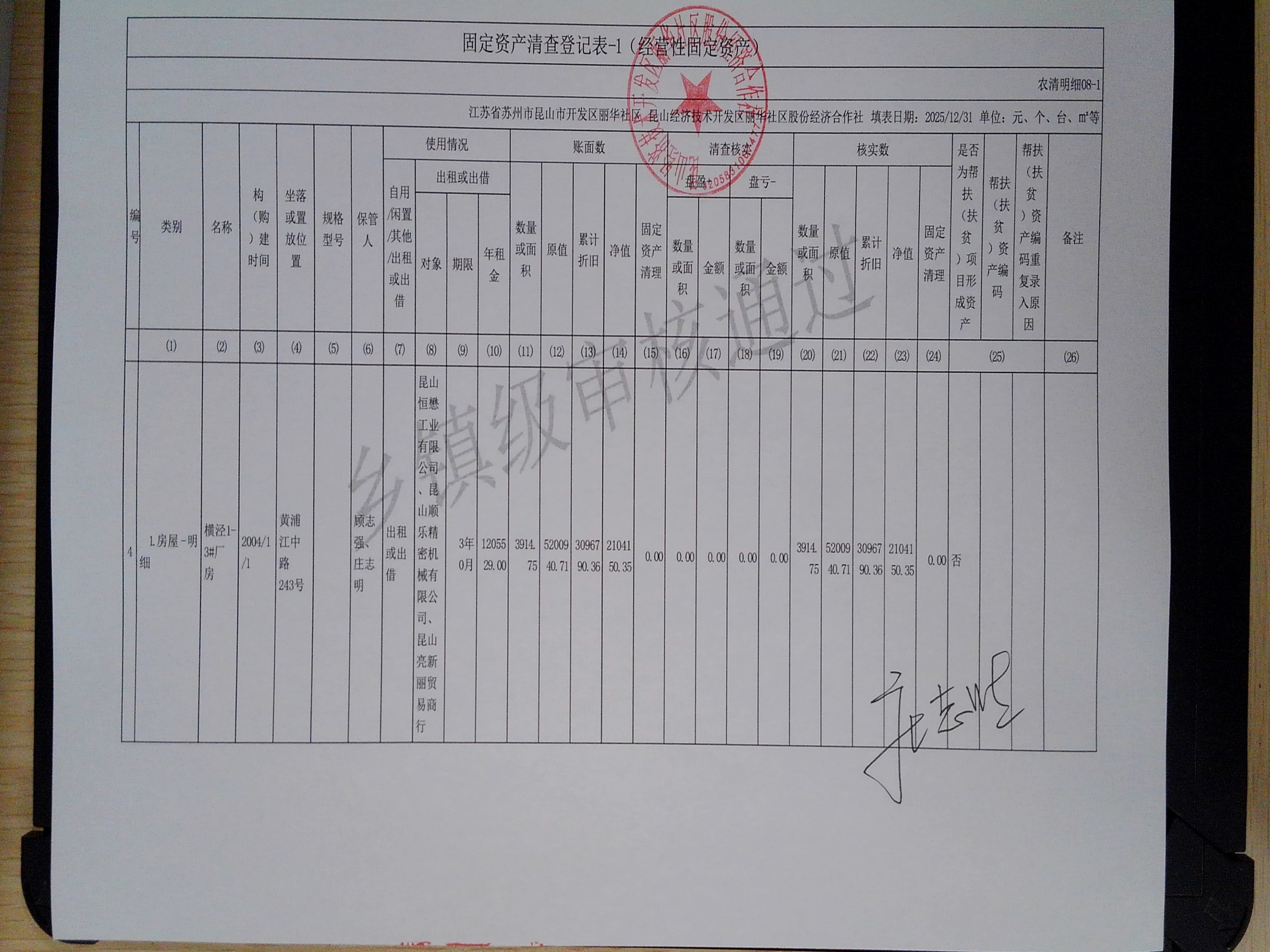 2025年度丽华社区股份经济合作社清产核资报告
