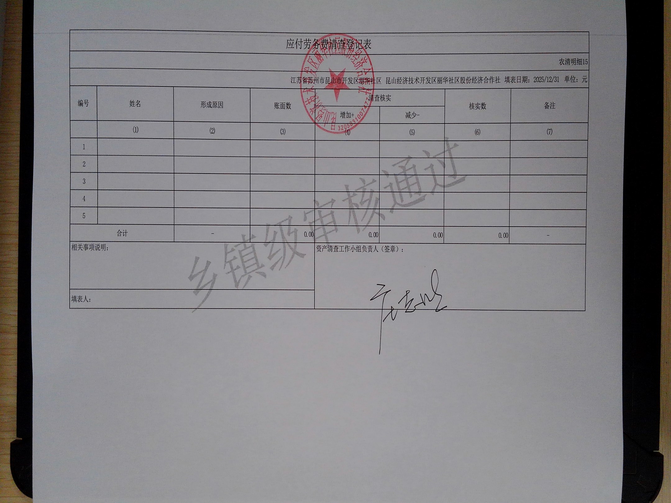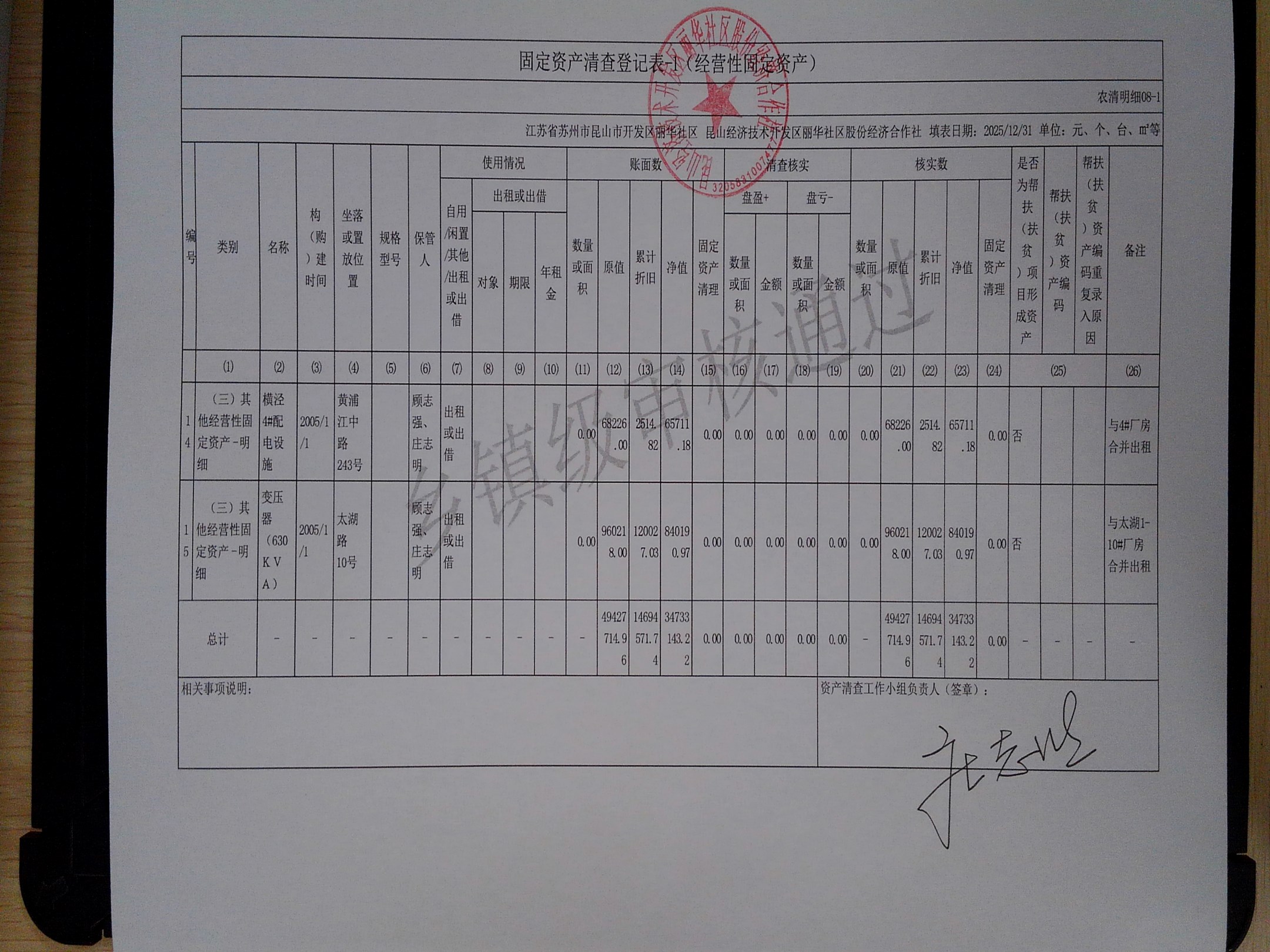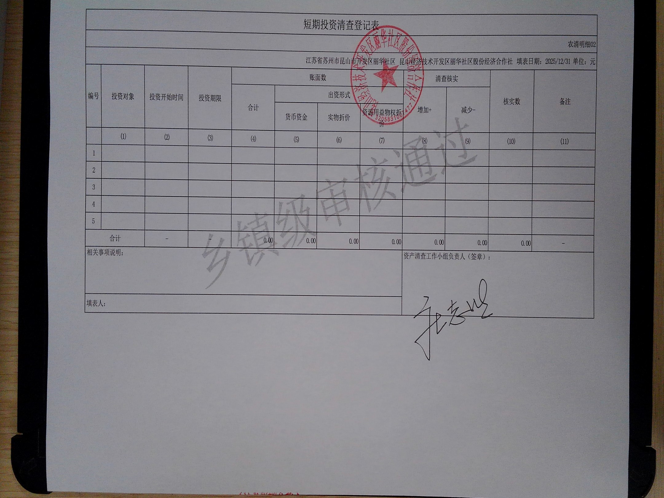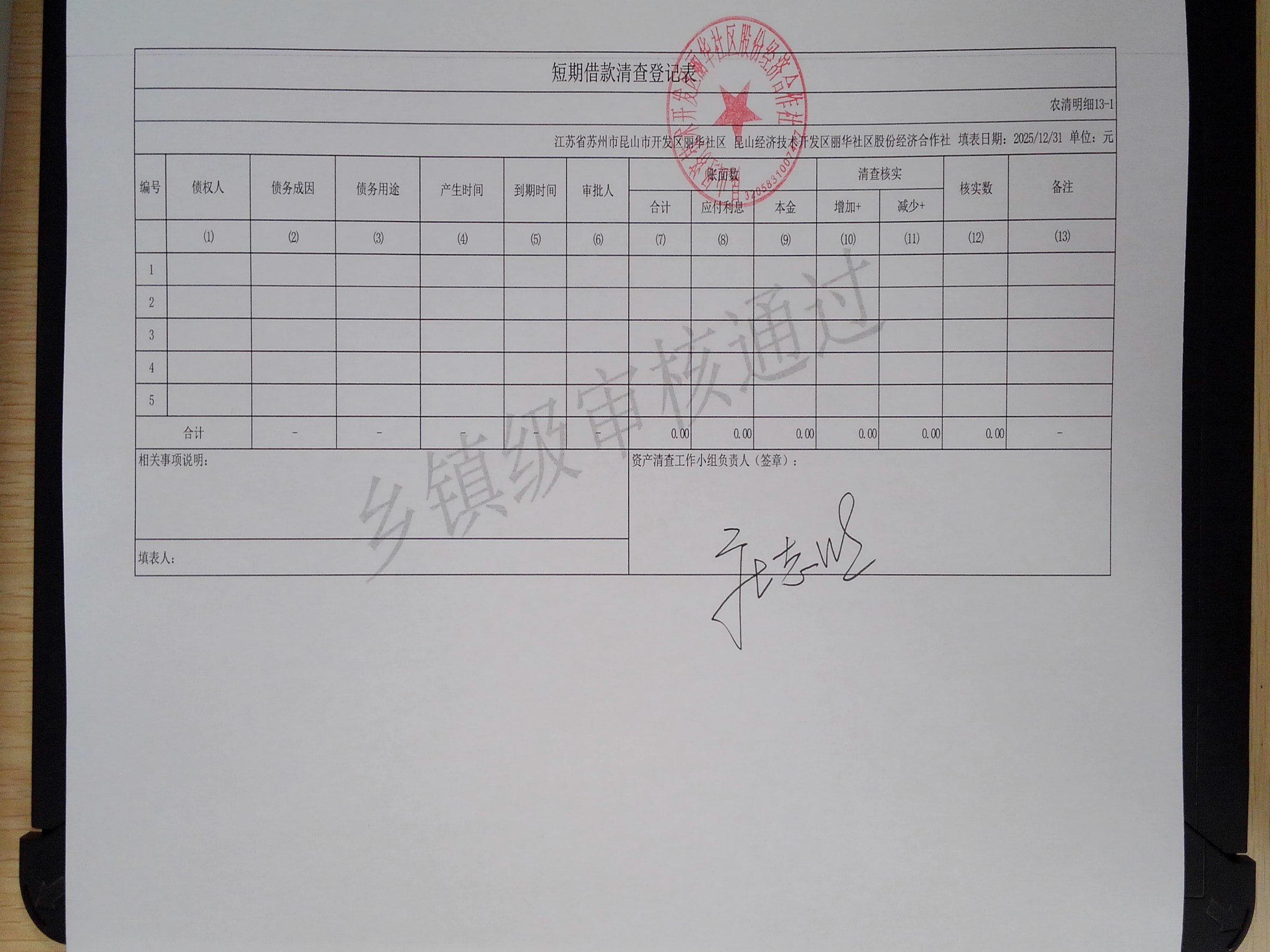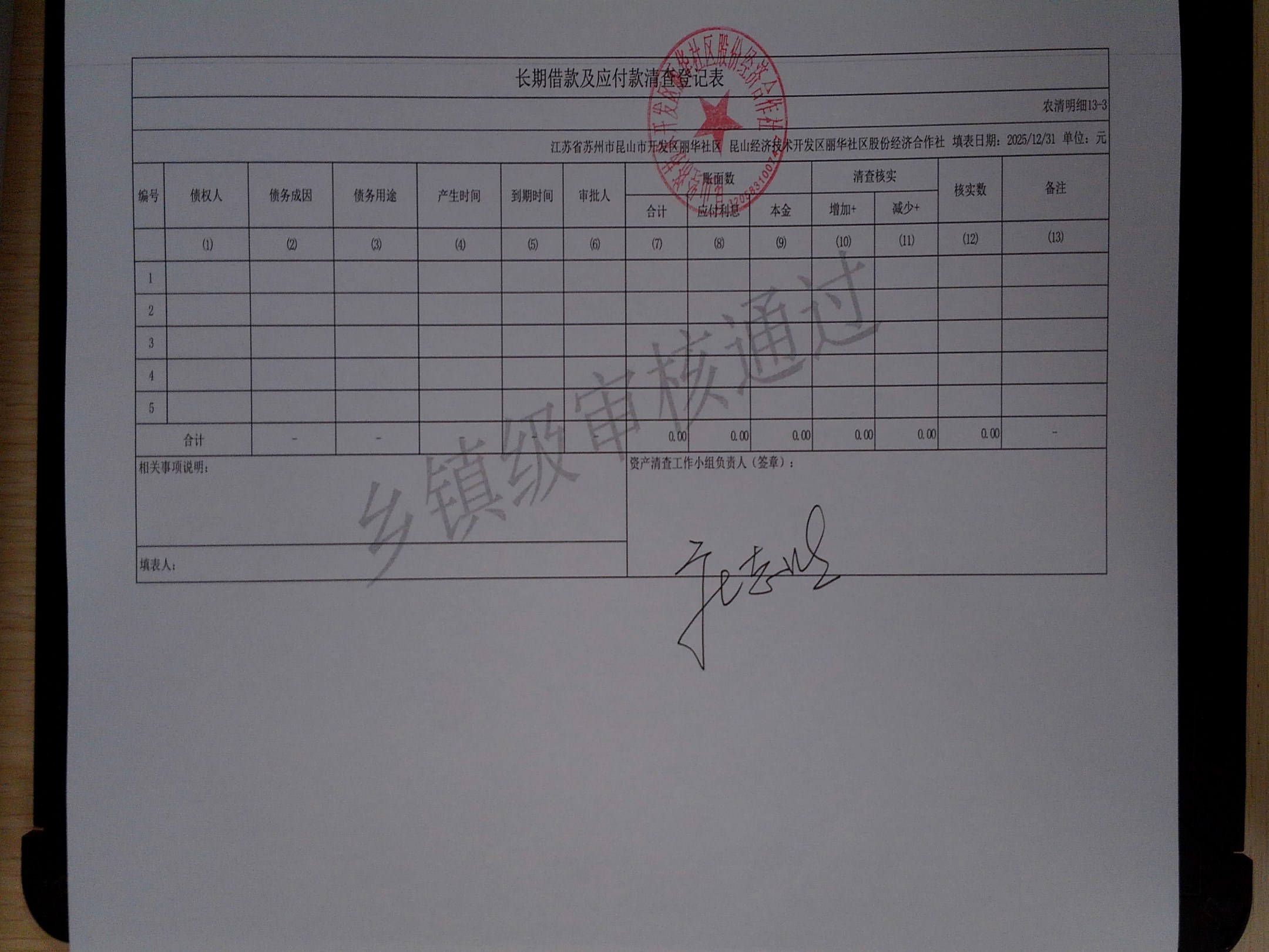 2025年度丽华社区股份经济合作社清产核资报告