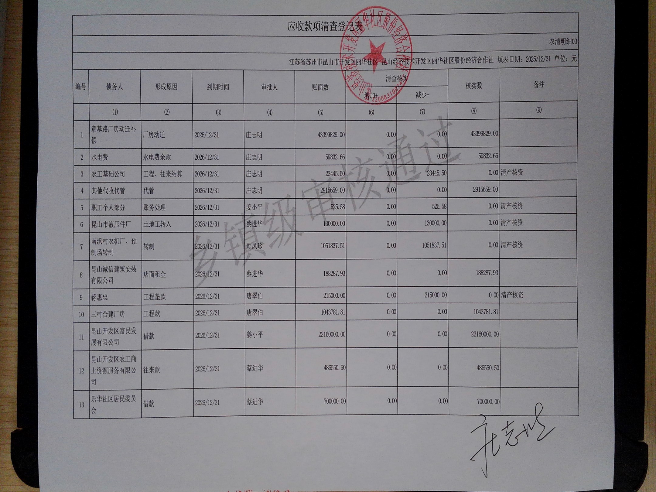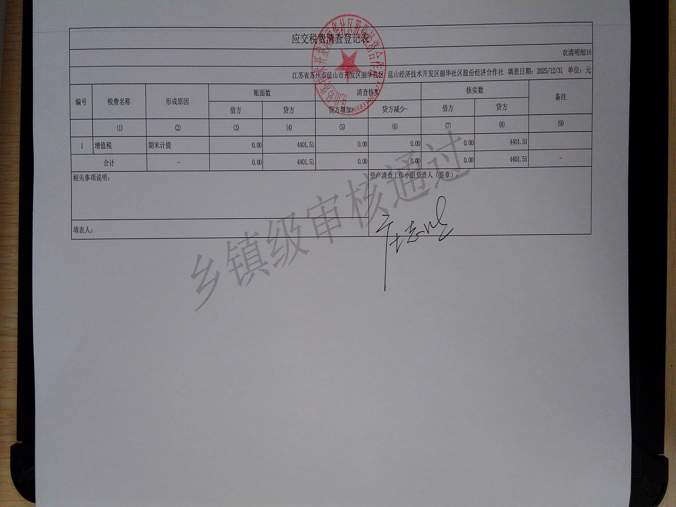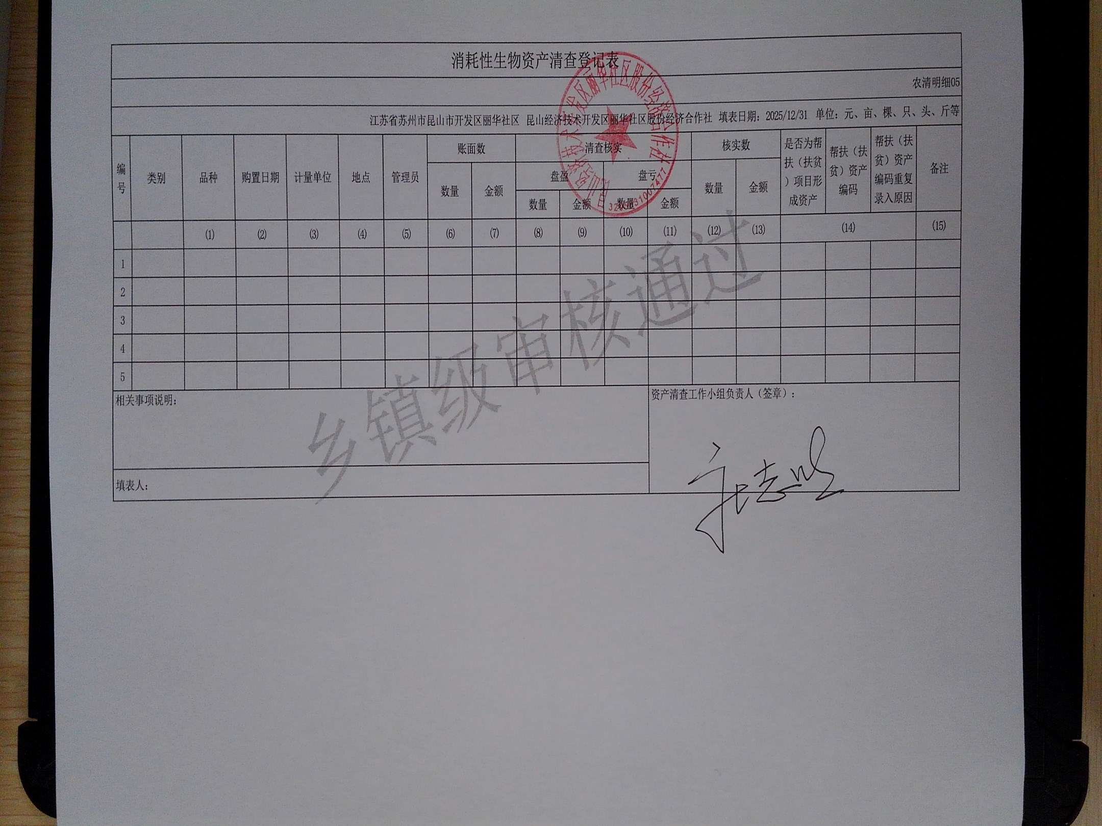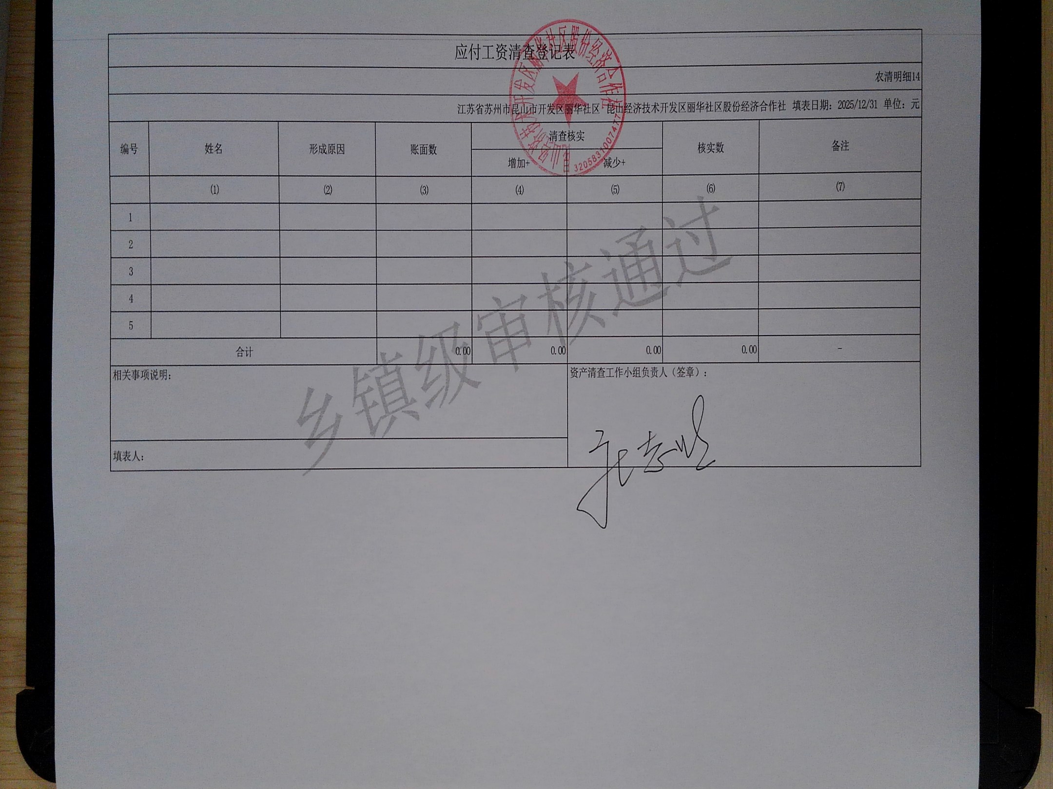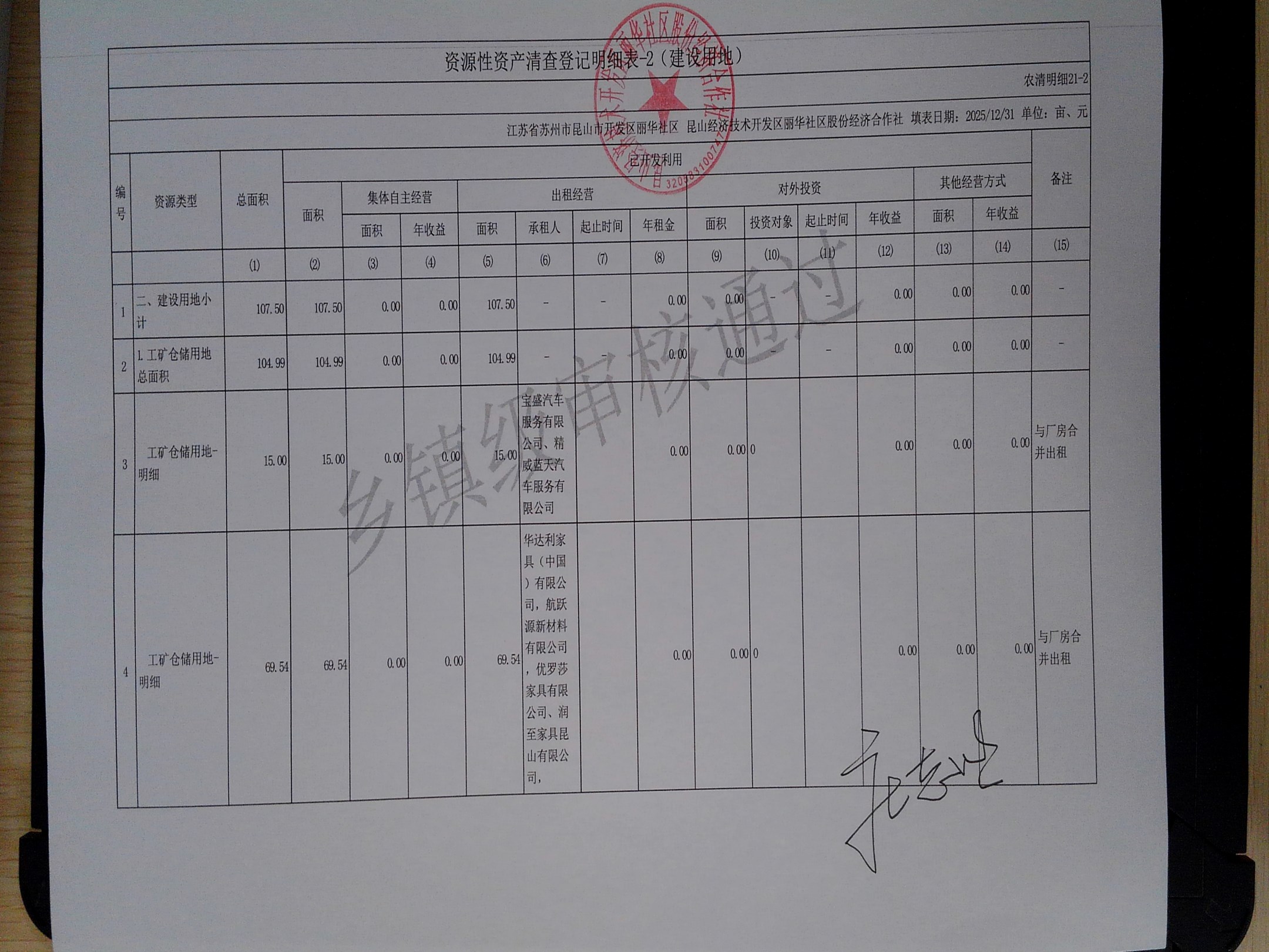 2025年度丽华社区股份经济合作社清产核资报告