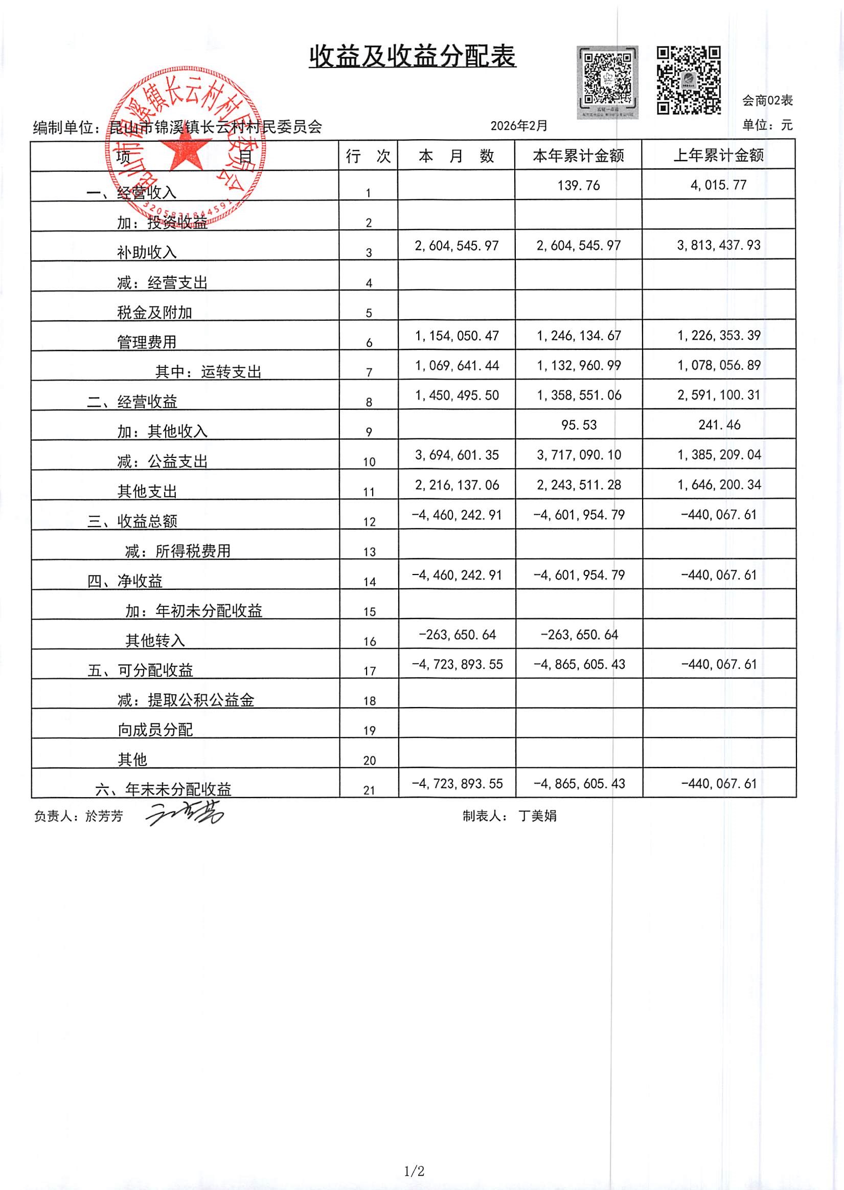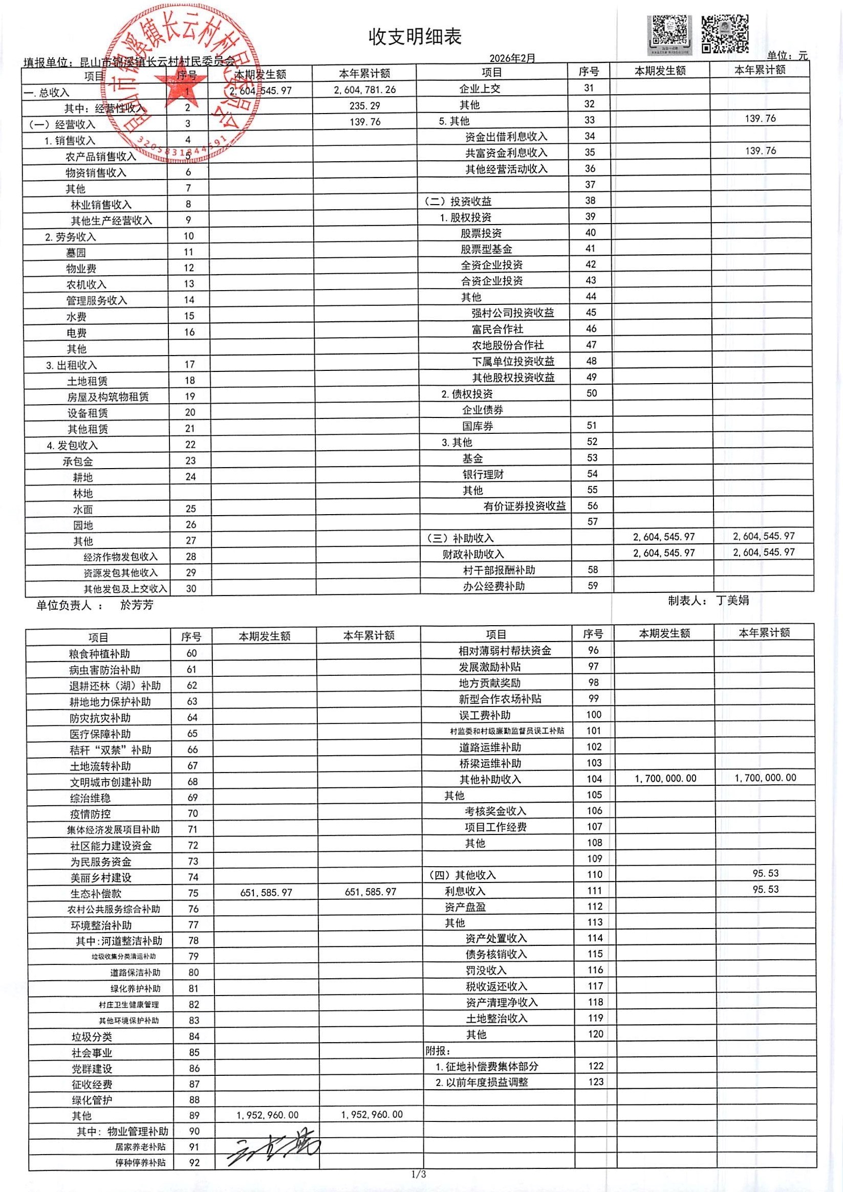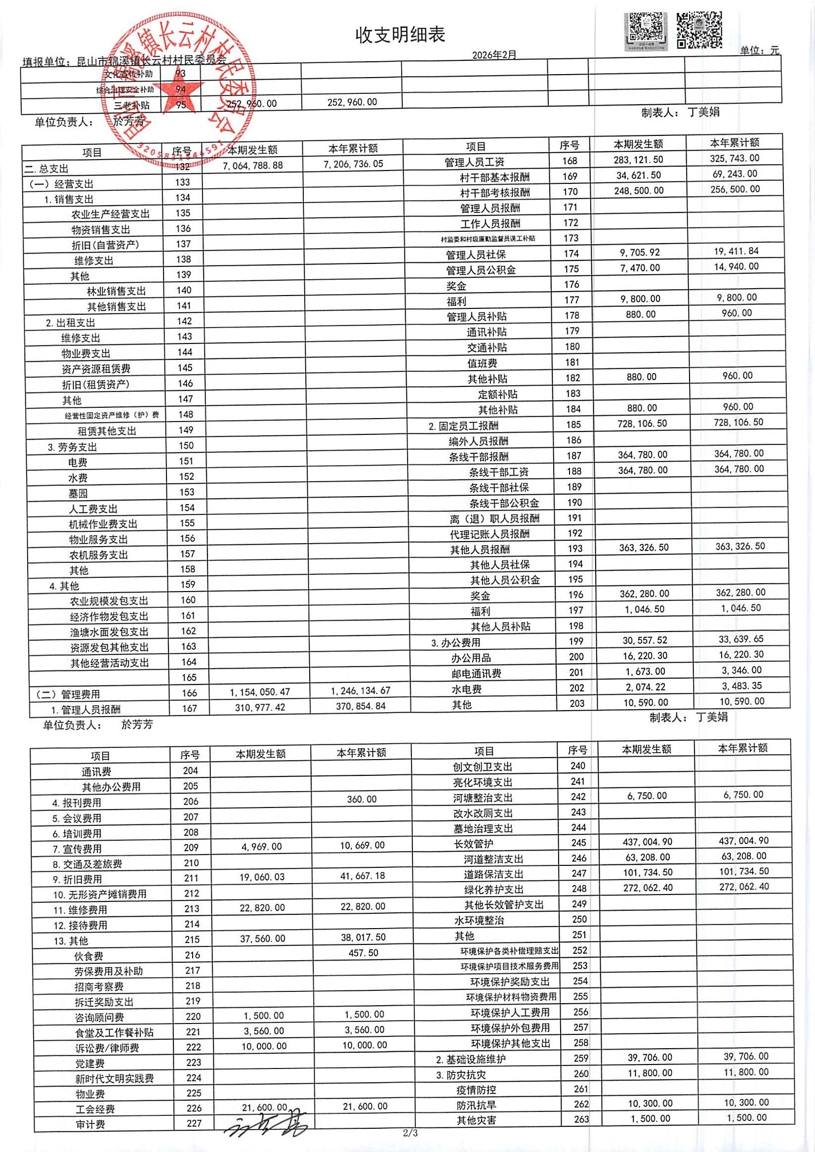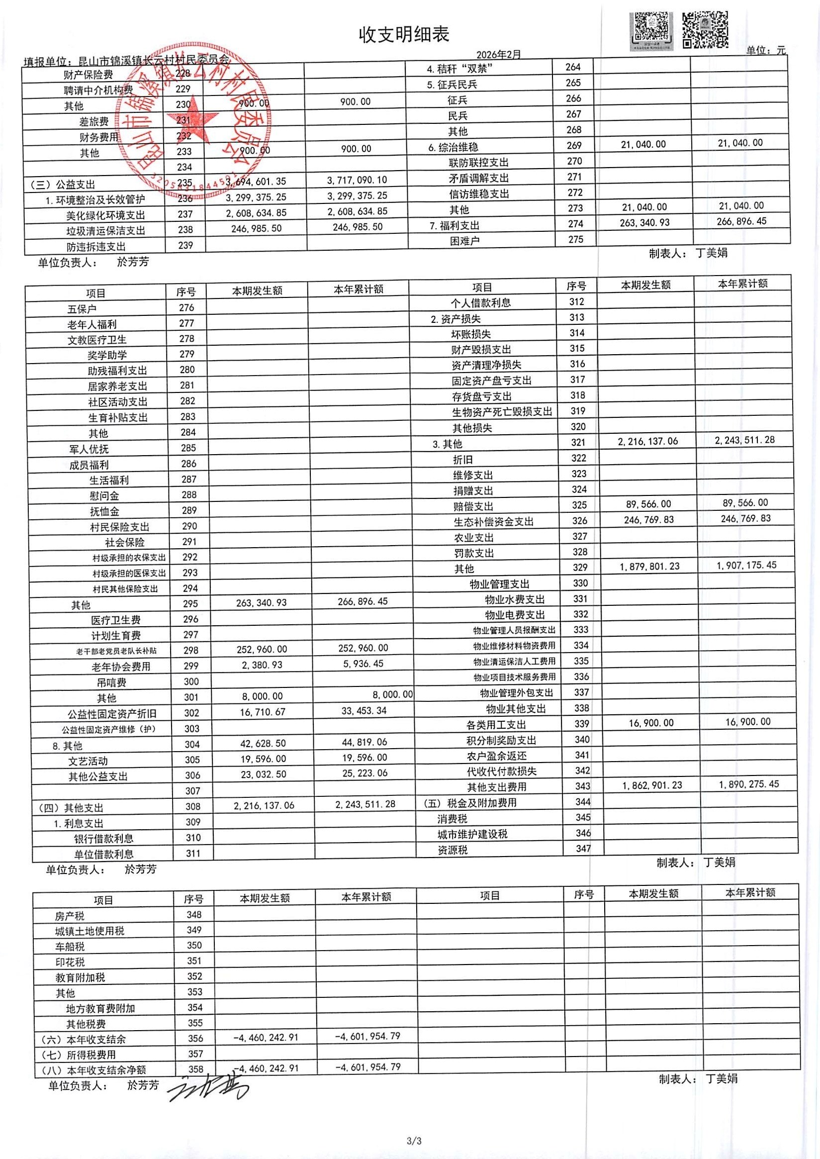 2026年第一季度财务公开定期公开(村委会)(2月份)
