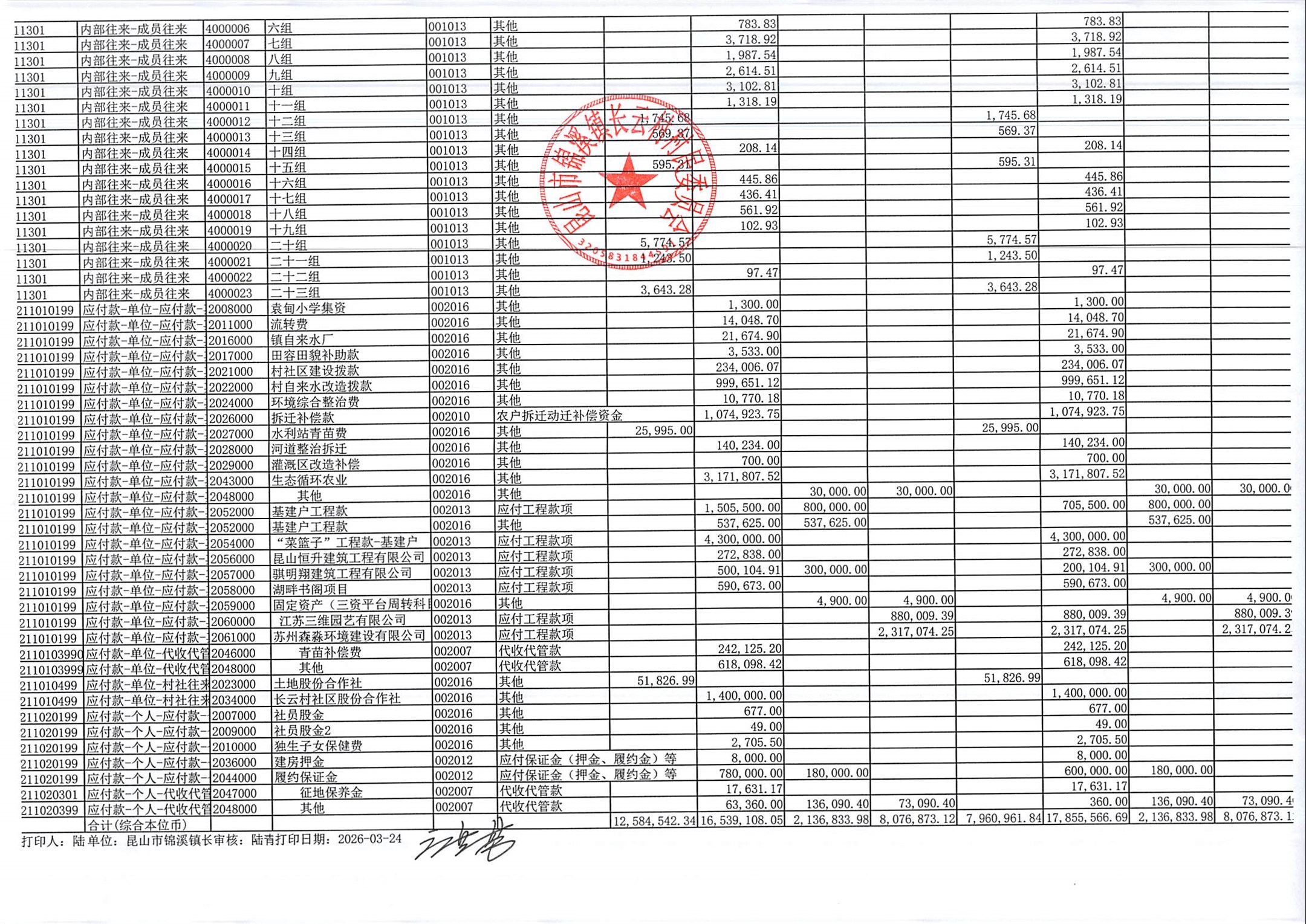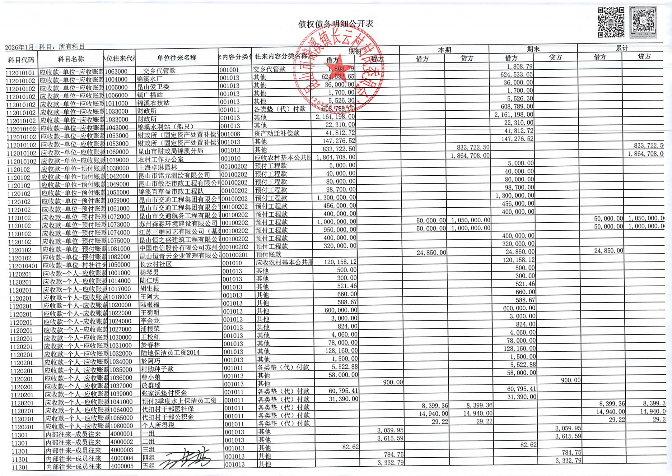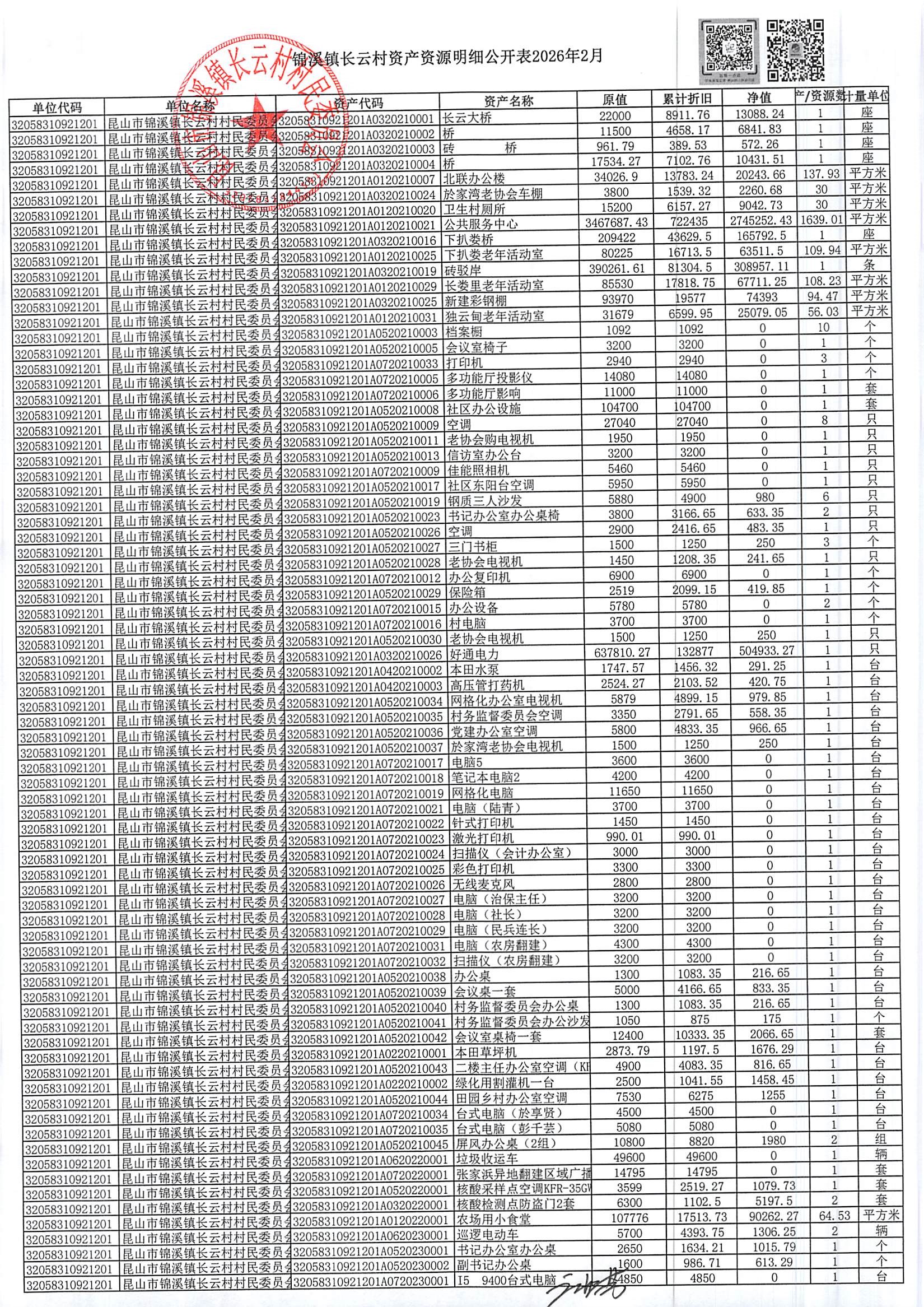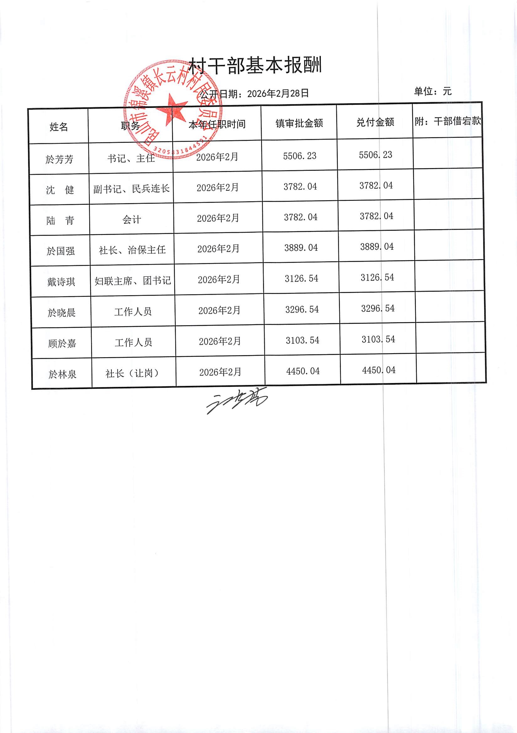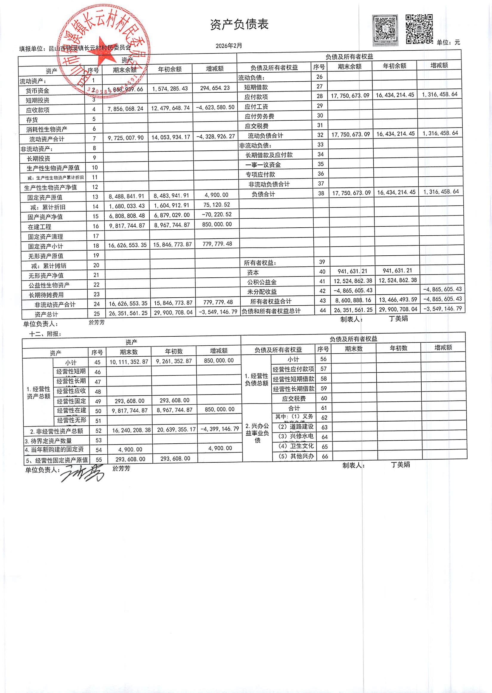 2026年第一季度财务公开定期公开(村委会)(2月份)