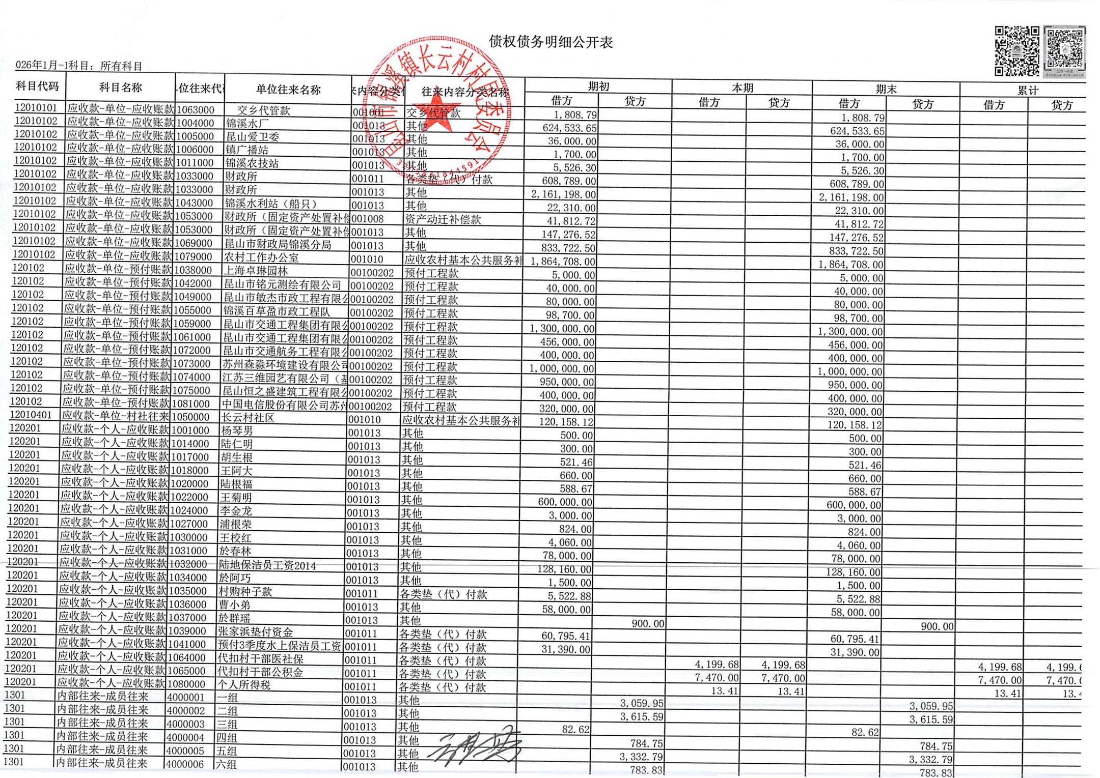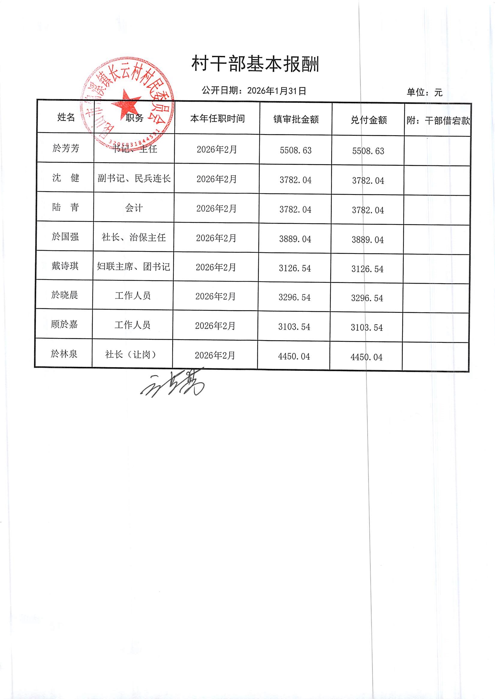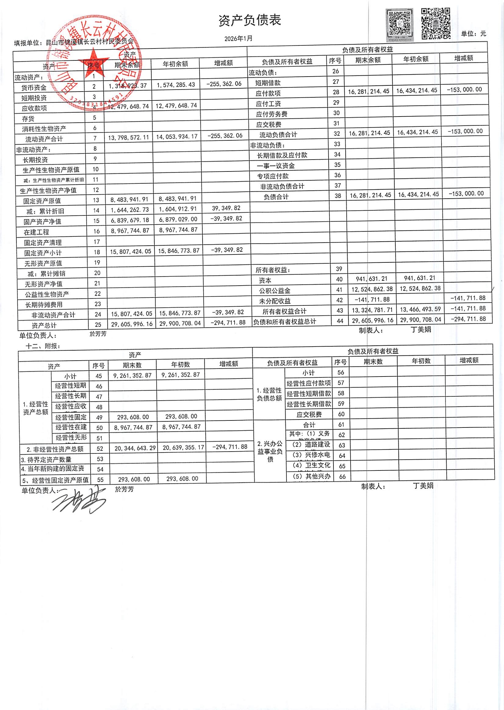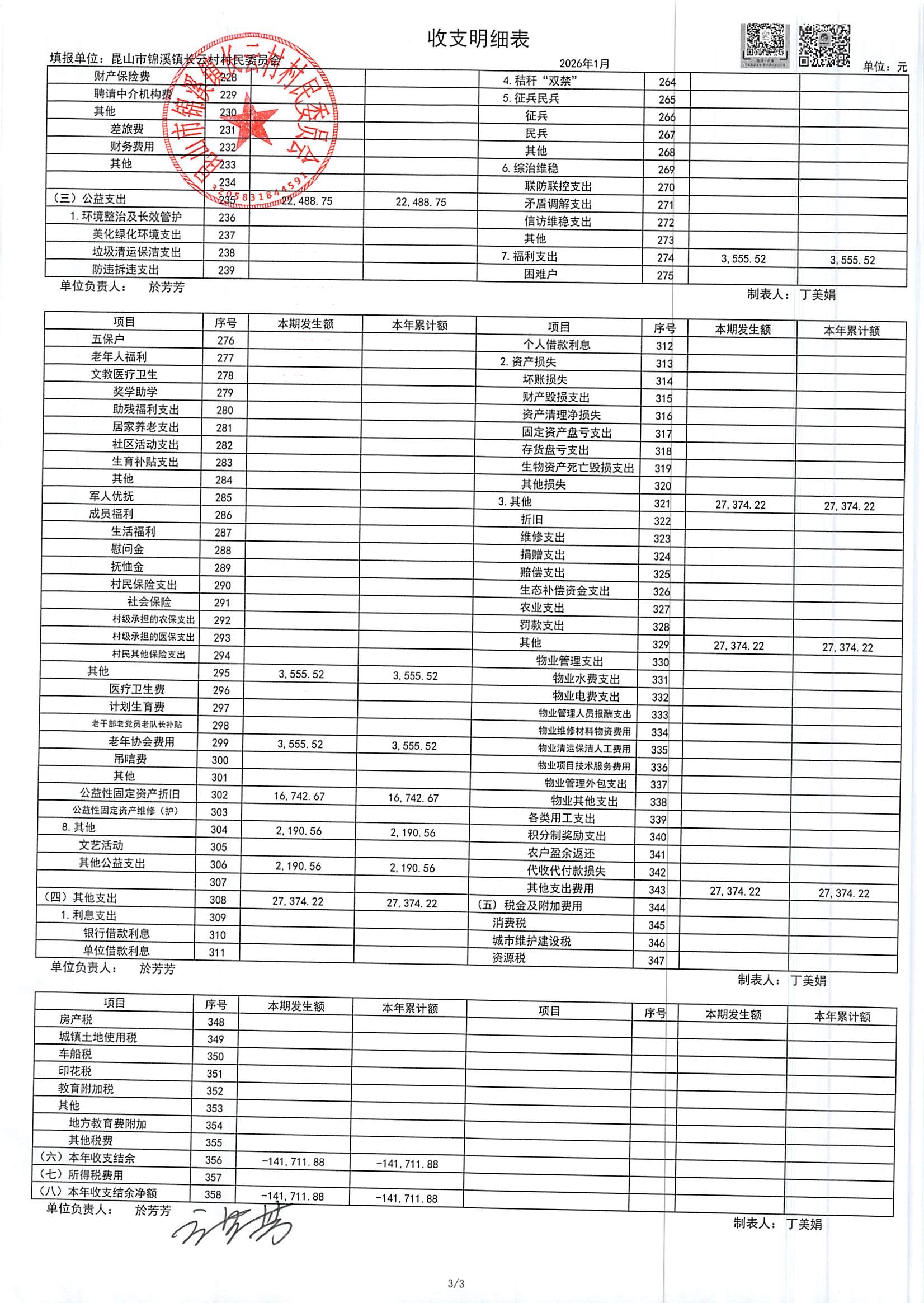 2026年第一季度财务公开定期公开(村委会)(1月份)