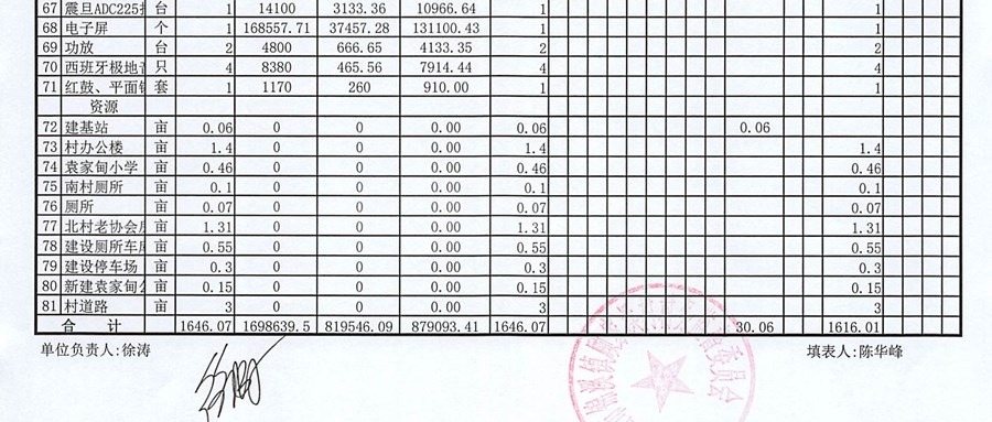 村盖章事项名录