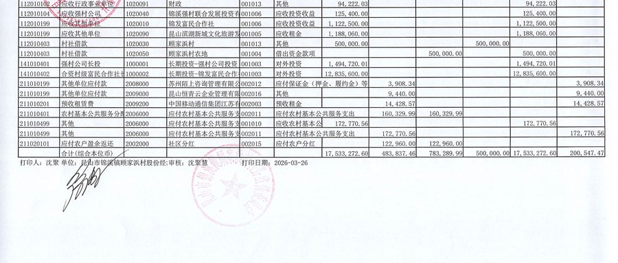 2026年2月份股份经济合作社财务公开