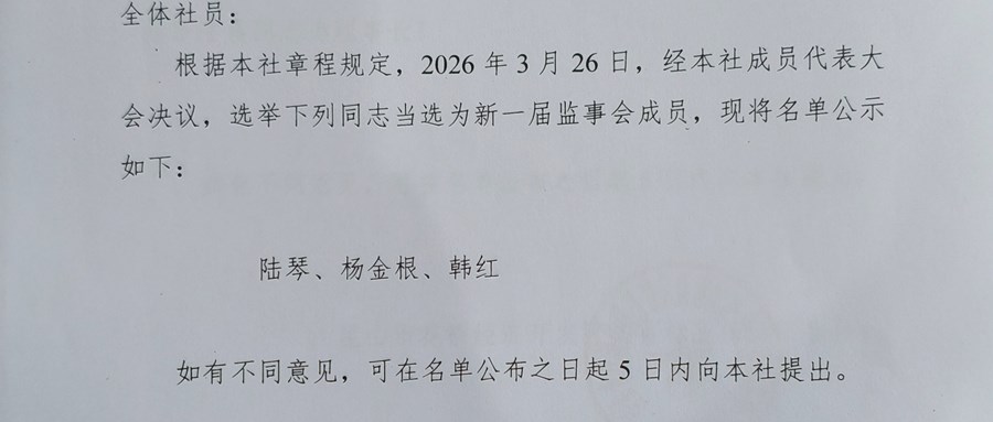 2026年3月26日集善村股份经济合作社理事会、监事会成员正式名单公示