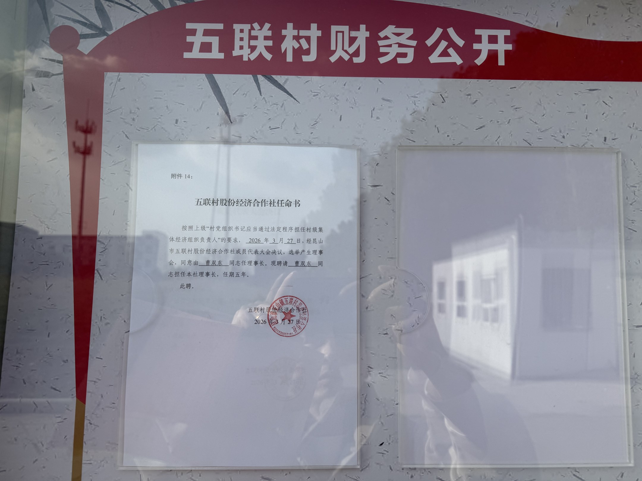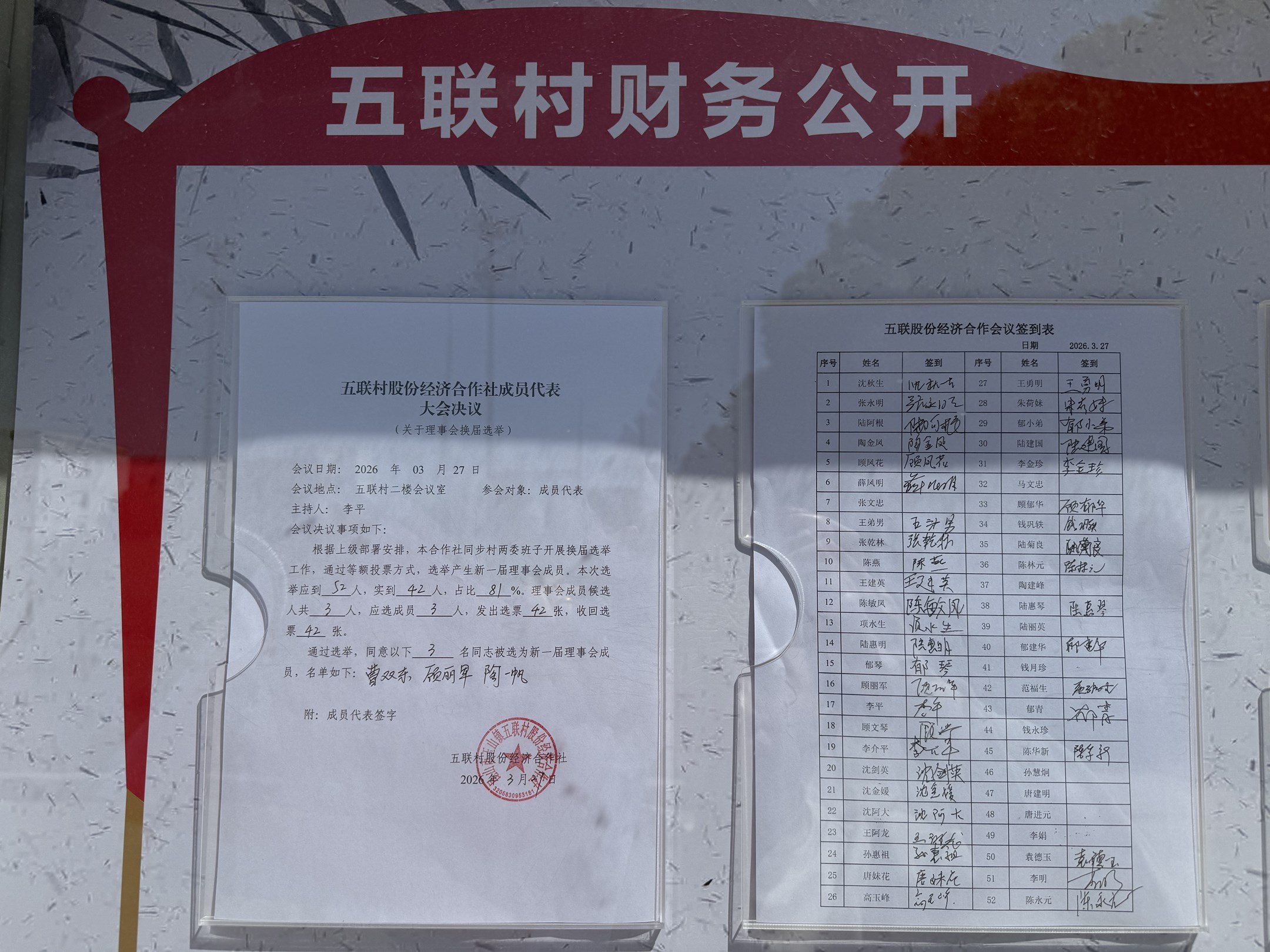 五联村股份经济合作社理事会、监事会决议公示图