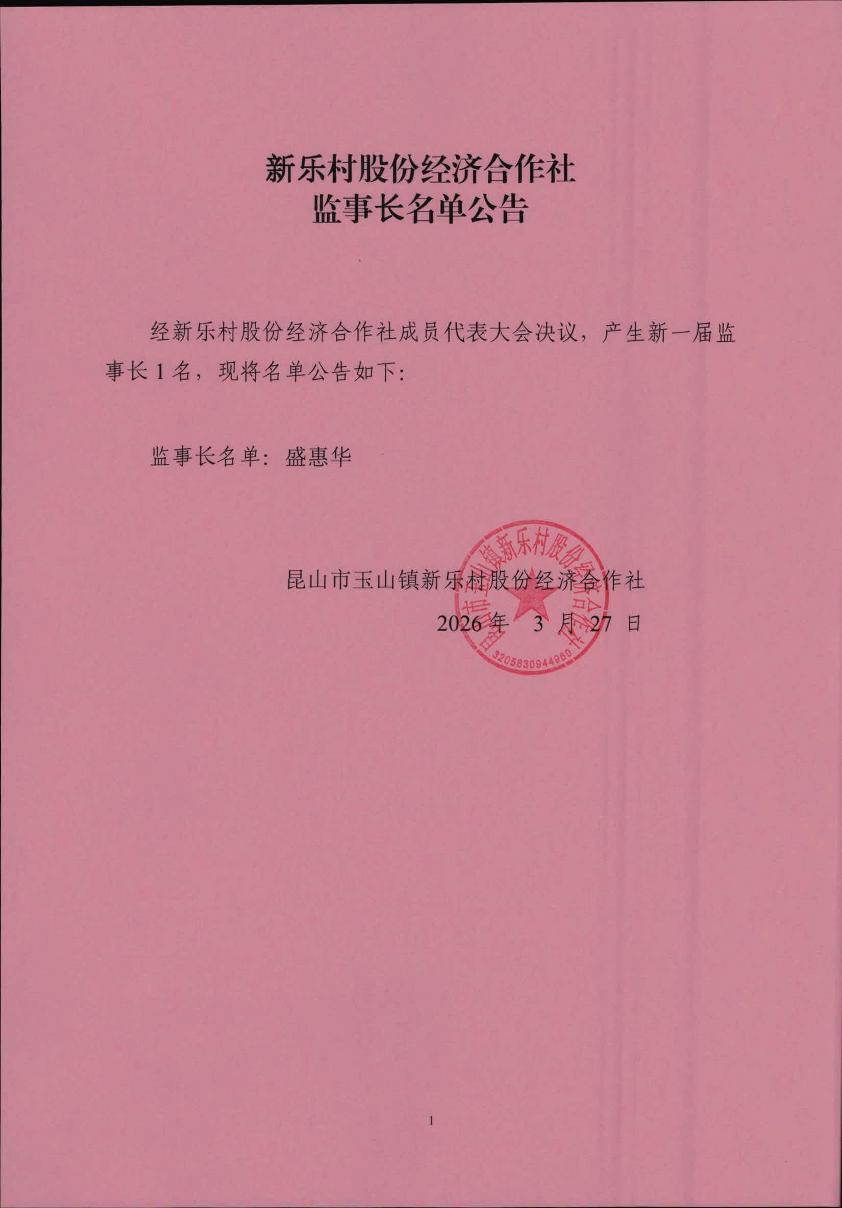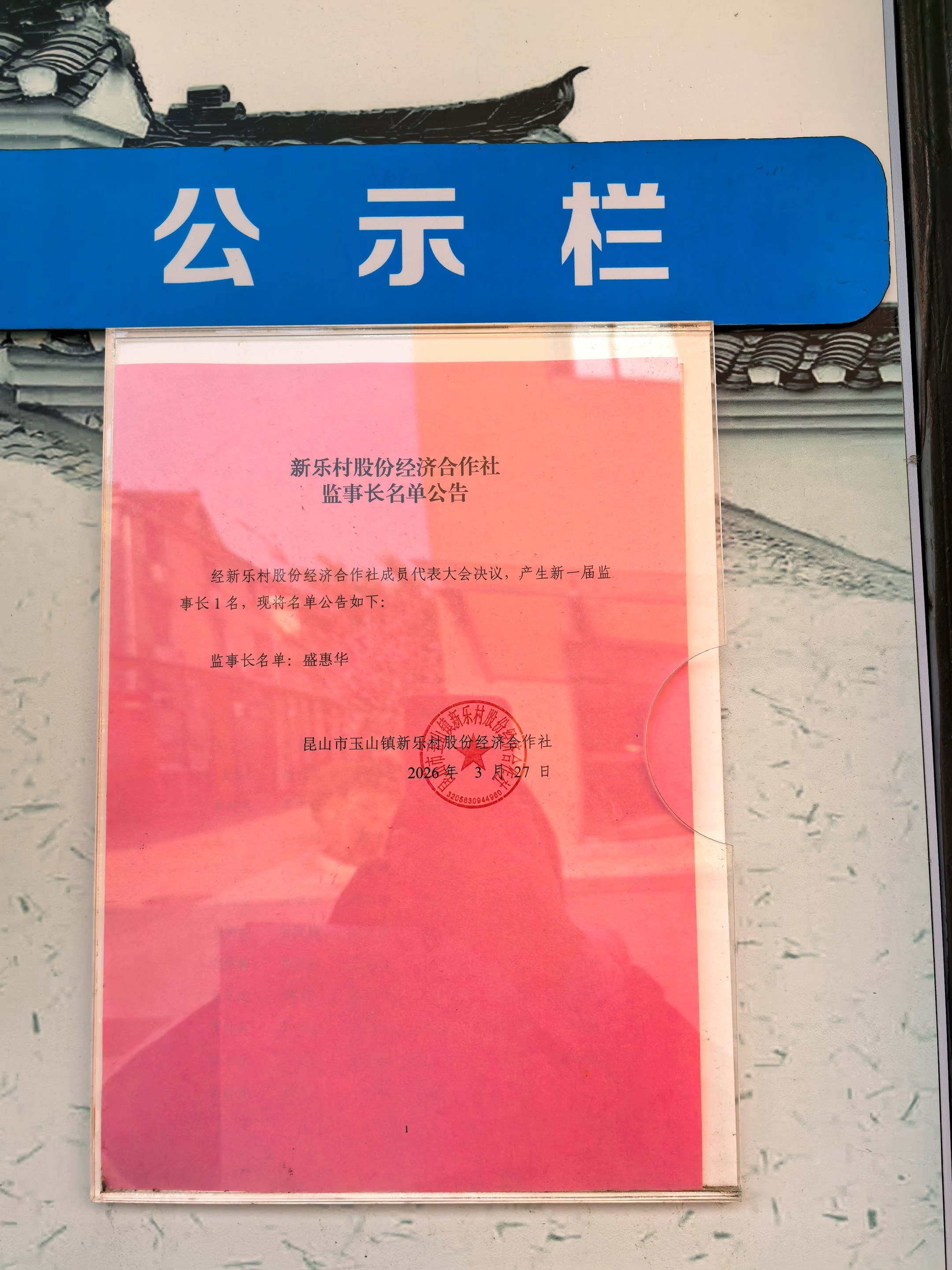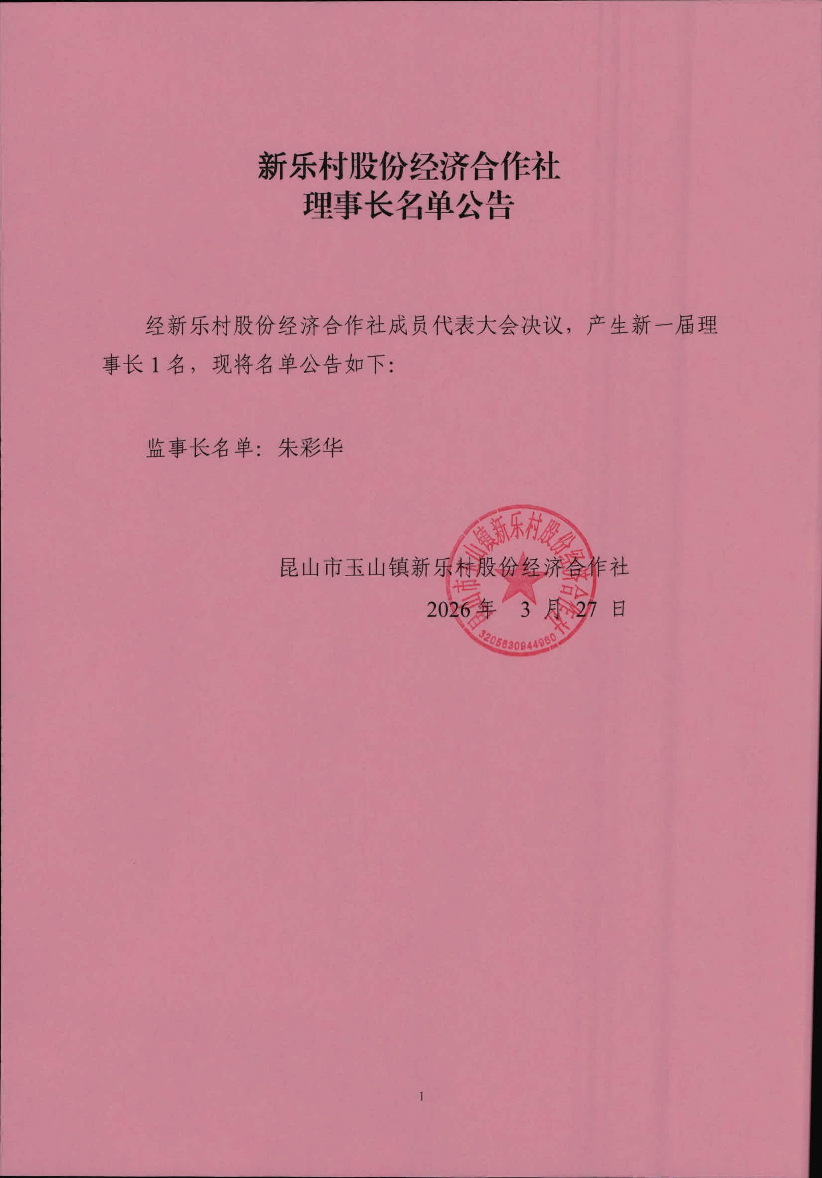 新乐村股份经济合作社监事长、理事长公告及公示图片