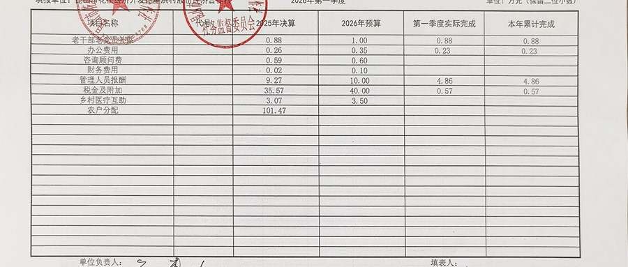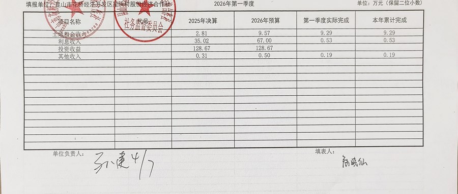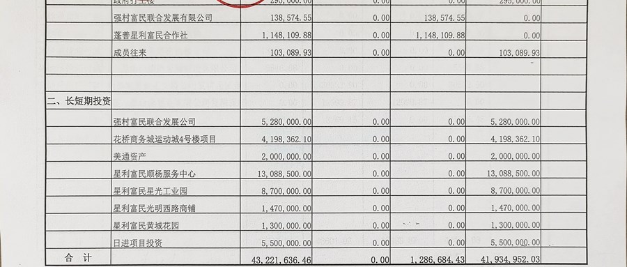 2026年星浜村股份经济合作社3月份定期财务公示