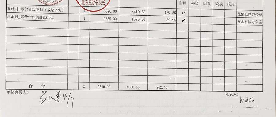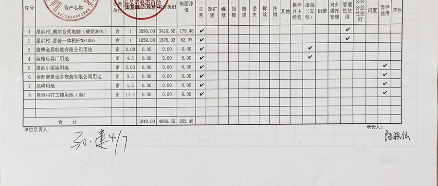 村盖章事项名录