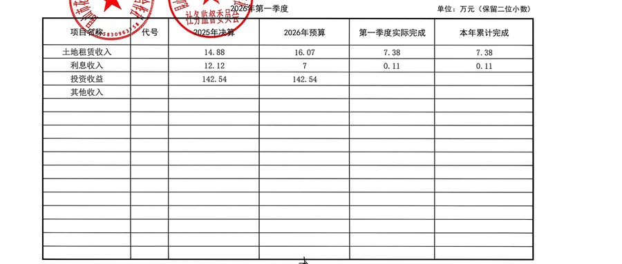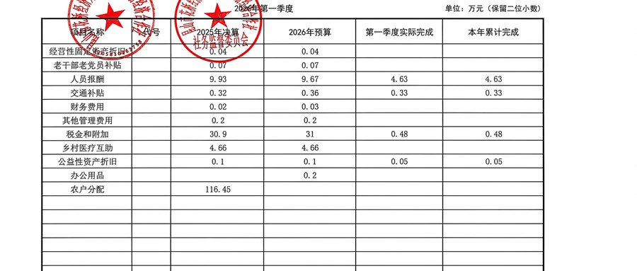 2026年顺扬村股份经济合作社3月财务公示