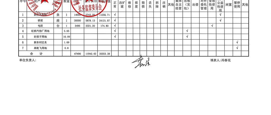 村盖章事项名录