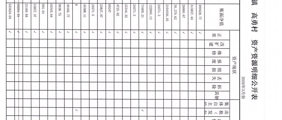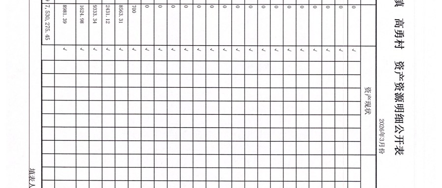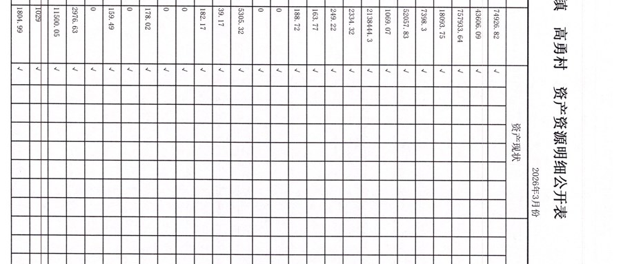 高勇村委会2026年3月份财务公开