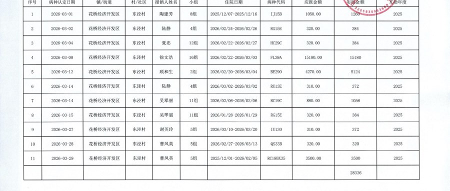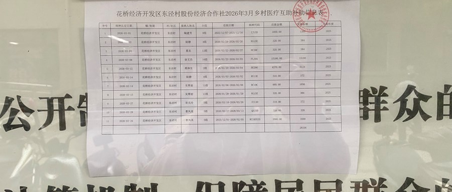 2026年3月东泾村股份经济合作社乡村医疗互助补助信息表公示